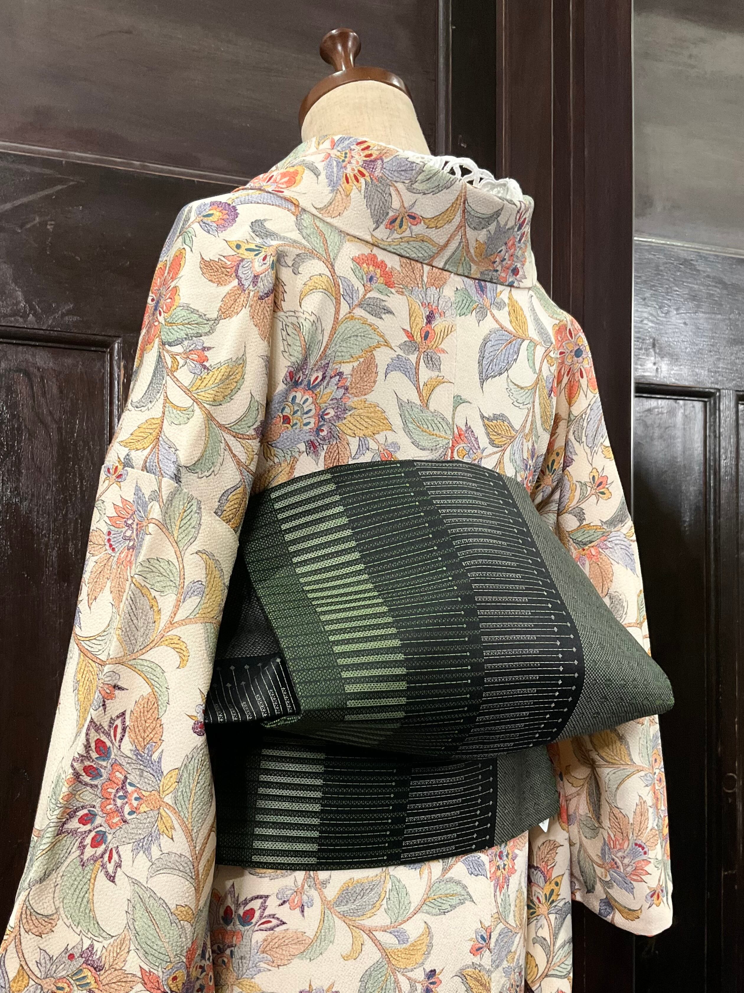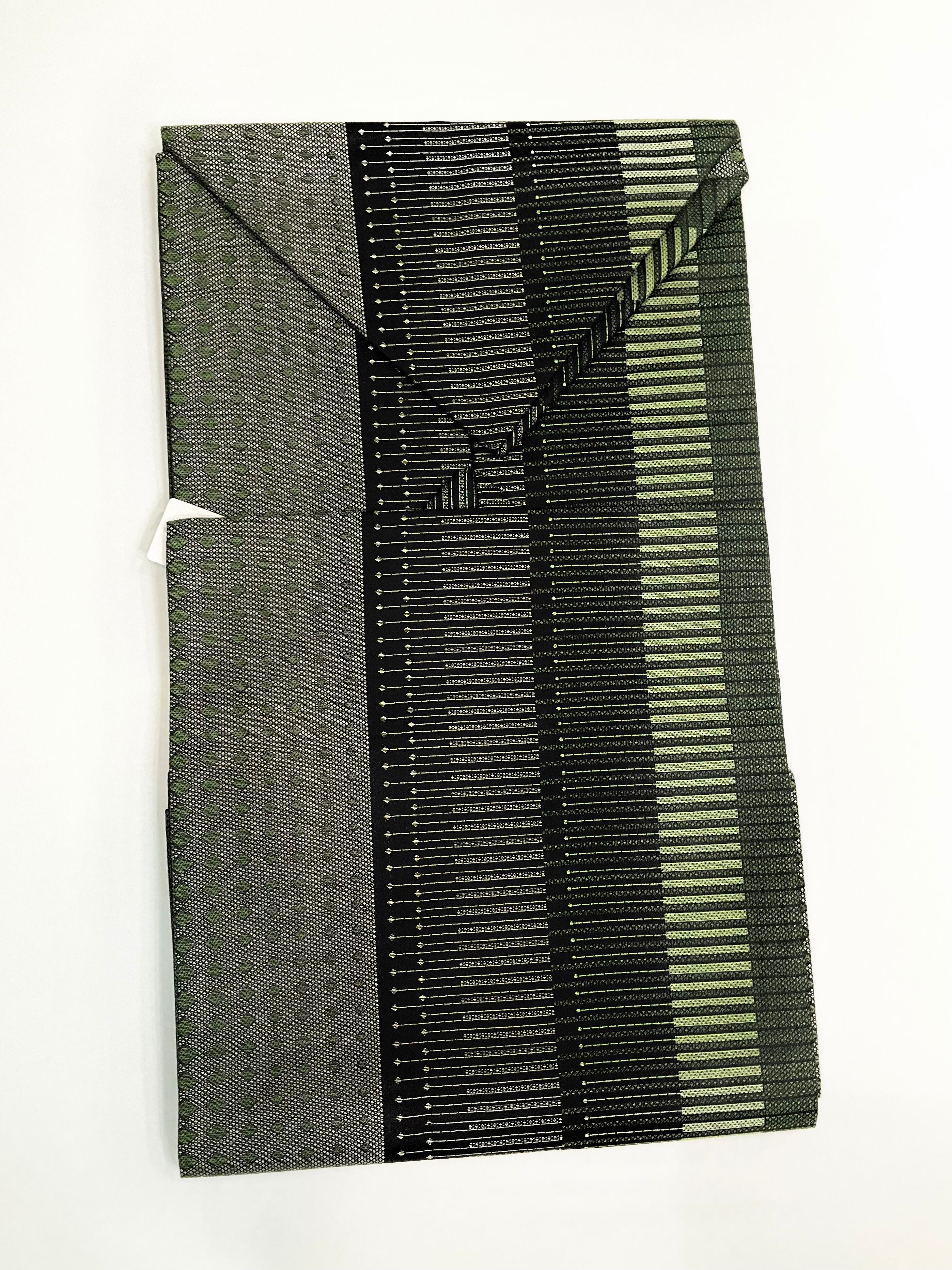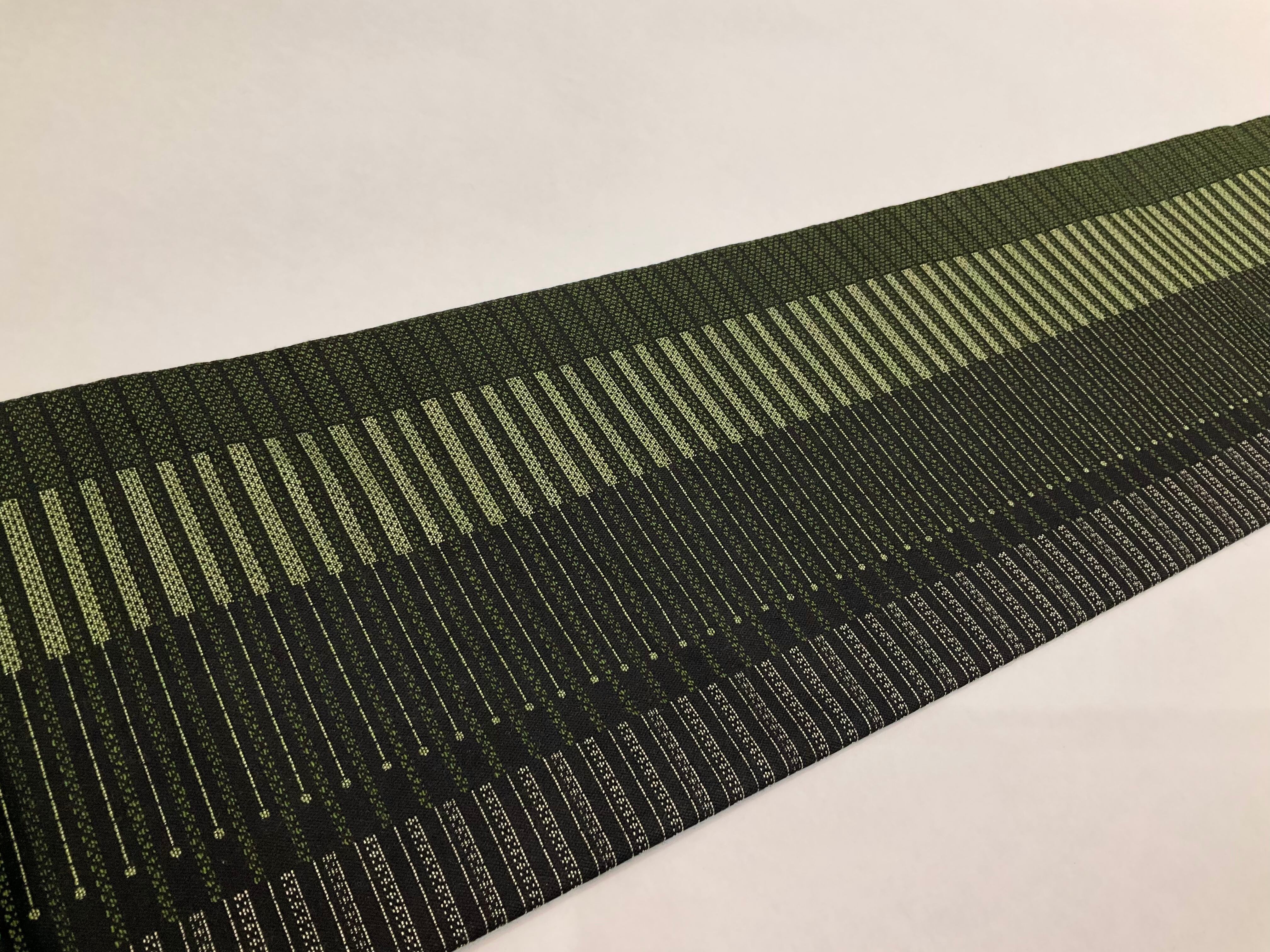 グリーン系×ブラック系のモダンなデザインが素敵な名古屋帯です♪