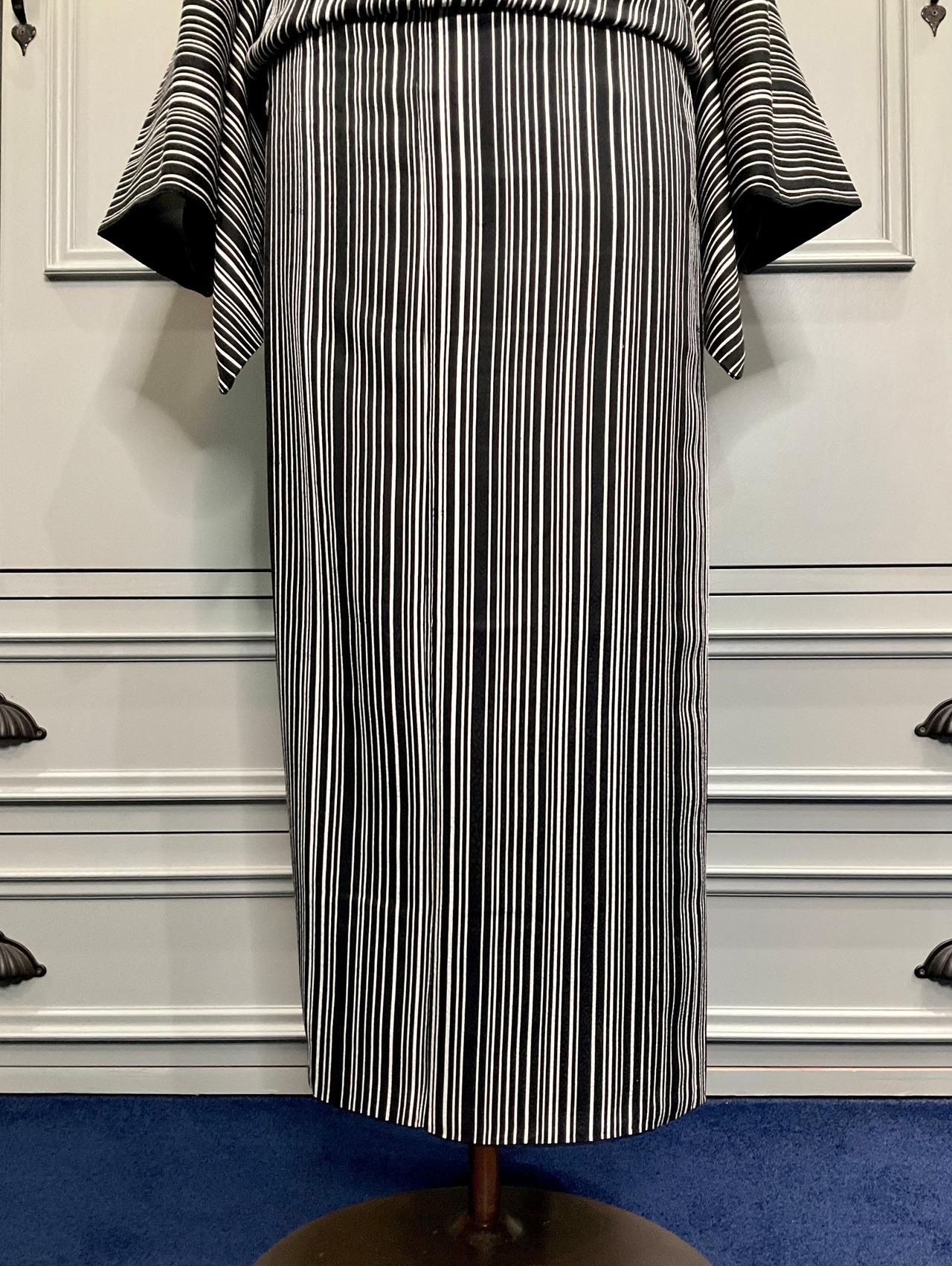 モノトーン・カスケード・ストライプ*リサイクル小紋キモノ A001