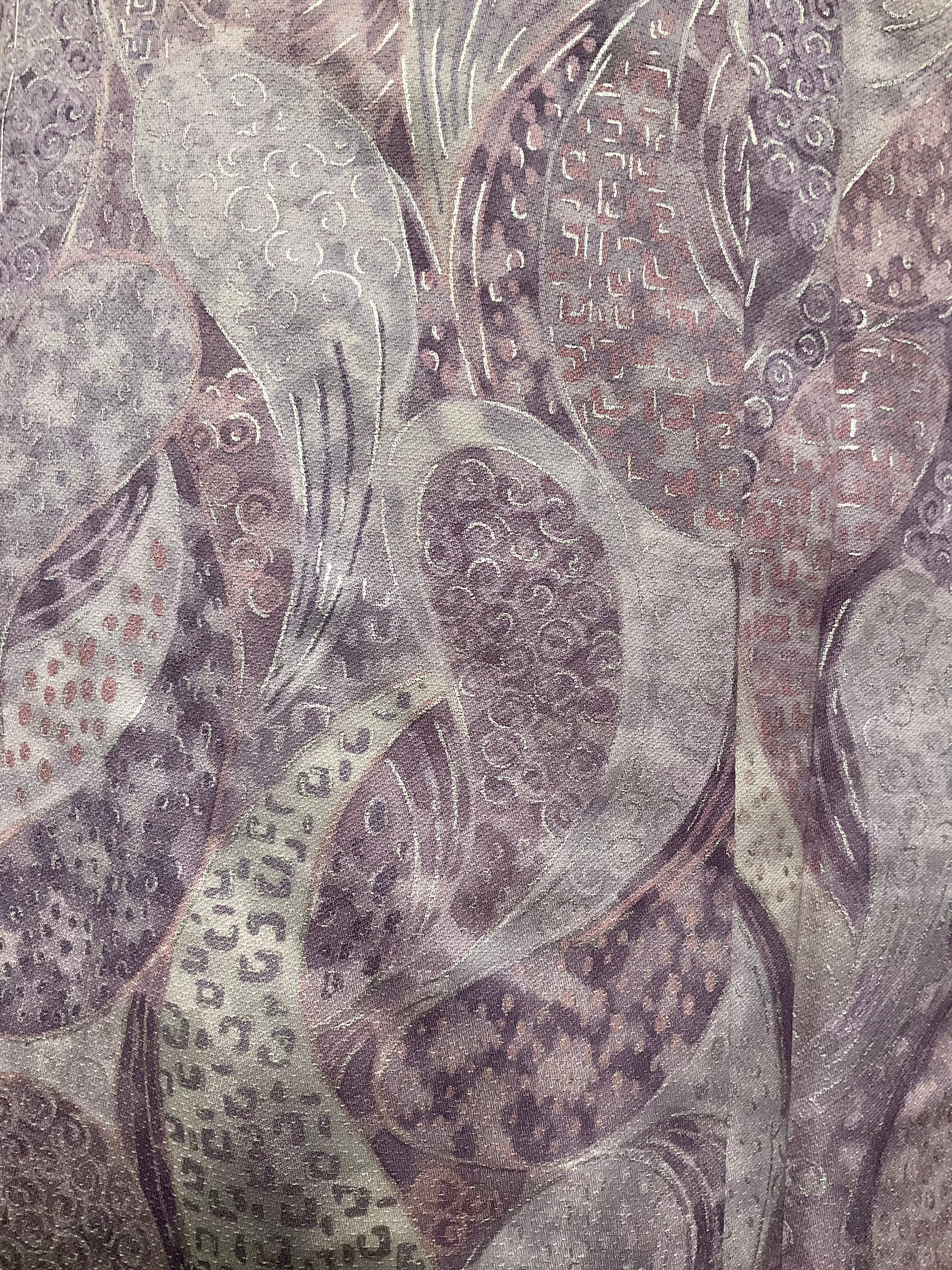 パープル系でまとめられたお色に、雫型のデザインがモダンな、小紋着物です♪