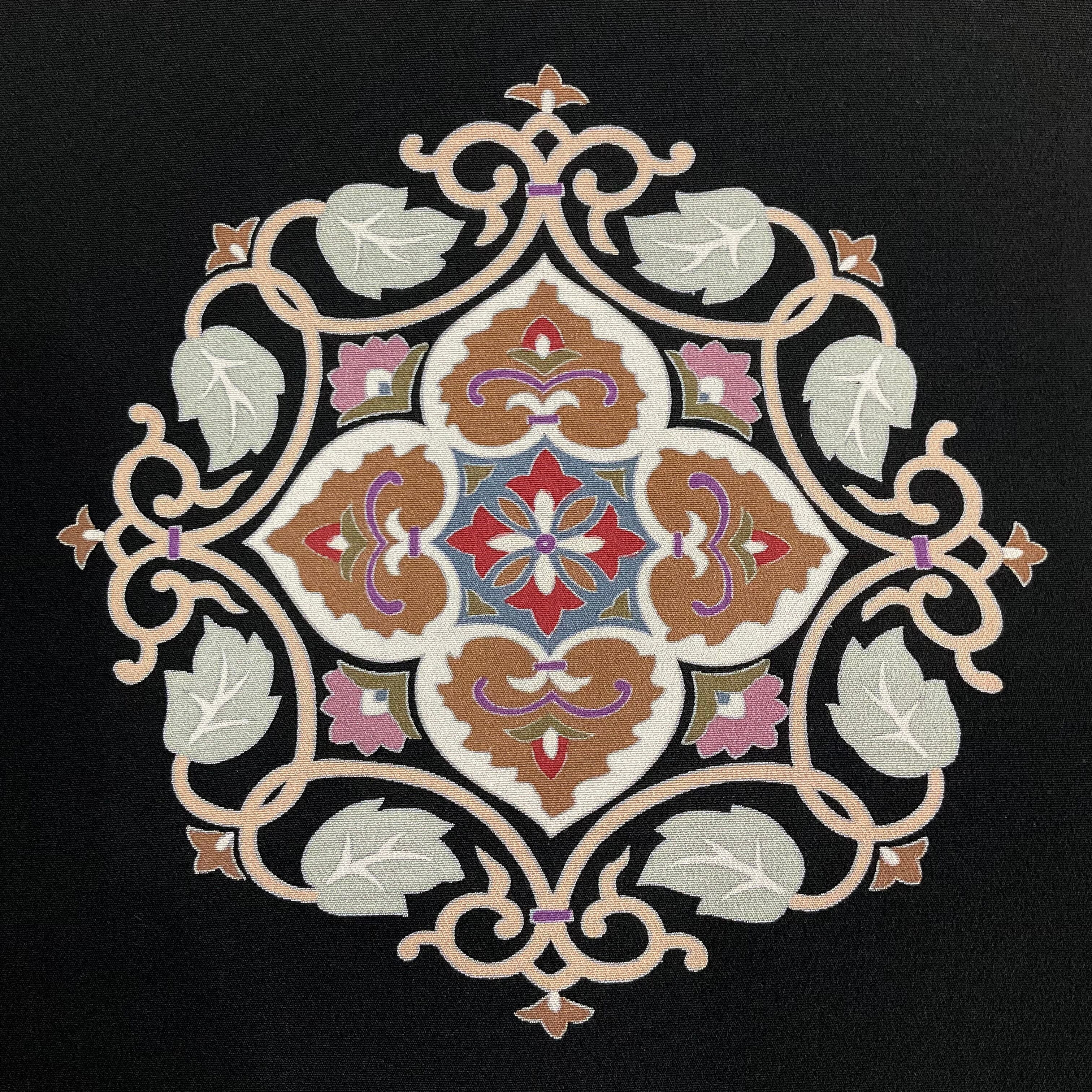 ブラックの地色に、オーナメント柄のデザインがオシャレな名古屋帯です♪