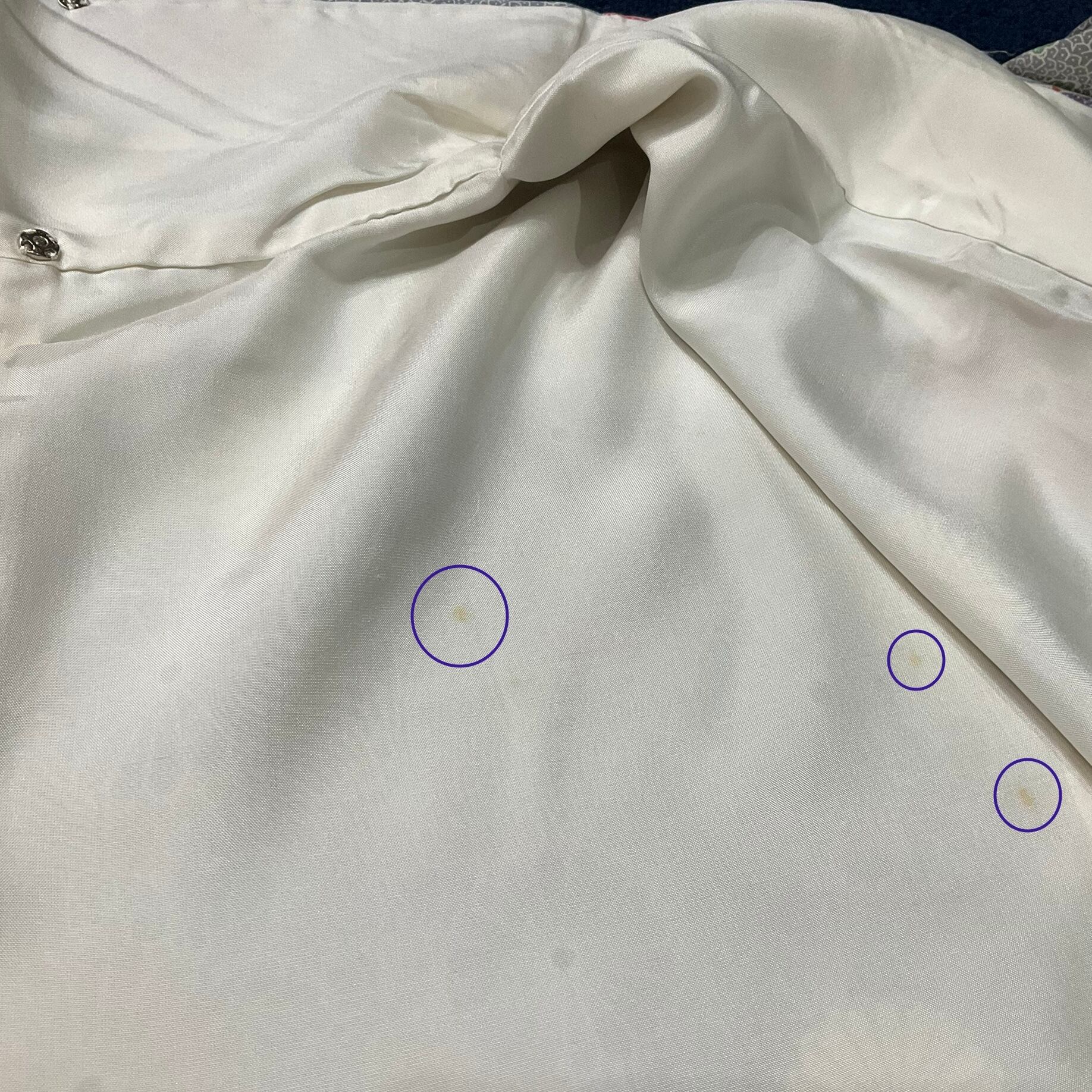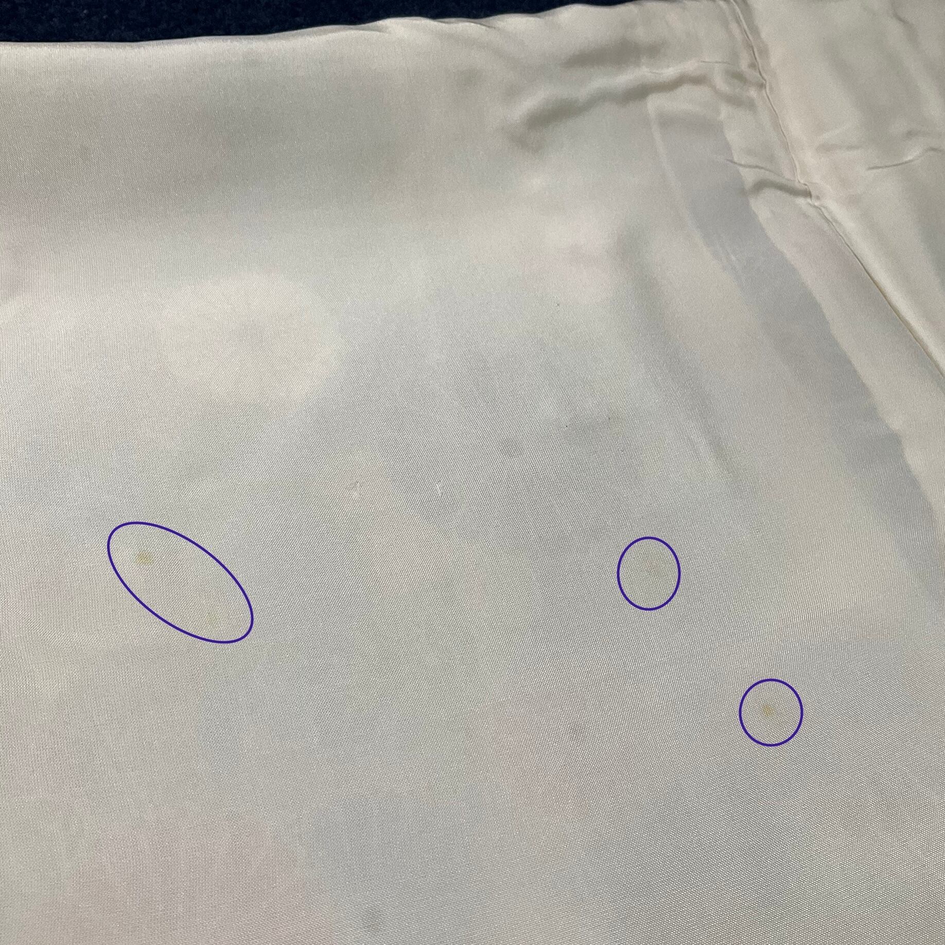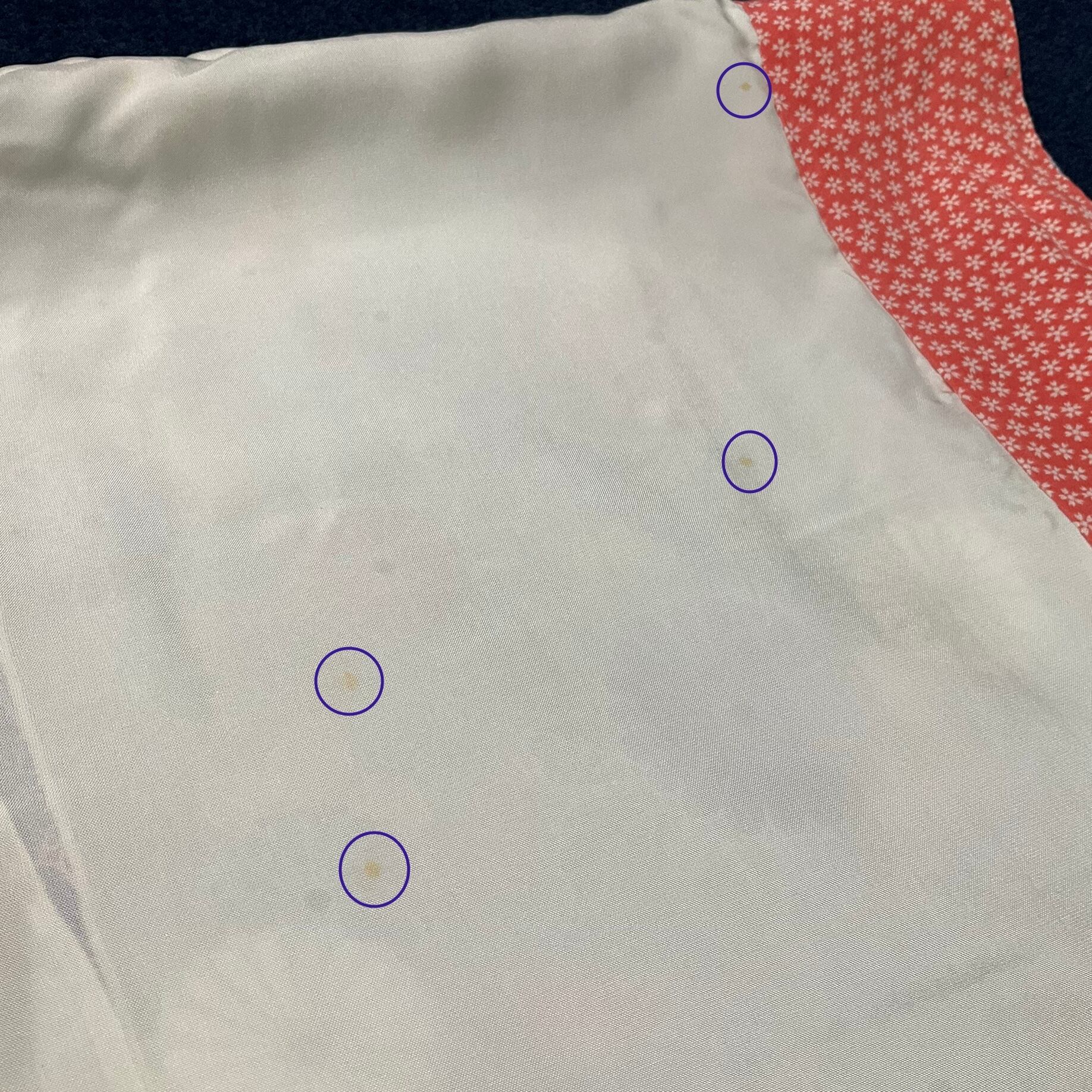 胴裏(身頃、袖等)に、複数のうっすら変色、点アク有り。(※写真掲載以外にも有り。)