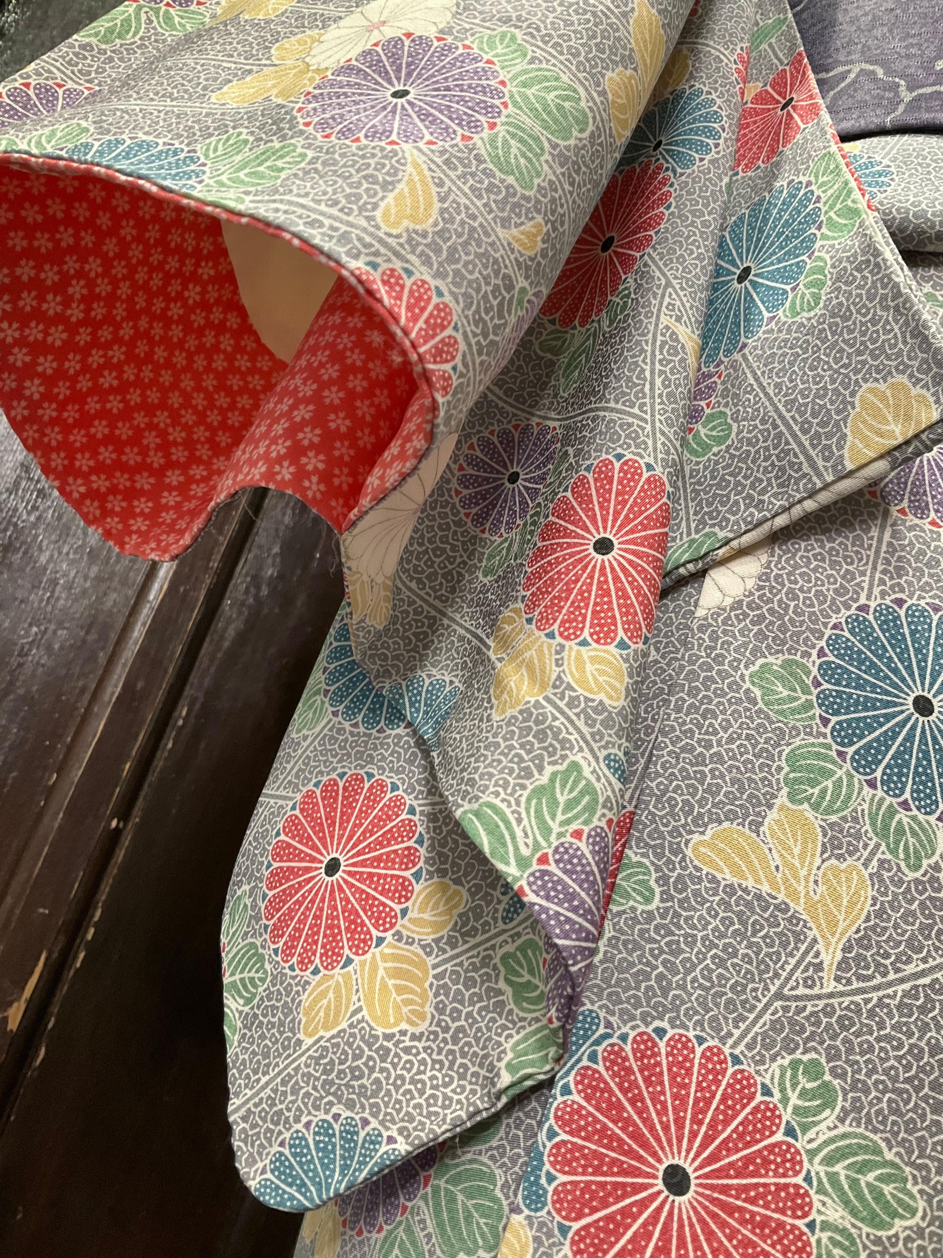 八掛部分には、柄のある生地が使用され、袖口や歩いた時にチラッと見えた時にオシャレです^^