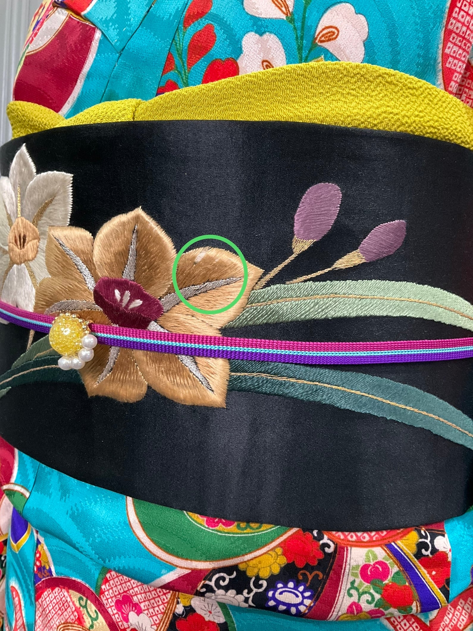 手刺繍ならではのふっくらとした刺繍、絹糸のやわらかな艶の美しさが伝わりますでしょうか?