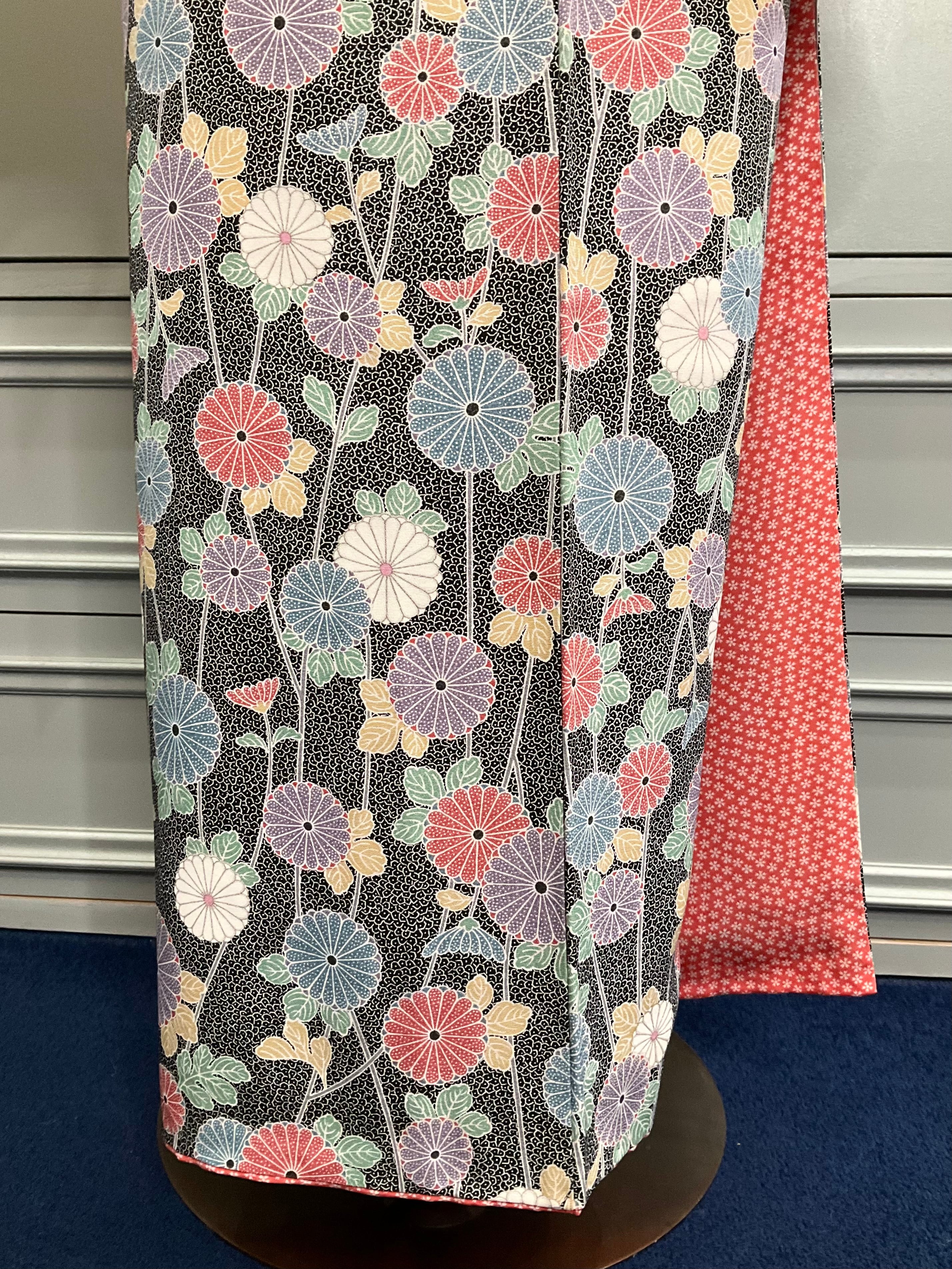 long*菊の花にみとれて Black*リサイクル小紋着物 A075