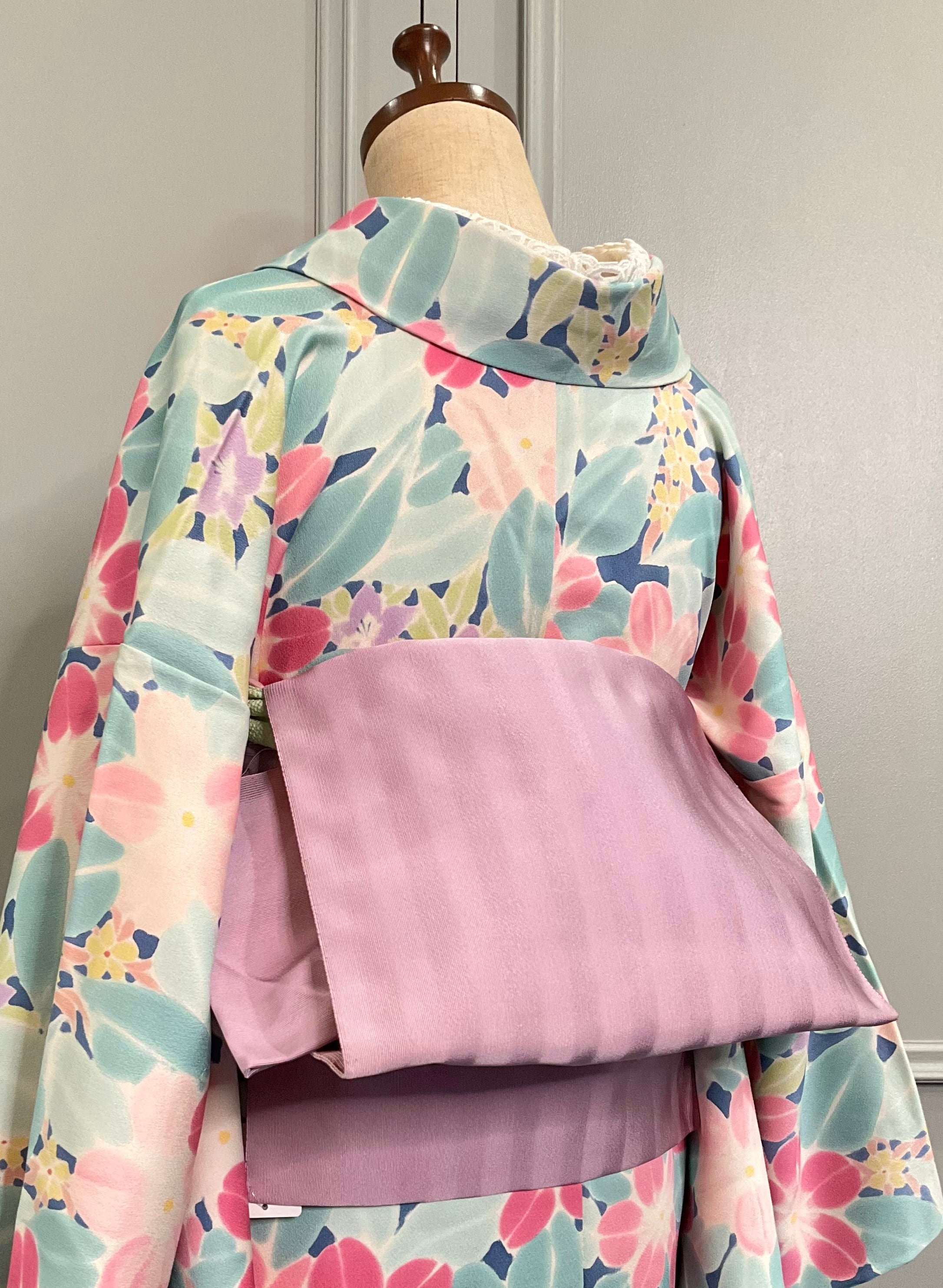 地模様は有りますが、無地と同じようにお使いいただけますので、どんなお着物のデザインとも合わせやすく、1本あるととても重宝するかと思います✨