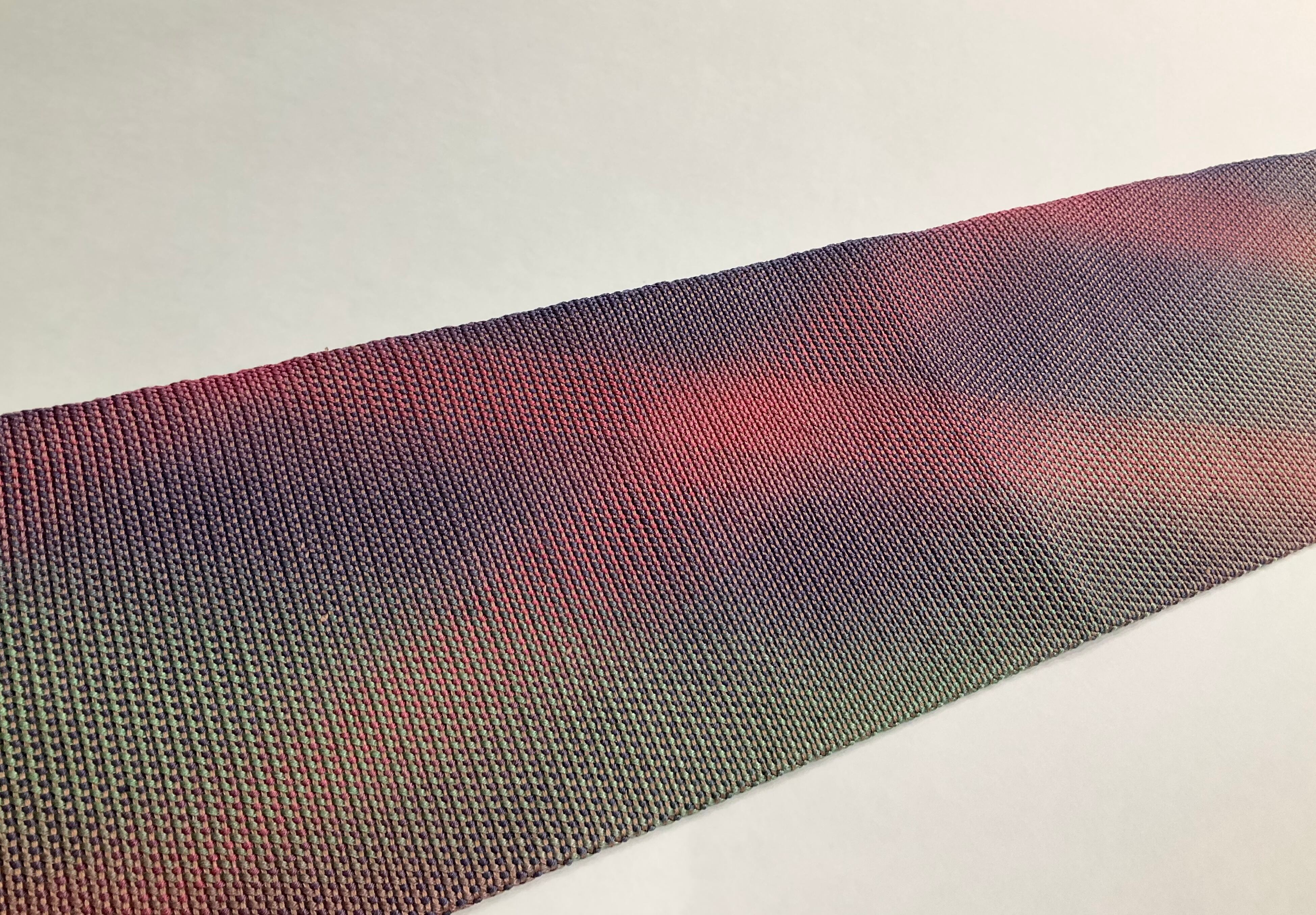 よくよく生地を近くで見てみると、縦糸と横糸それぞれに、計算された、さまざまなお色の糸が配置され、グラデーションが作られていることが分かり、職人技に感嘆します✨