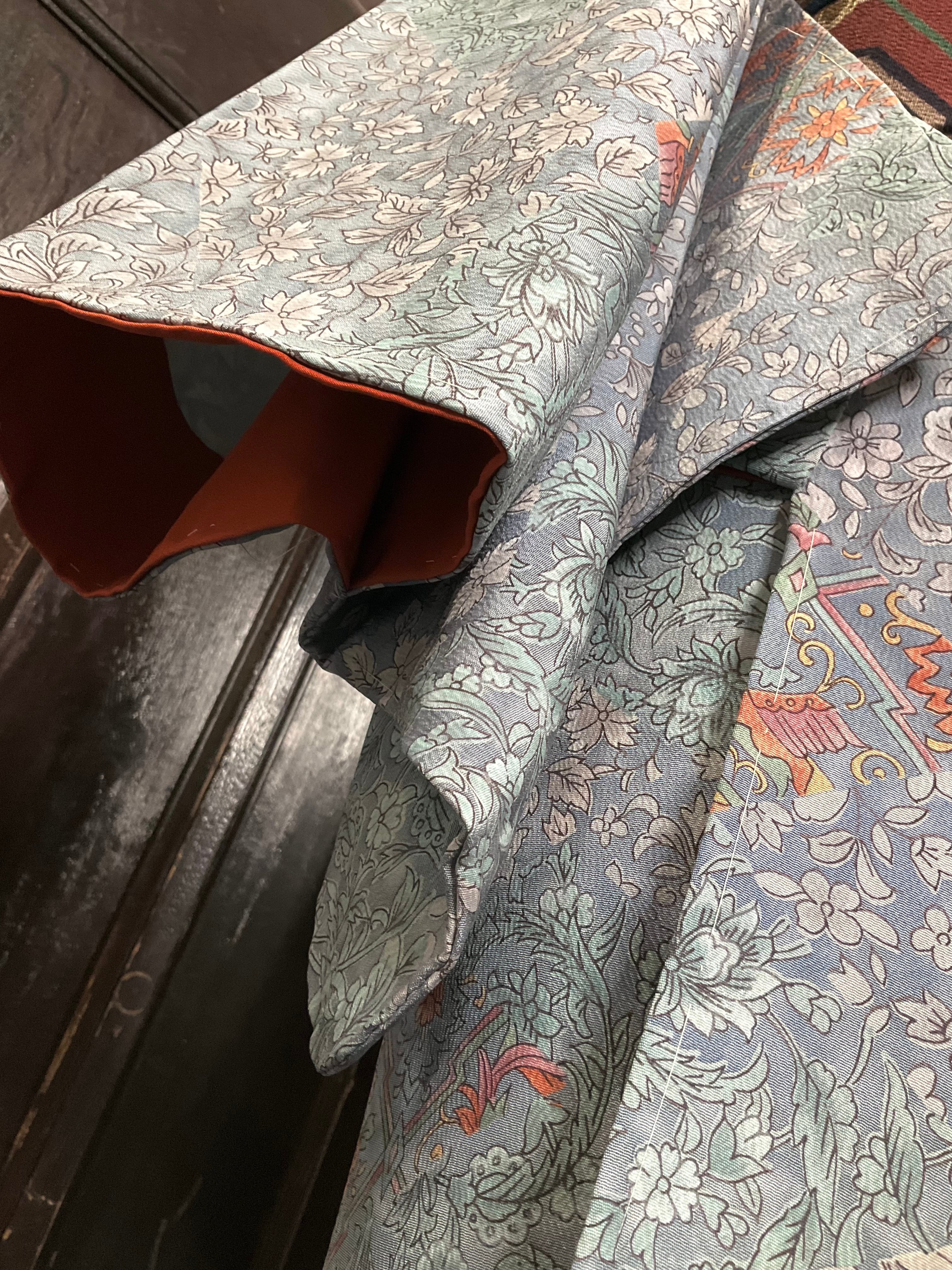 ほんのり濃淡のあるブルーグレー系の地色に、オリエンタルな雰囲気漂う花模様が、細かく描かれていて、上品で素敵ですよね✨