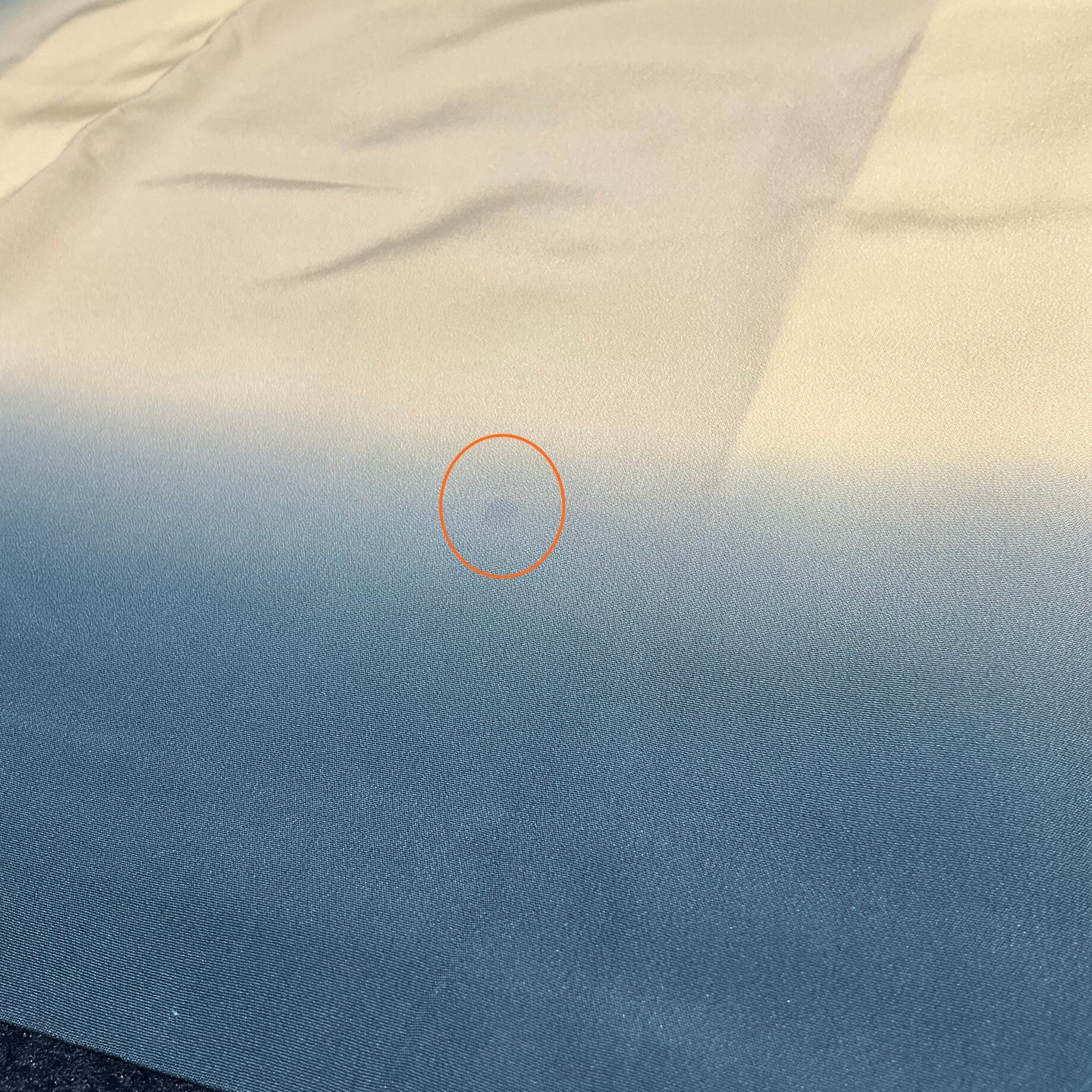 八掛部分(前身頃、右後身頃の裾)に、複数の染めムラ?有り。