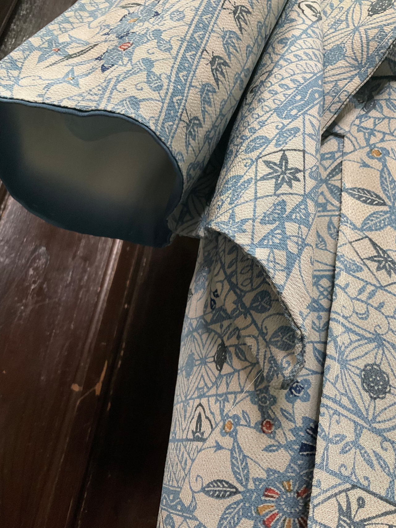 紅型テイストと青の世界*リサイクル小紋着物 A104