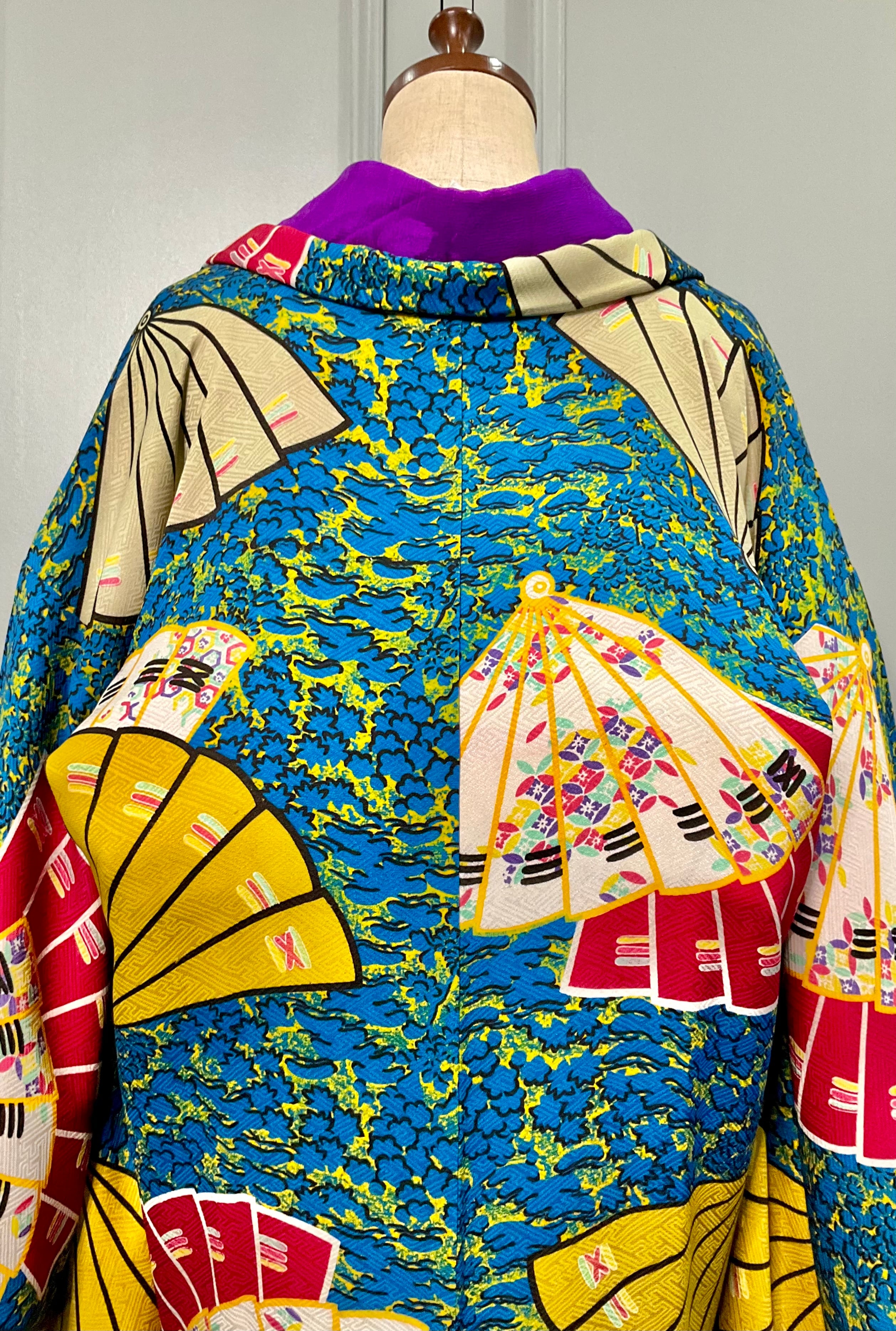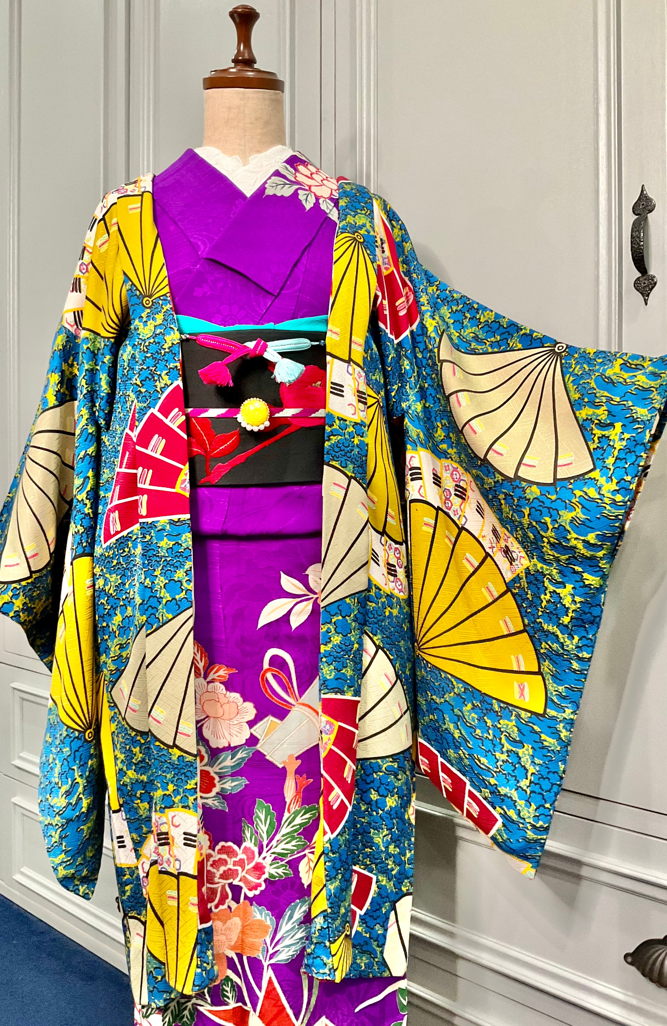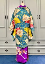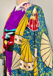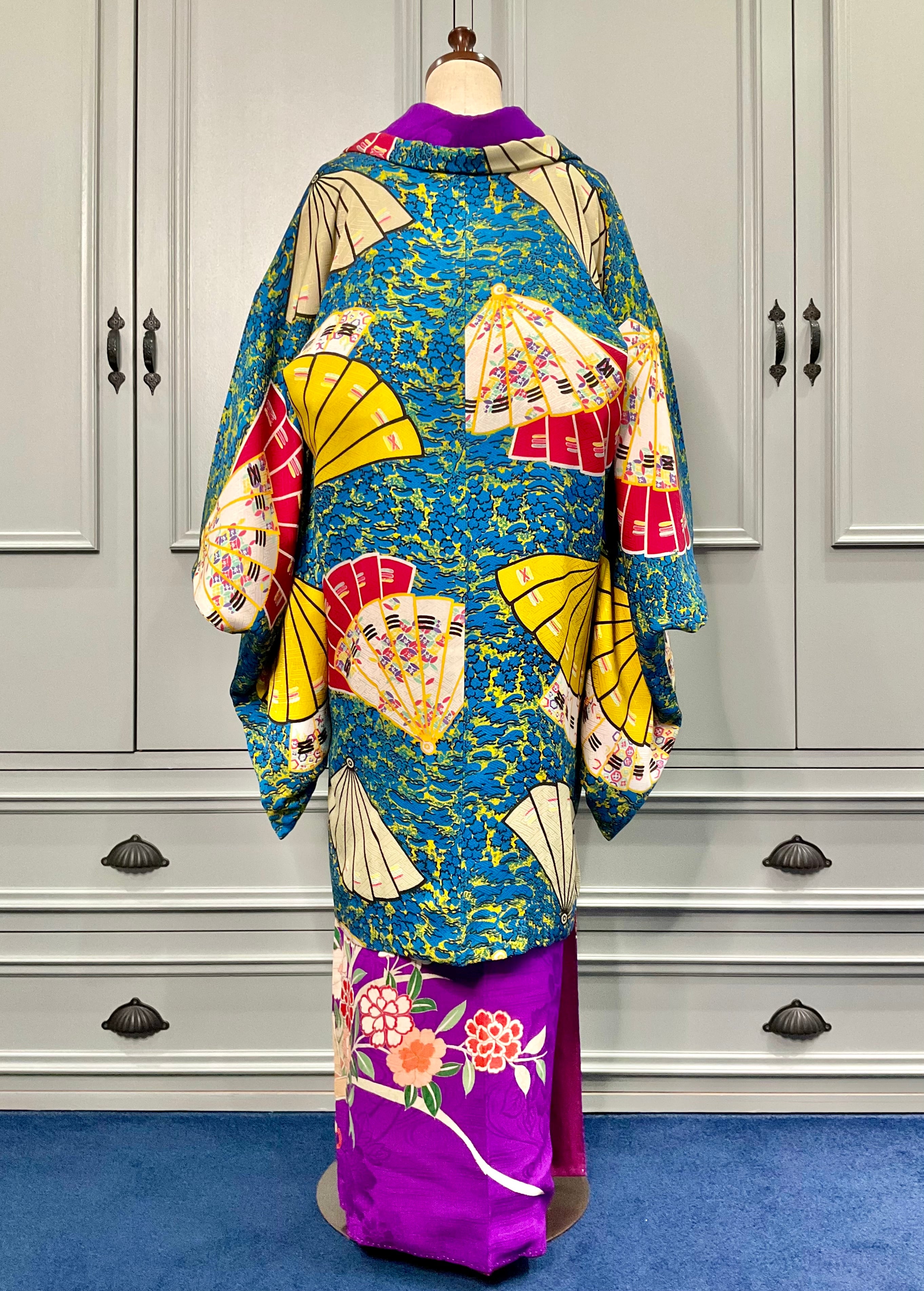 ブルー地に扇が舞うアンティーク長羽織です!