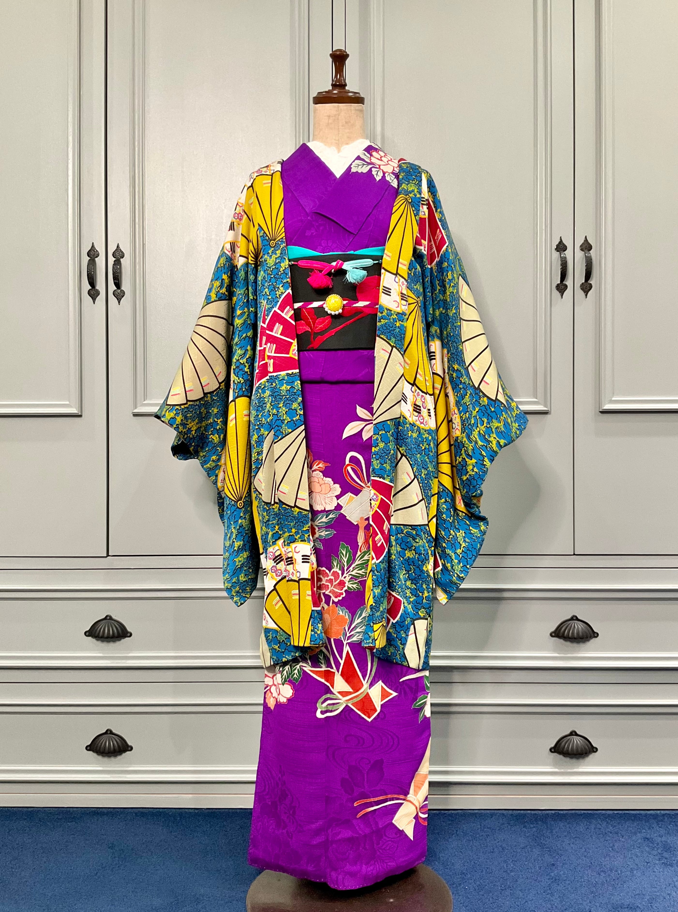 扇の舞*アンティーク長羽織 A106