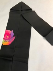 ブラック系の地色にビビットカラーのお花が目を惹く名古屋帯です♪