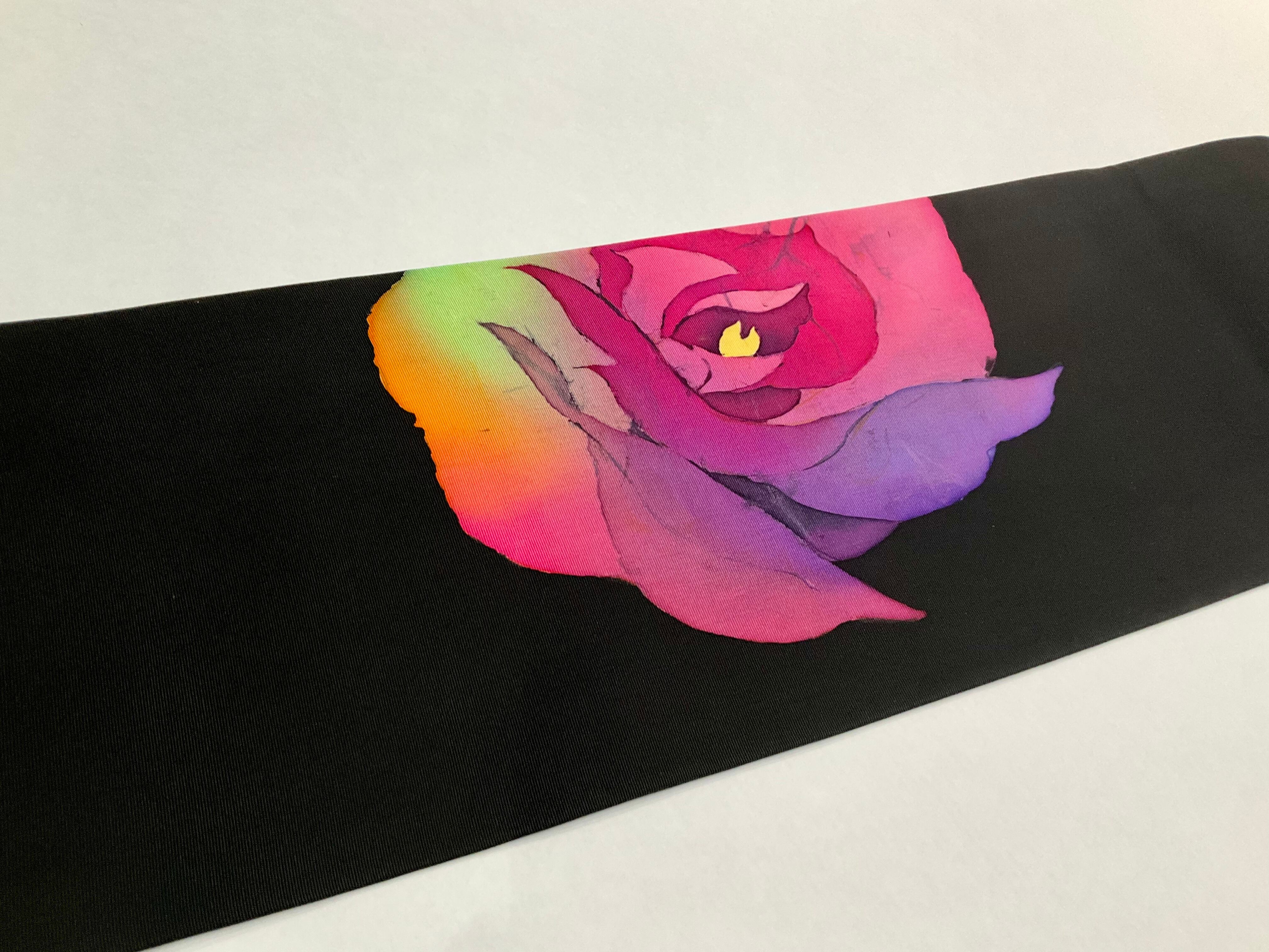 お太鼓部分にも、胴回り部分にも、大胆に描かれた薔薇の花がコーディネートに華やかさをプラスしてくれます^^