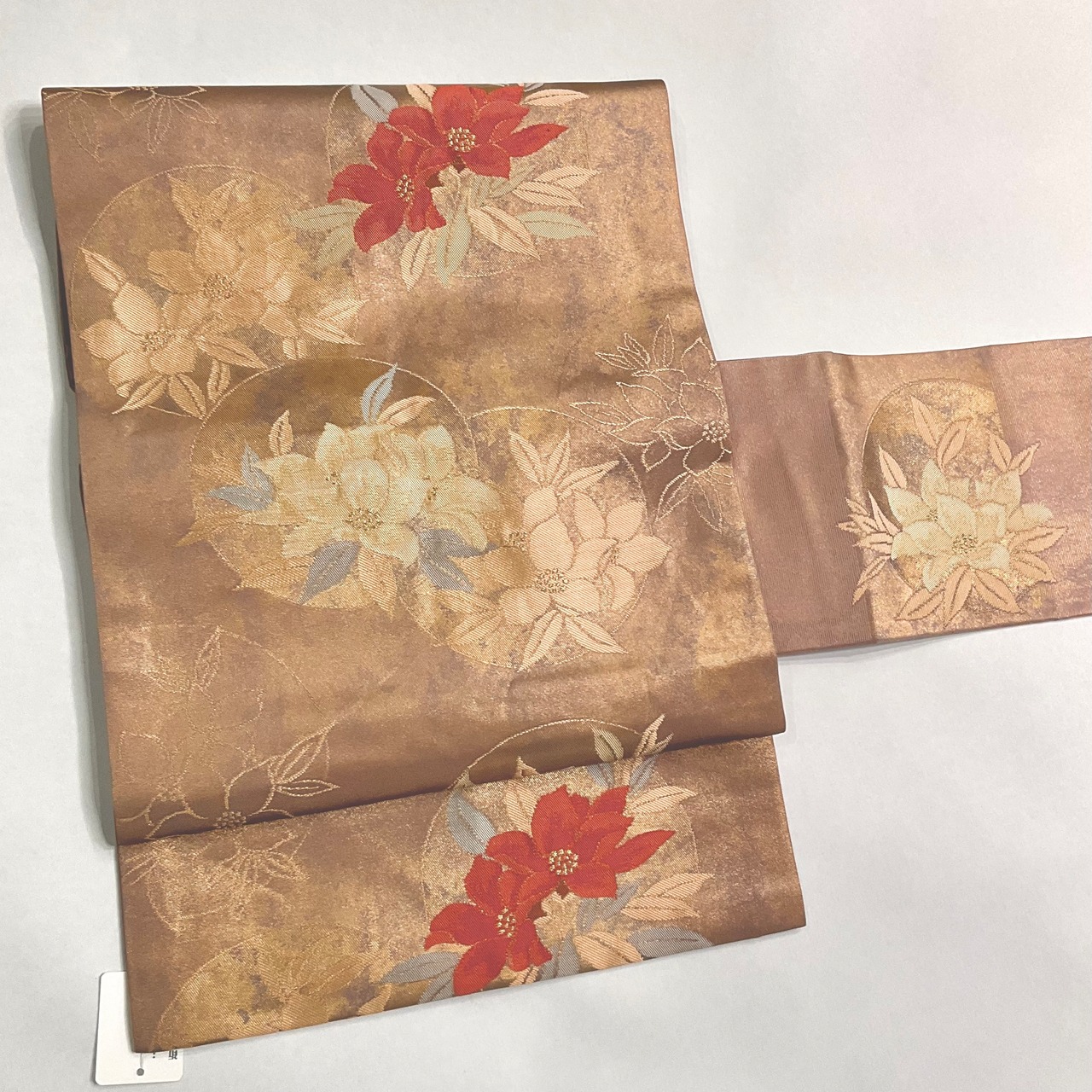 Creamy cocoa brown × Flowers*リサイクル名古屋帯 A118