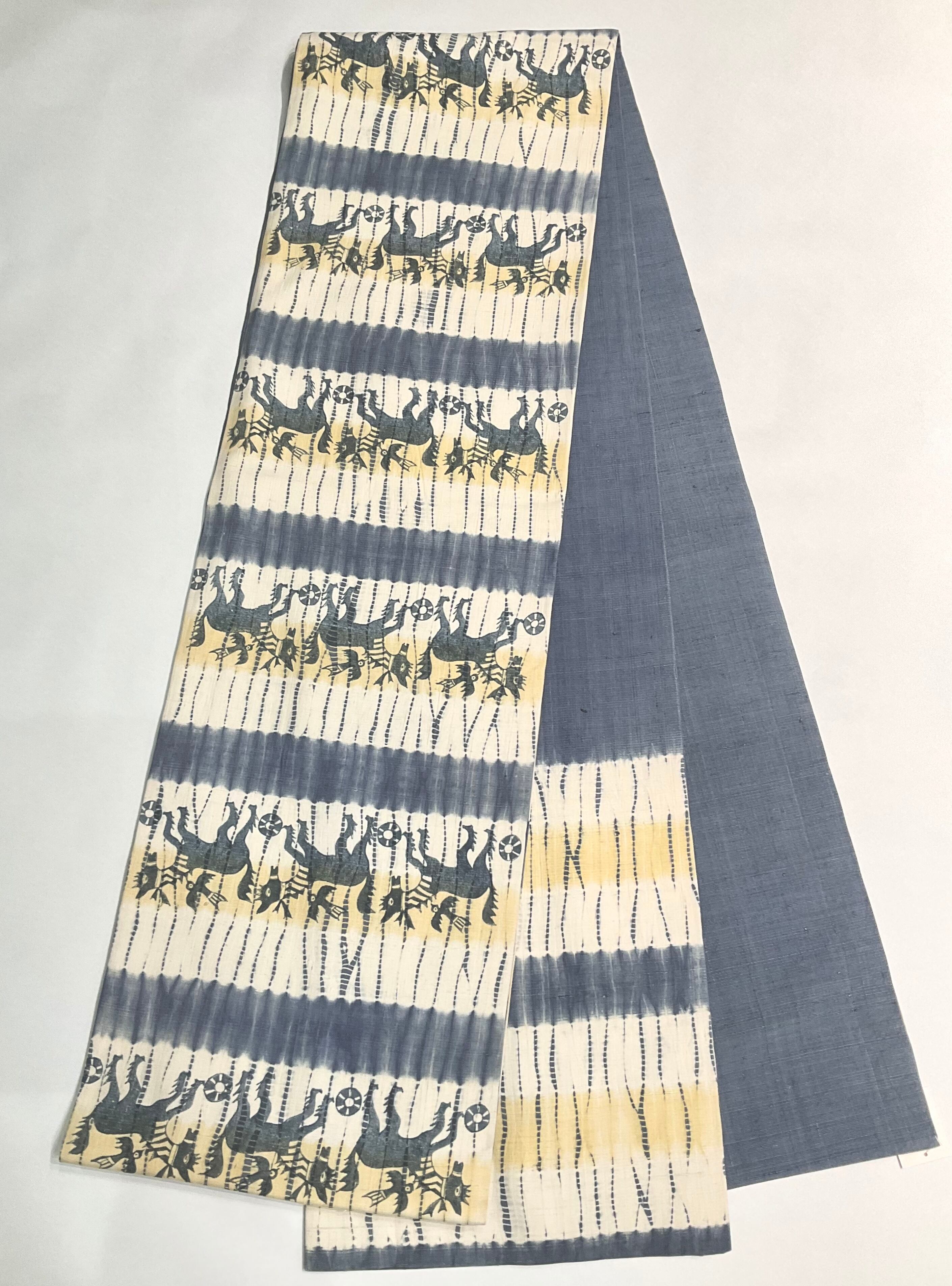 藍染めをベースにした地色に、馬と小鳥がデザインされた、洒落袋帯です♪