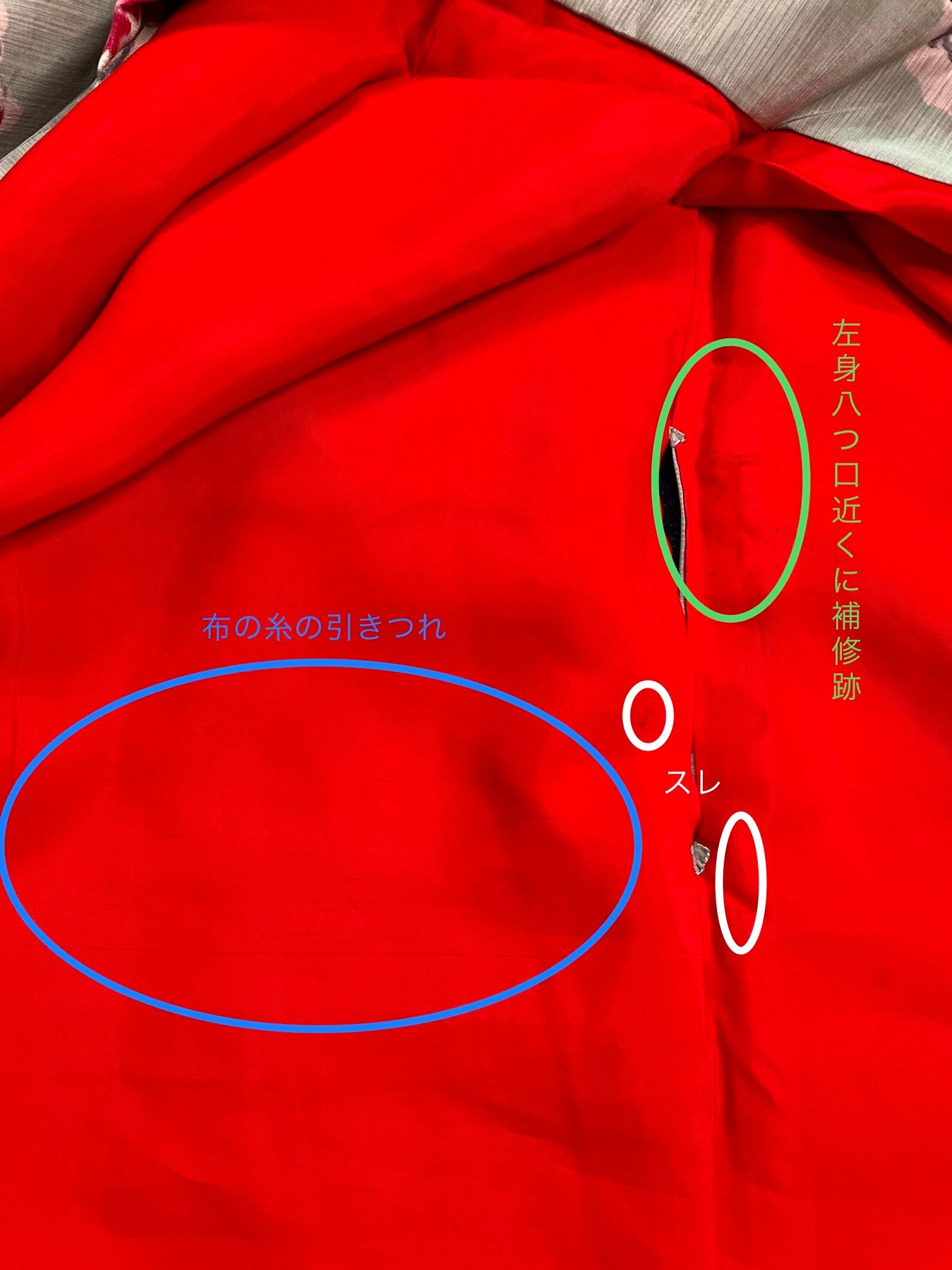 胴裏の身八つ口近くに、スレあり。