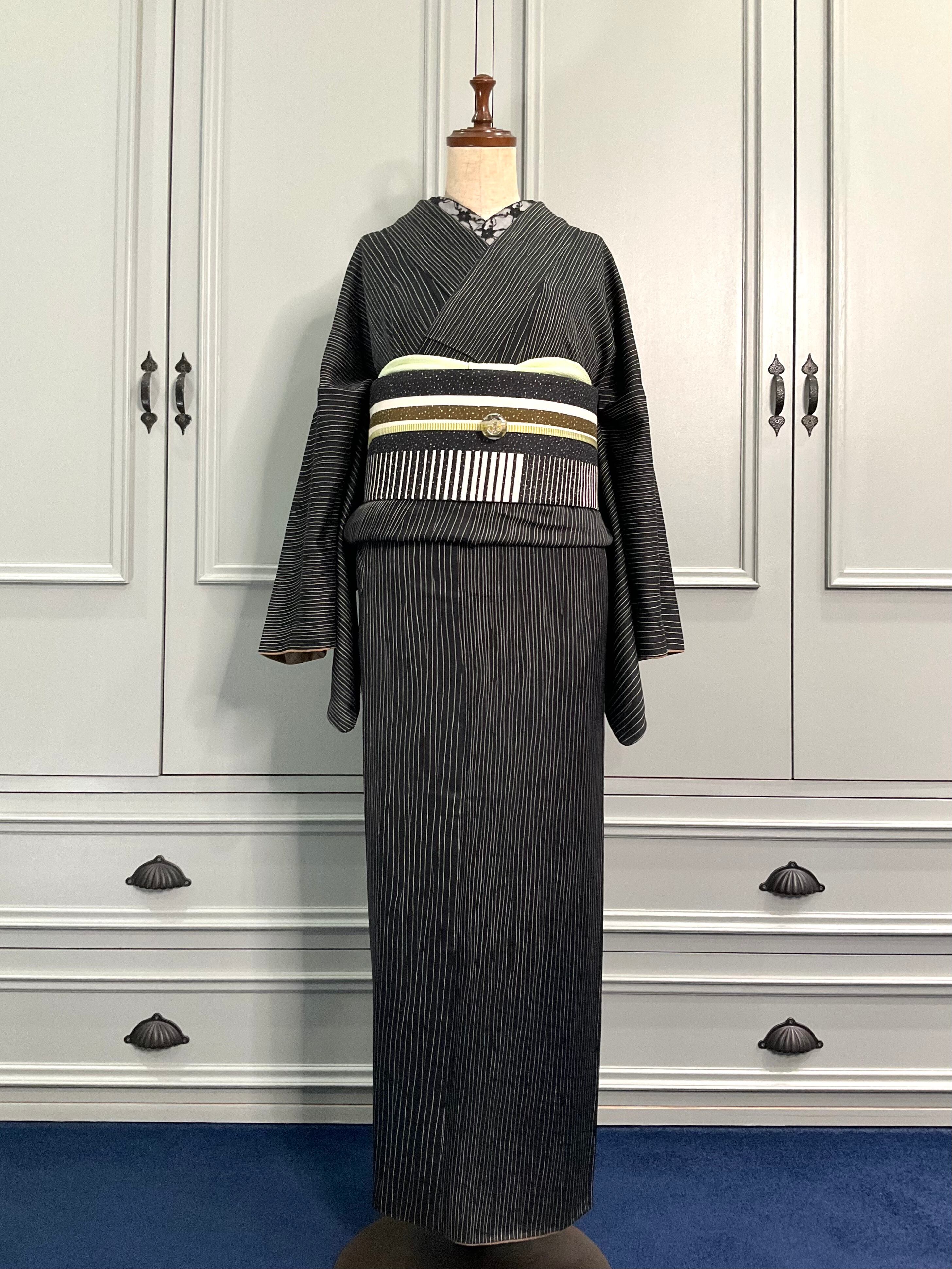 ブラックの地色に、ホワイトのストライプ柄の小紋着物です♪