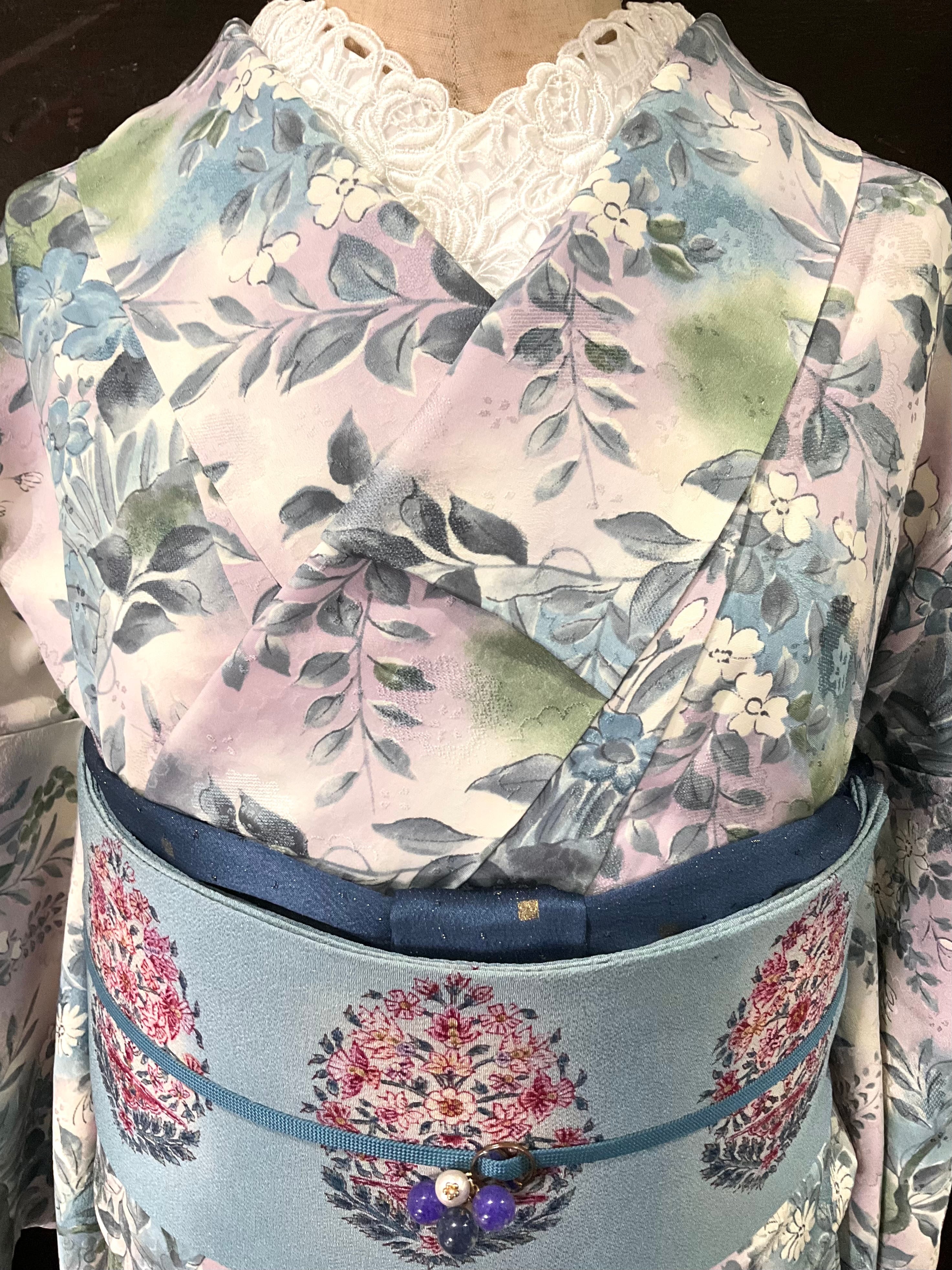 全体的に寒色系を中心にデザインされた、こちらのお着物。