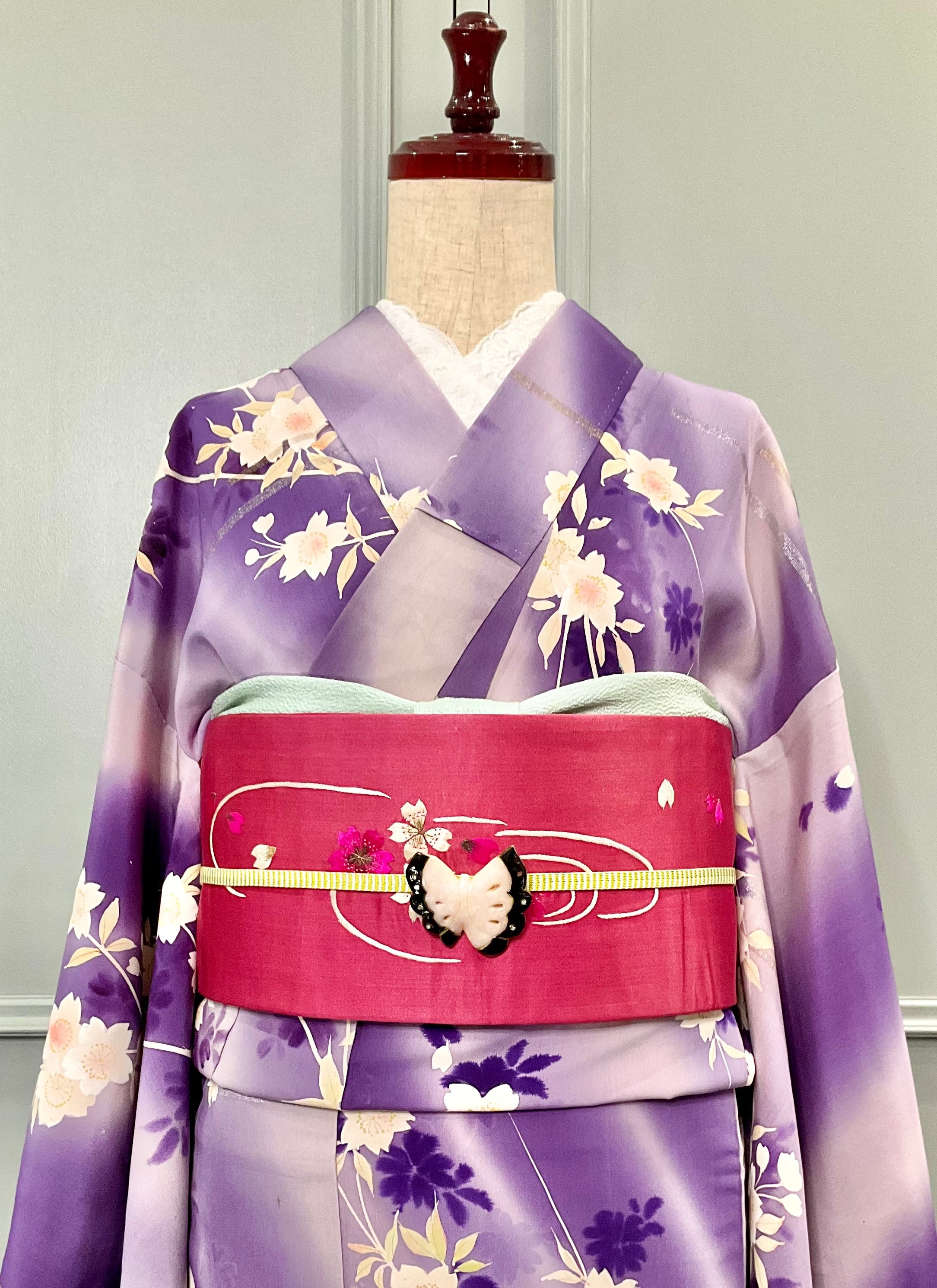 アンティークの名古屋帯は長さが短いものが多いですが、短い名古屋帯の結び方でしたら着用できます◎