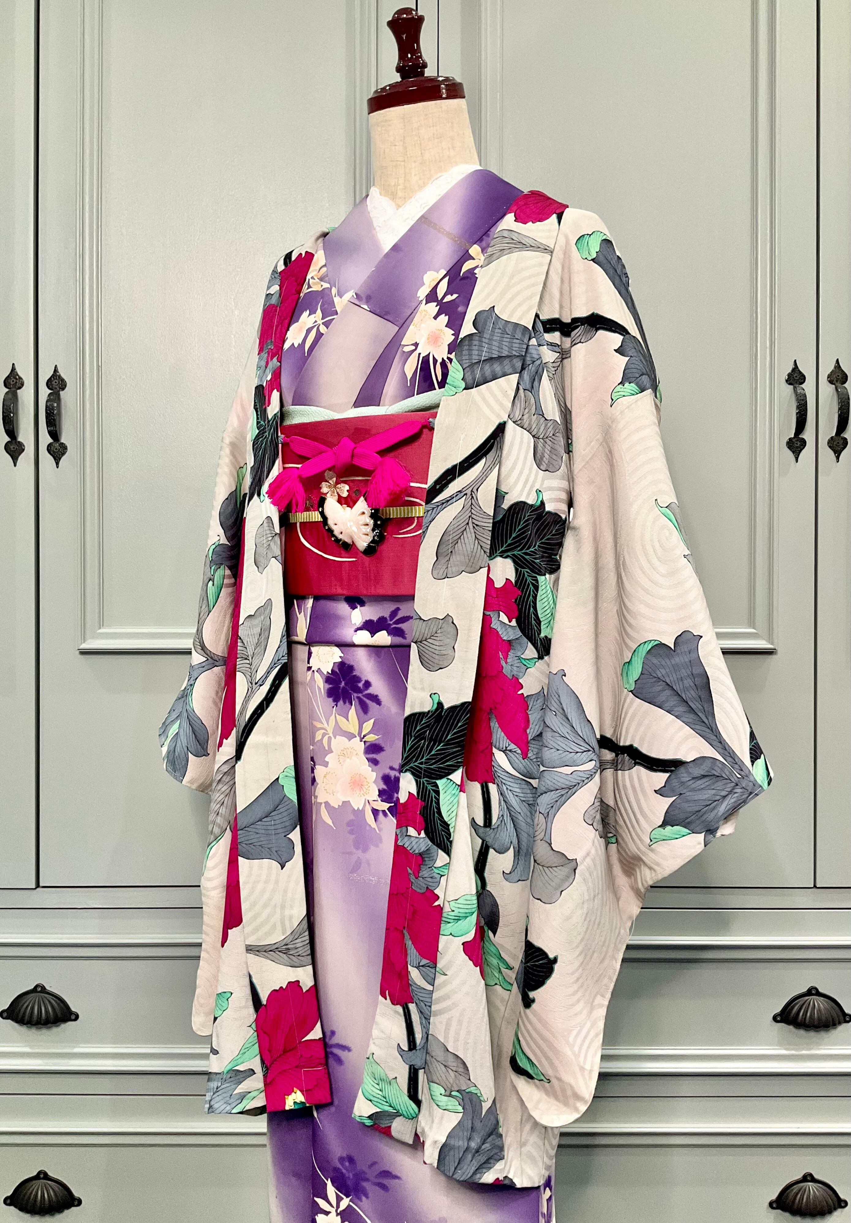 裄長め*Daring Peony*アンティーク長羽織 A184