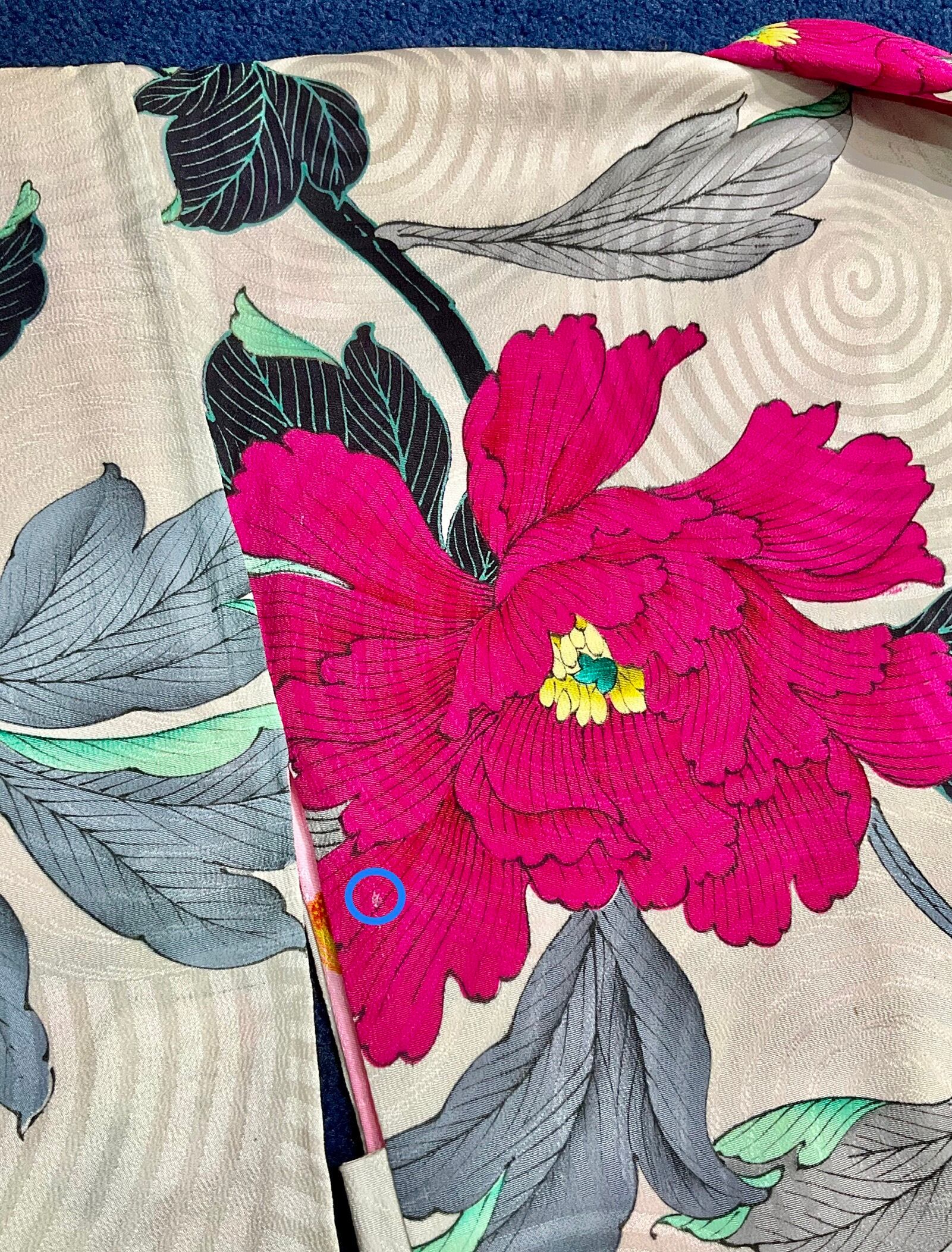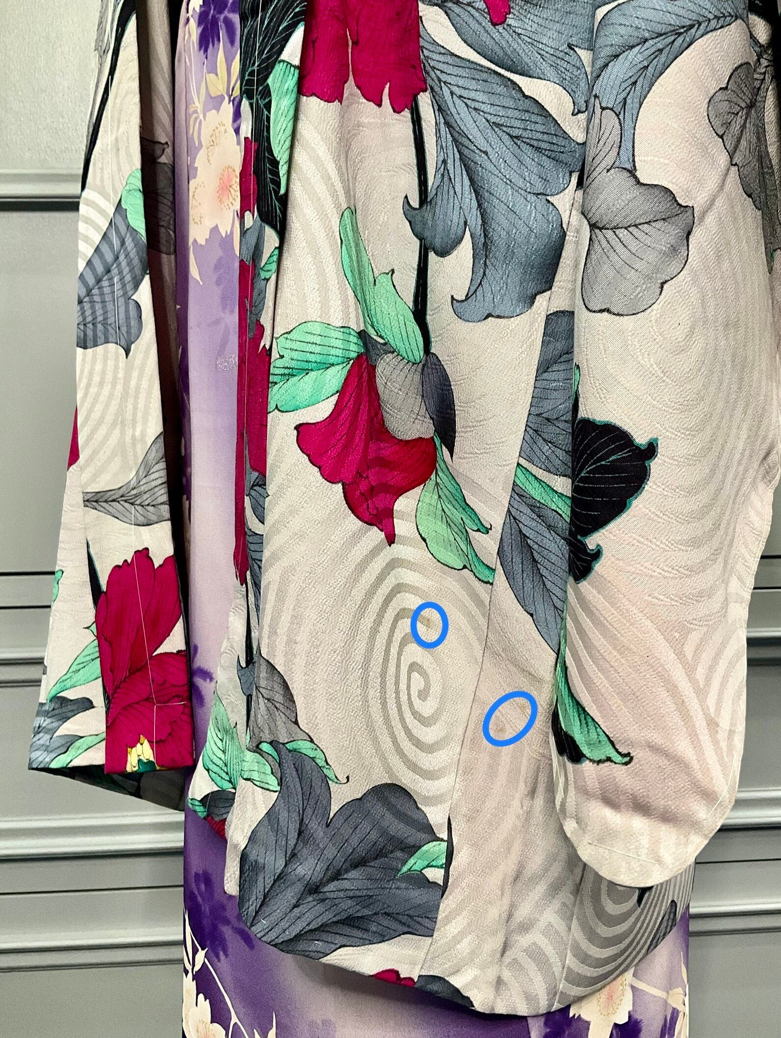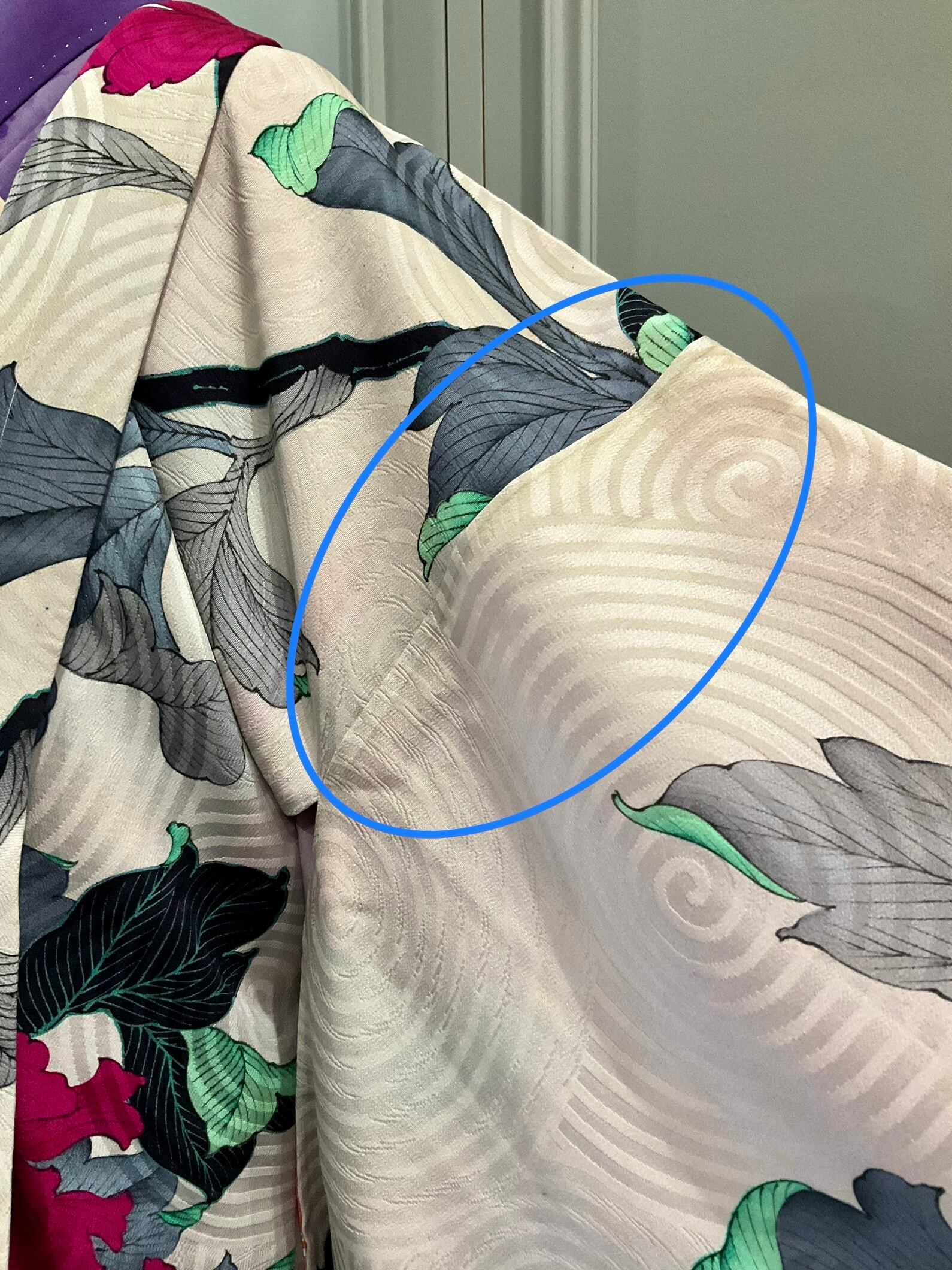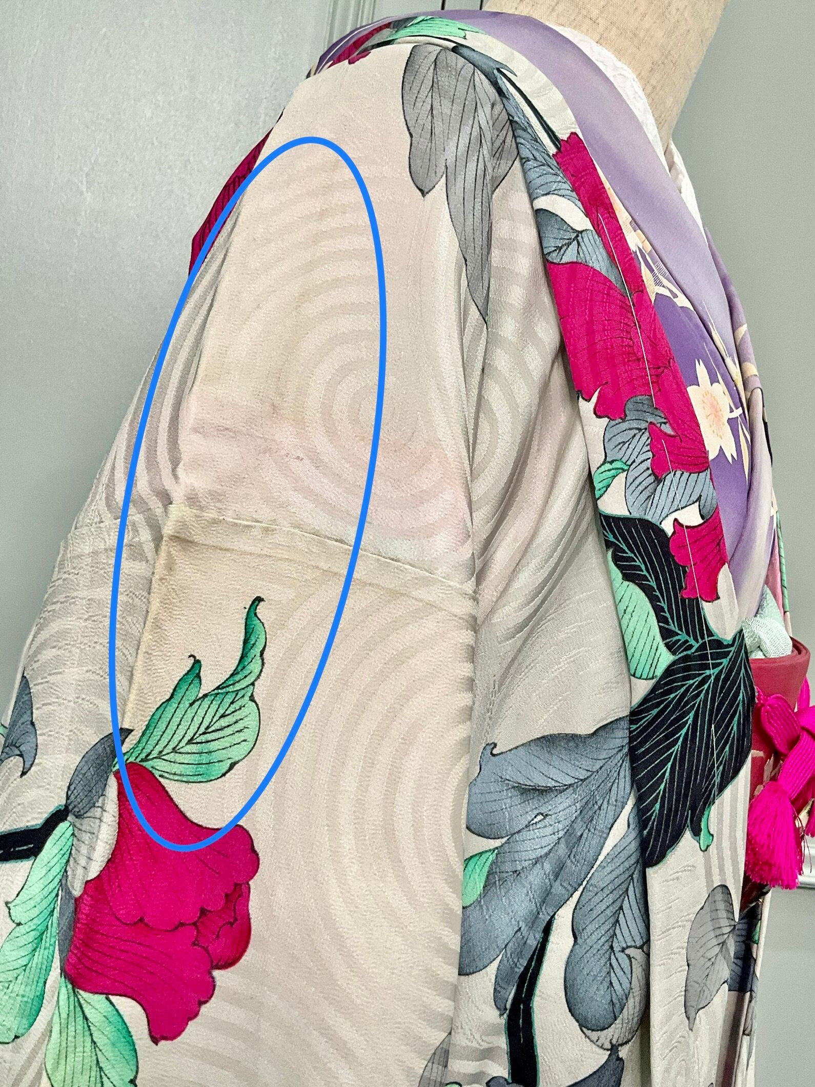 左脇裾に小シミ。左後ろ身八つ口に小穴。