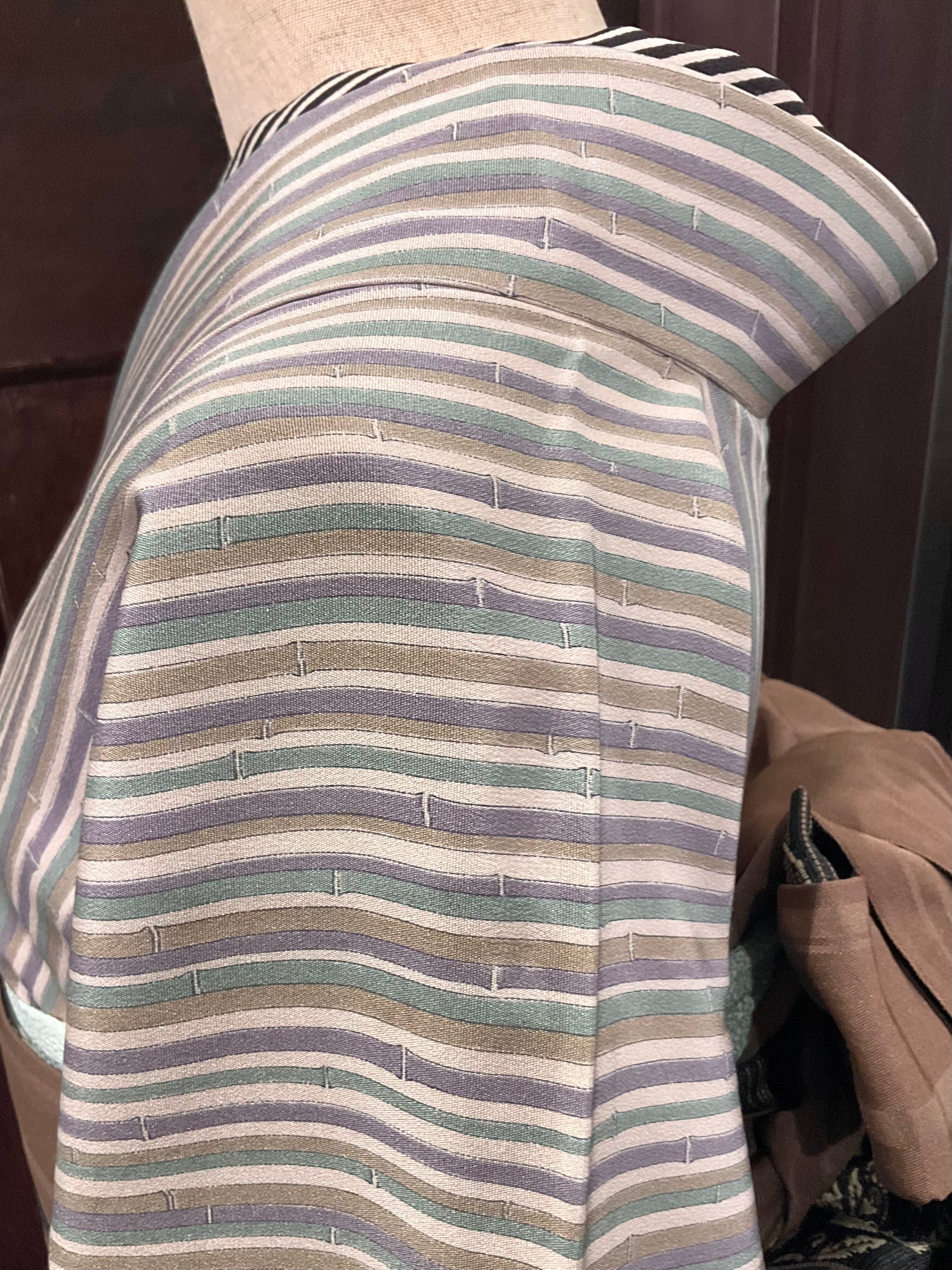 落ち着いた色合いが、ちょい渋で素敵なストライプ柄は、よく見ると縦ラインが竹のデザインになっております。