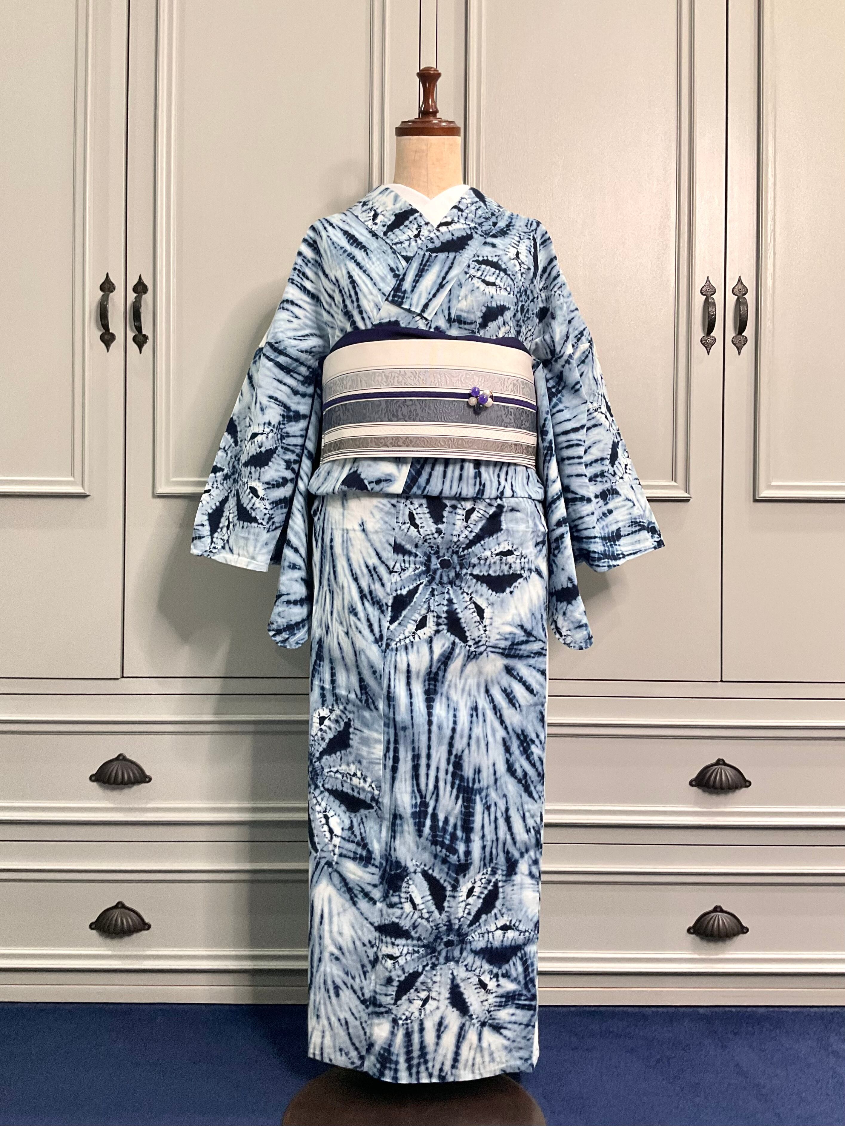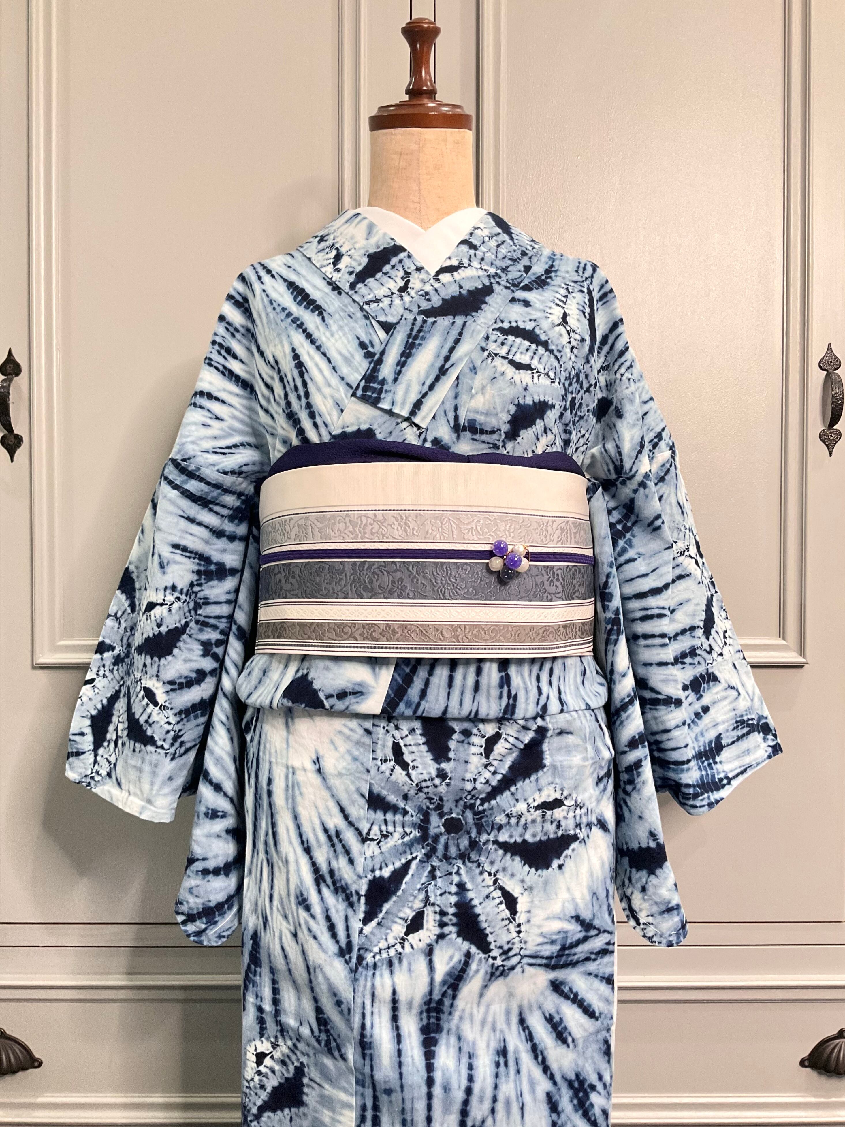 大きく大胆に染め抜かれた絞り模様が華やか✨