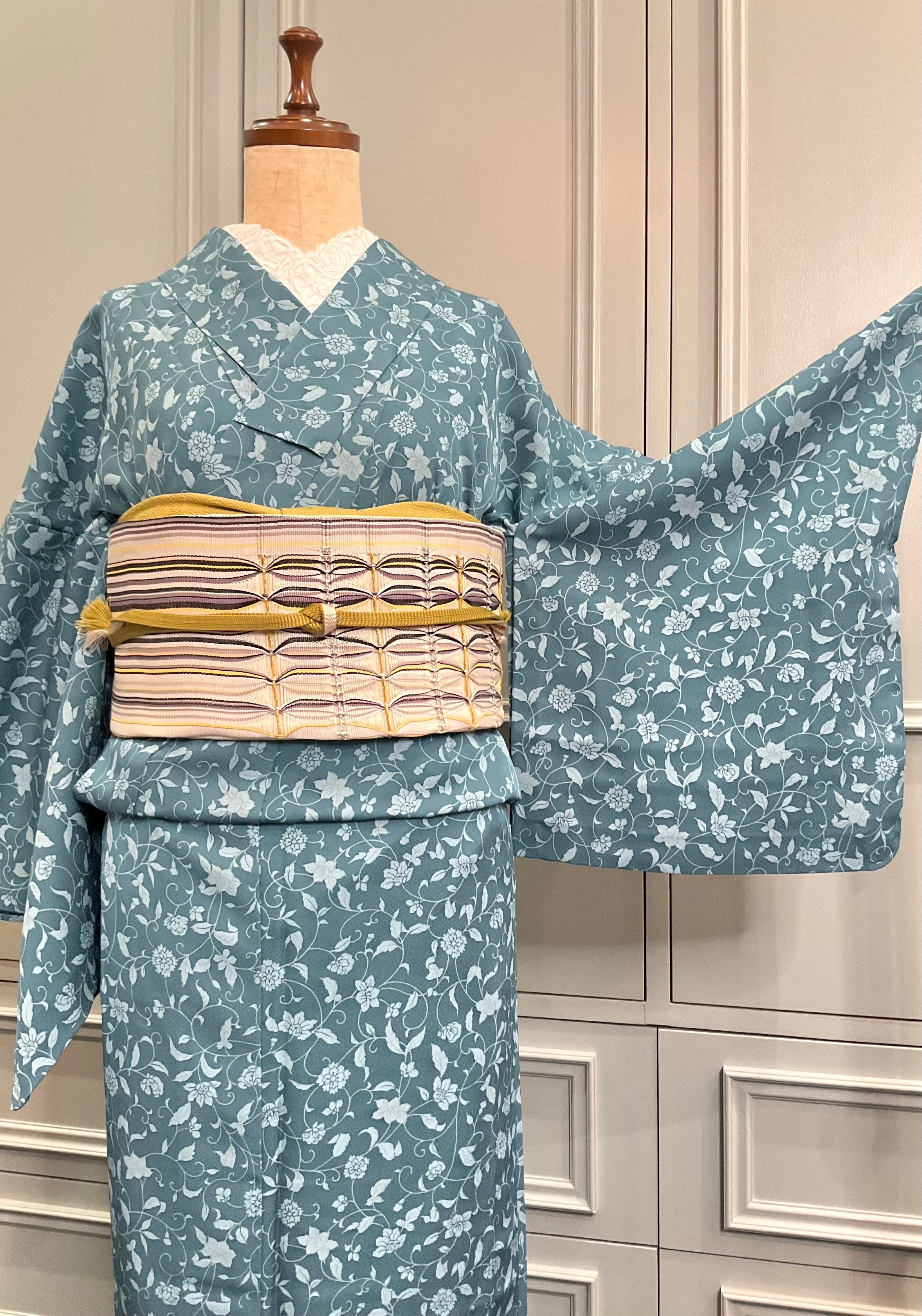 絶妙なくすみブルーに、唐花文様がオトナカワイイ♡