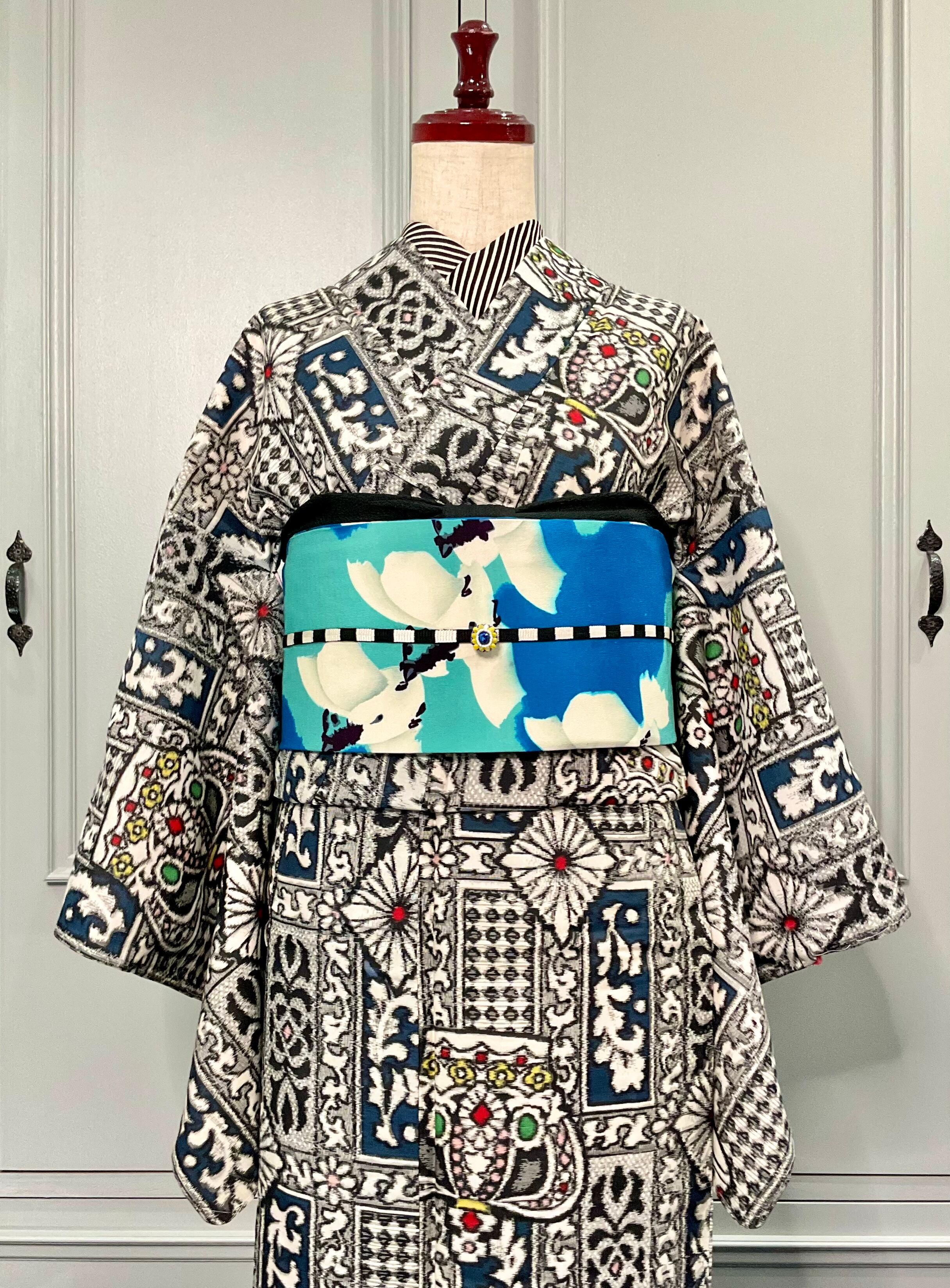 今回はアンティークの仕立て替え名古屋帯を合わせてみましたが、現代モノの名古屋帯や半幅帯などを合わせるのもオススメです♪