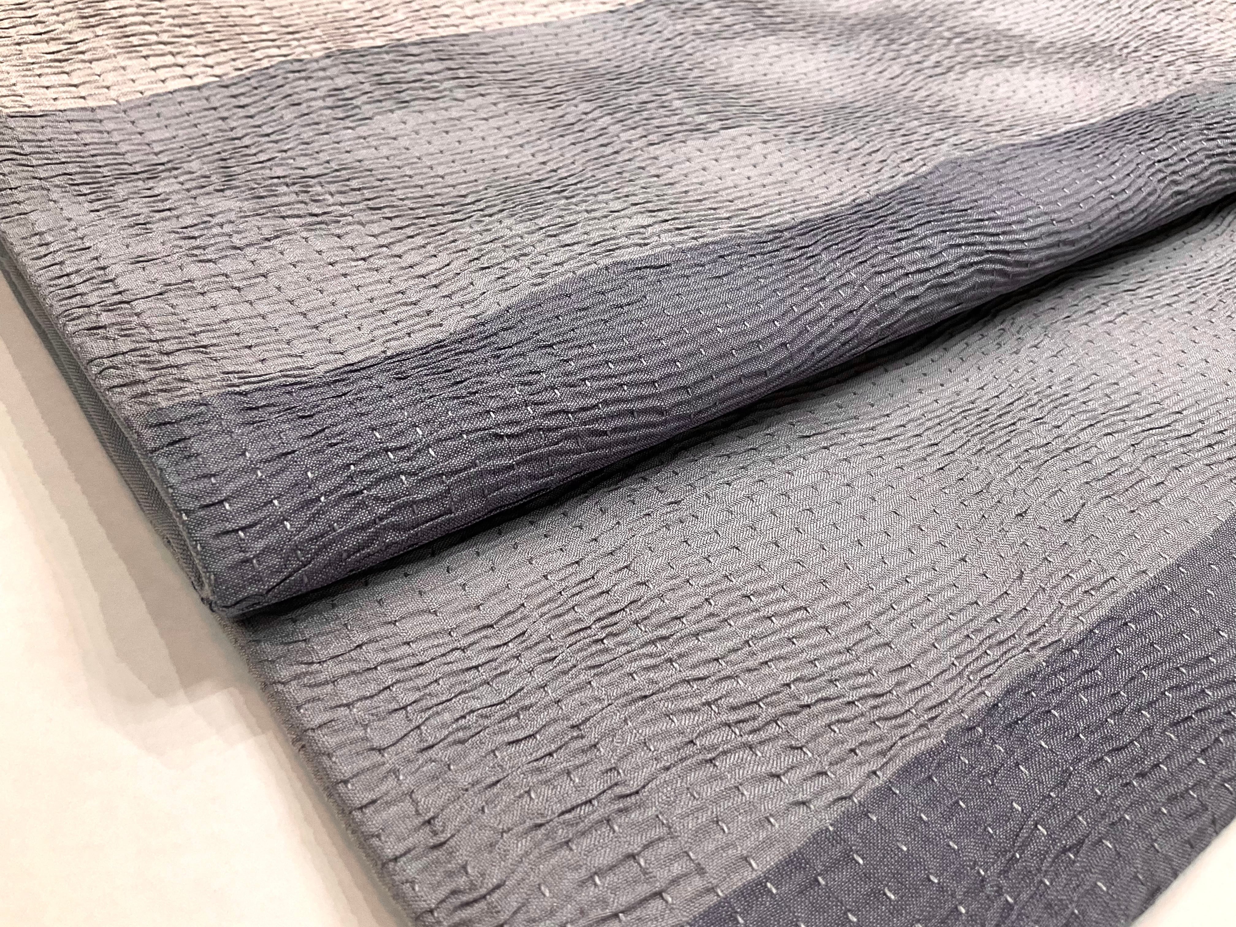 ゆらゆらグレーボーダー*リサイクル名古屋帯 A243
