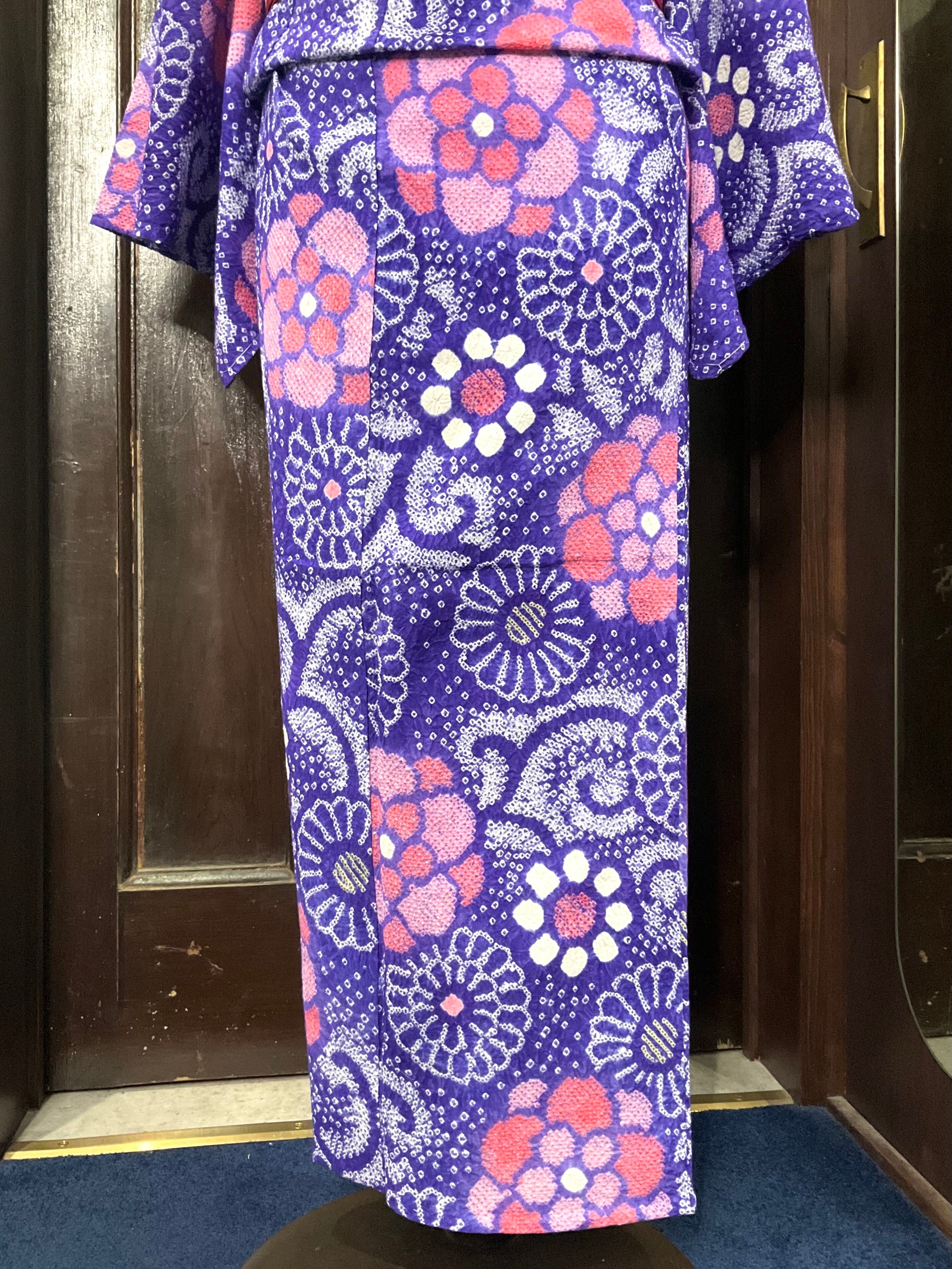 long*未使用品*有松鳴海絞り浴衣*サークル・フラワー A244