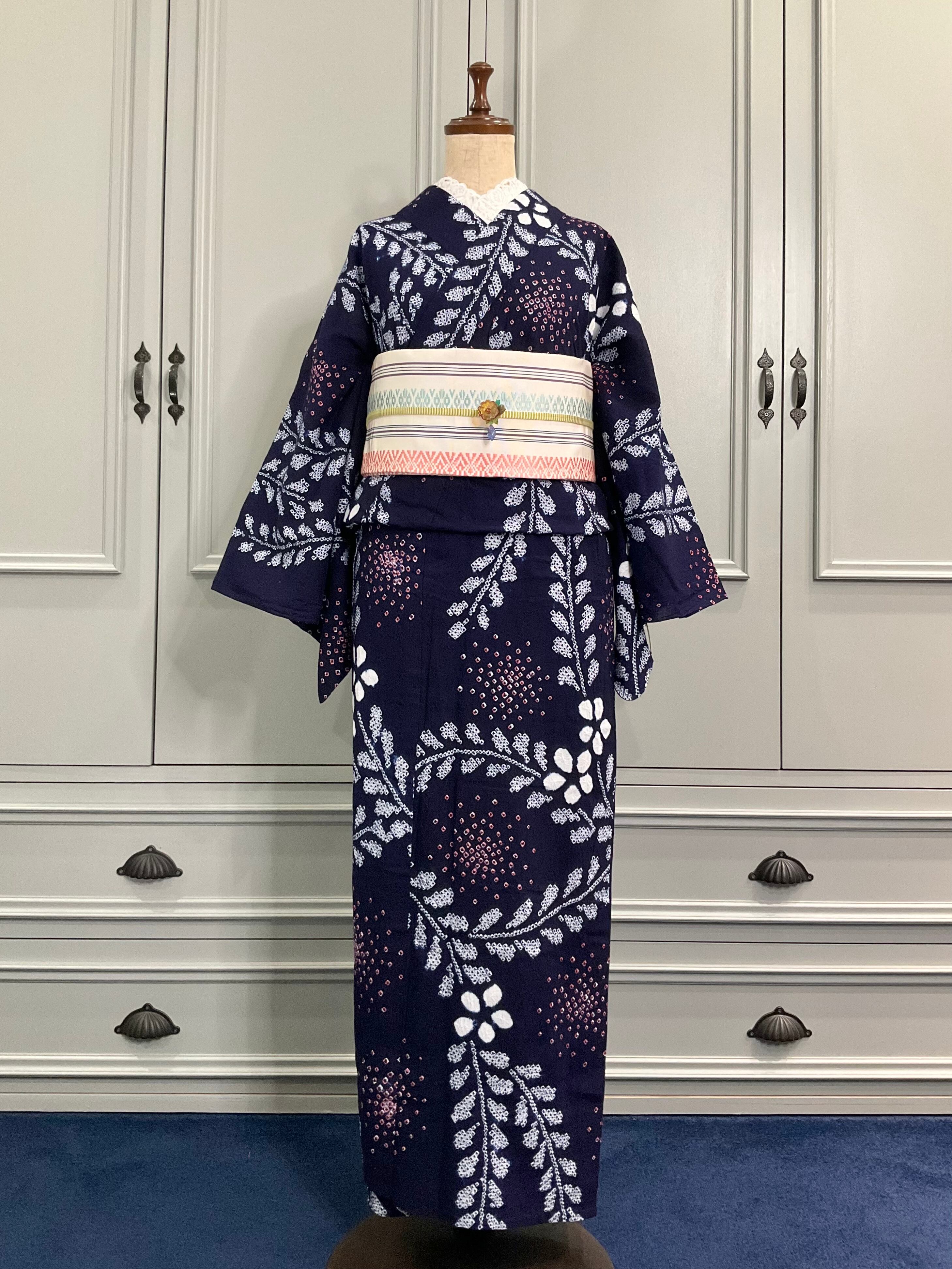 有松鳴海絞り浴衣*Indigo flowing floral A249