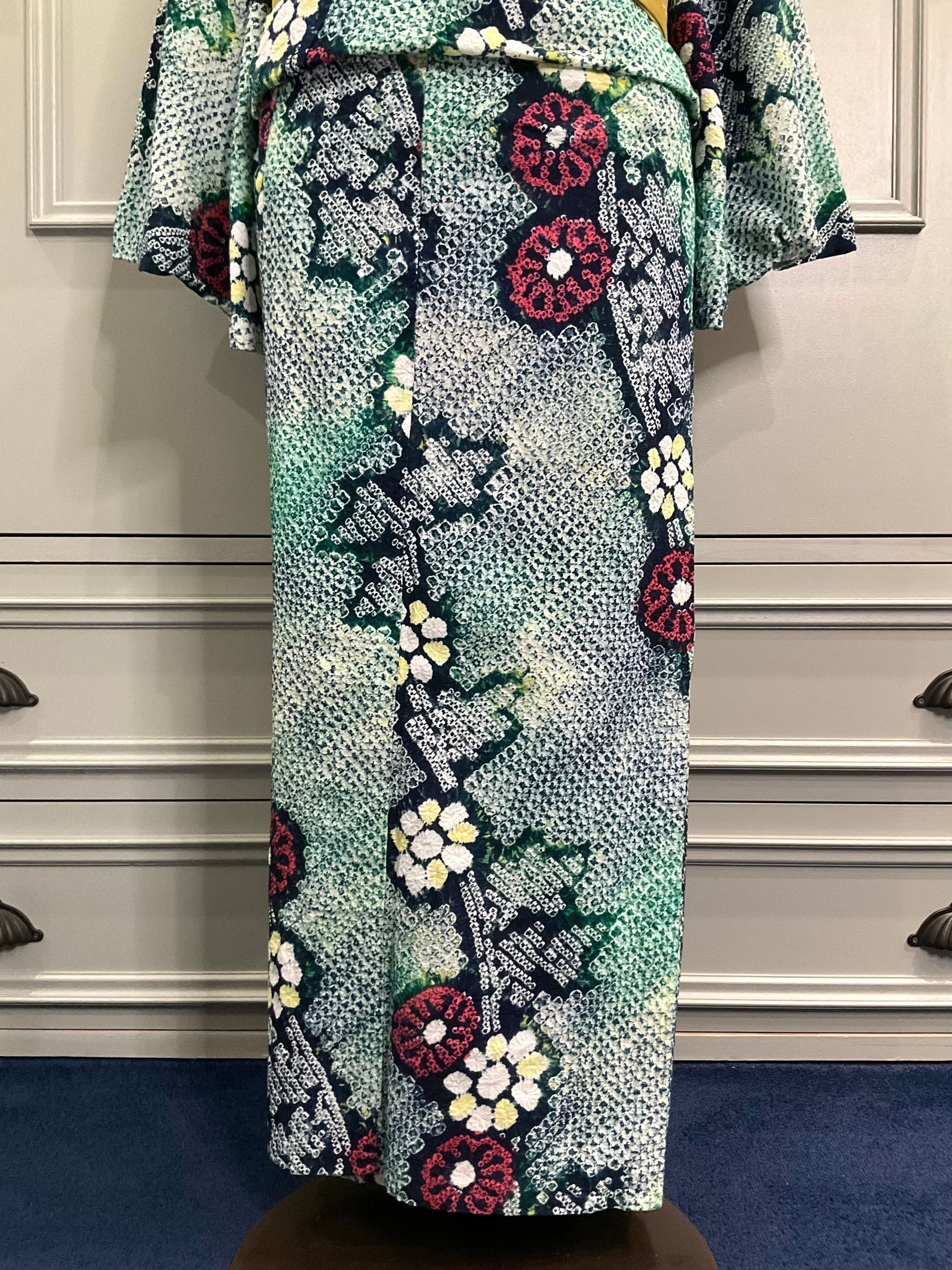 グリーン系の地色に、花模様がデザインされた、有松鳴海絞り浴衣です♪