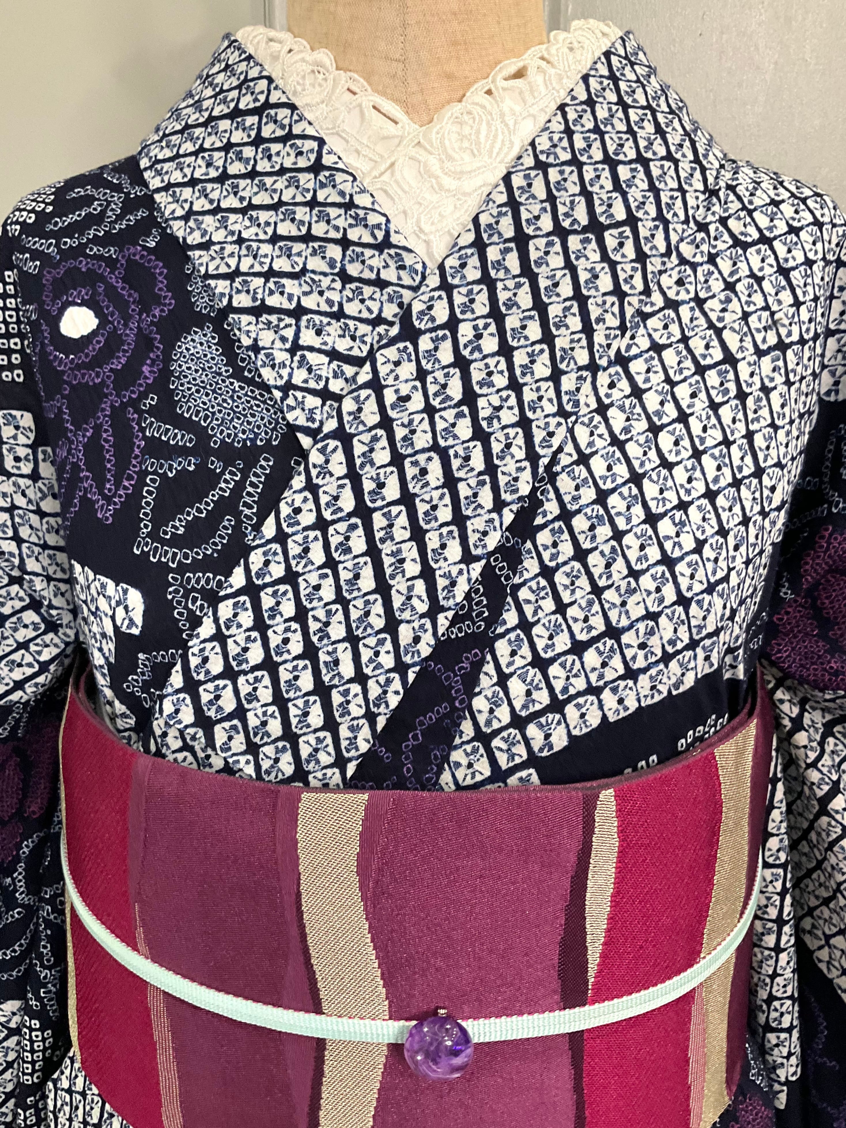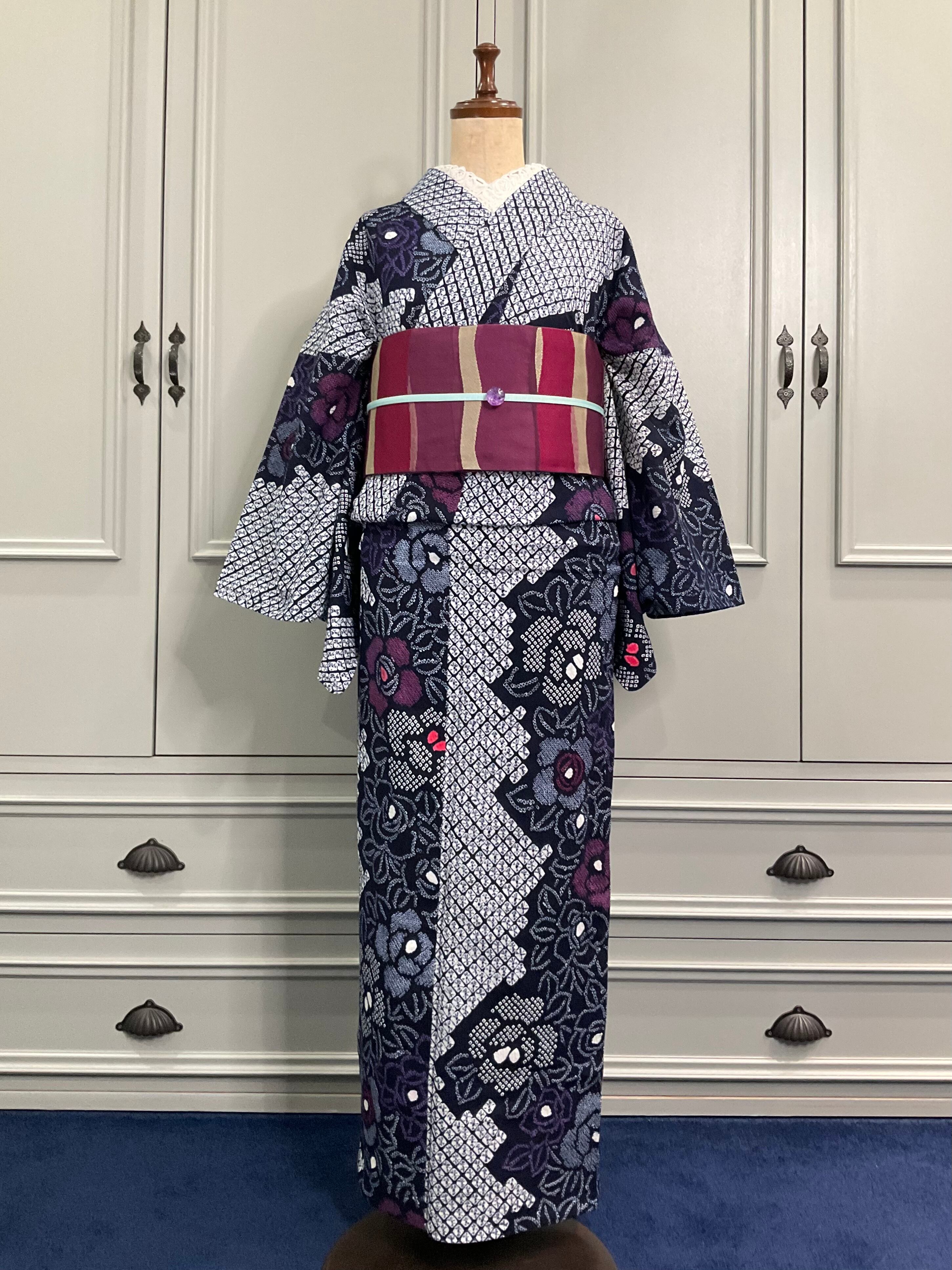 夜の薔薇園*有松鳴海絞り浴衣 A269