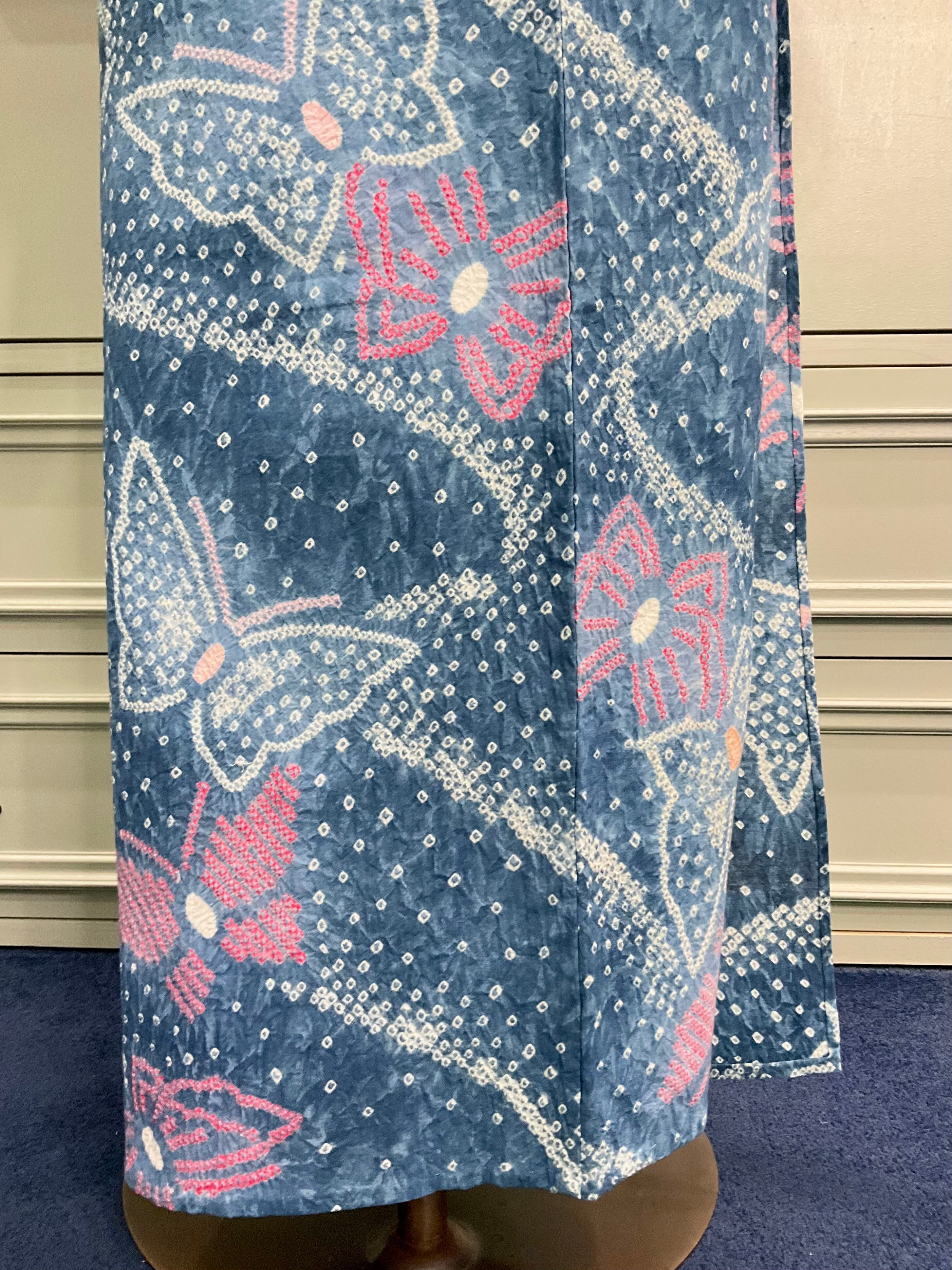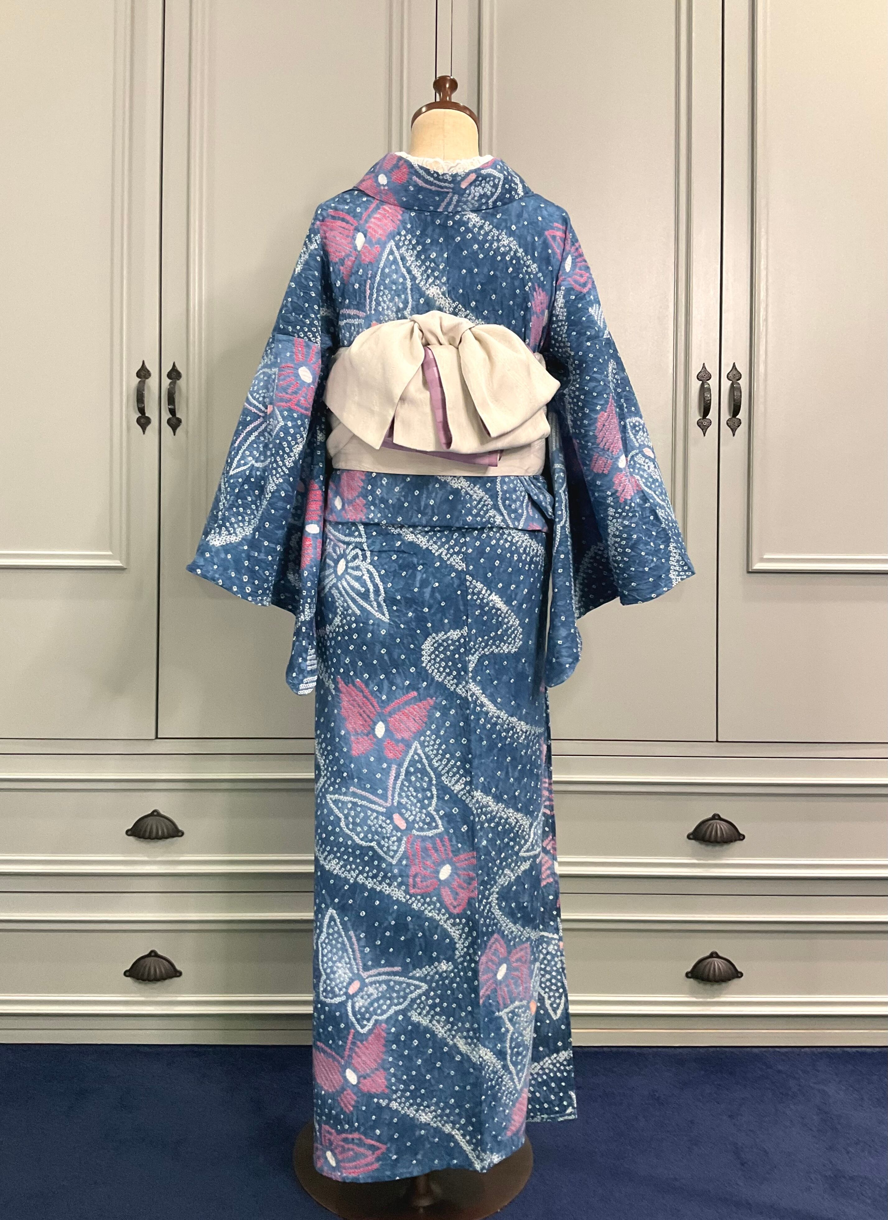 ブルー系の地色に、蝶々柄がデザインされた、有松鳴海絞り浴衣です♪