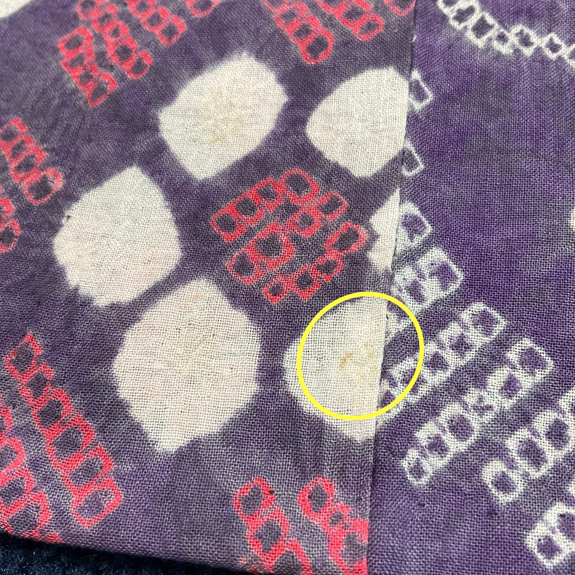 (シミなどの箇所を○で示していますので写真にてご確認ください。)