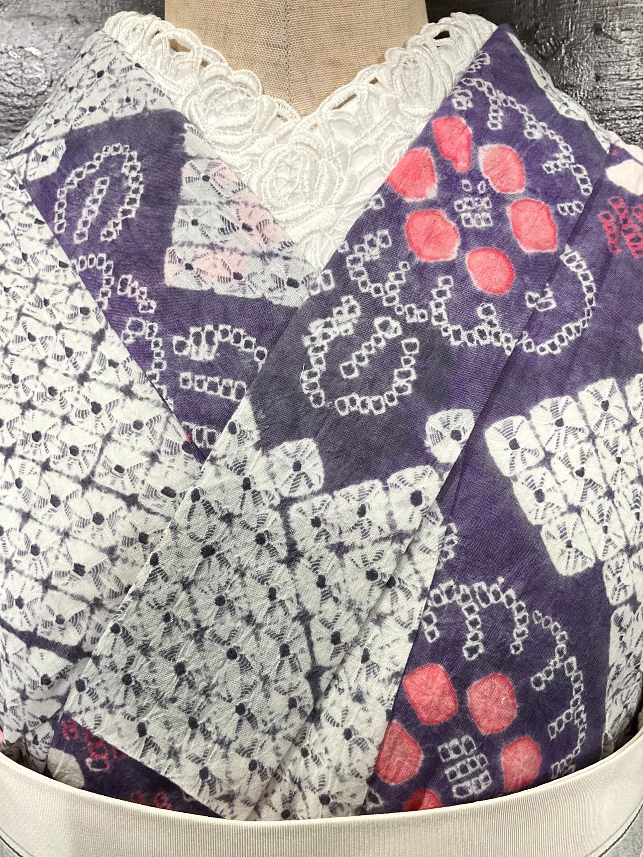 こちらの浴衣はデザイン上、絞りの立体感はややなだらかになっています。
