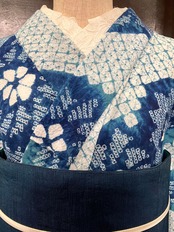ホワイト×ブルー系の地色に、花模様がデザインされた、有松鳴海絞り浴衣です♪