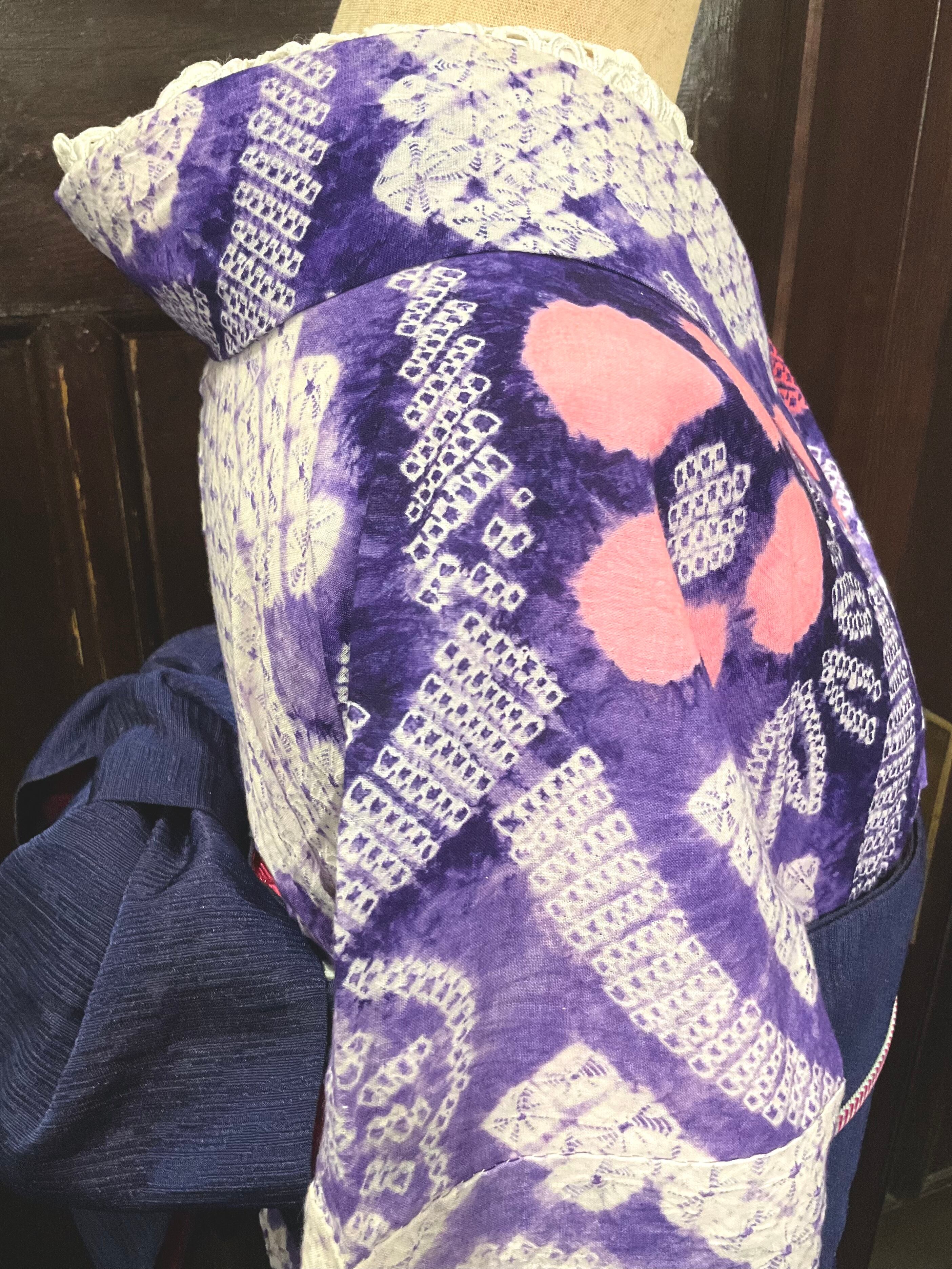 long*White × Purple:Pinky flower*有松鳴海絞り浴衣 A301