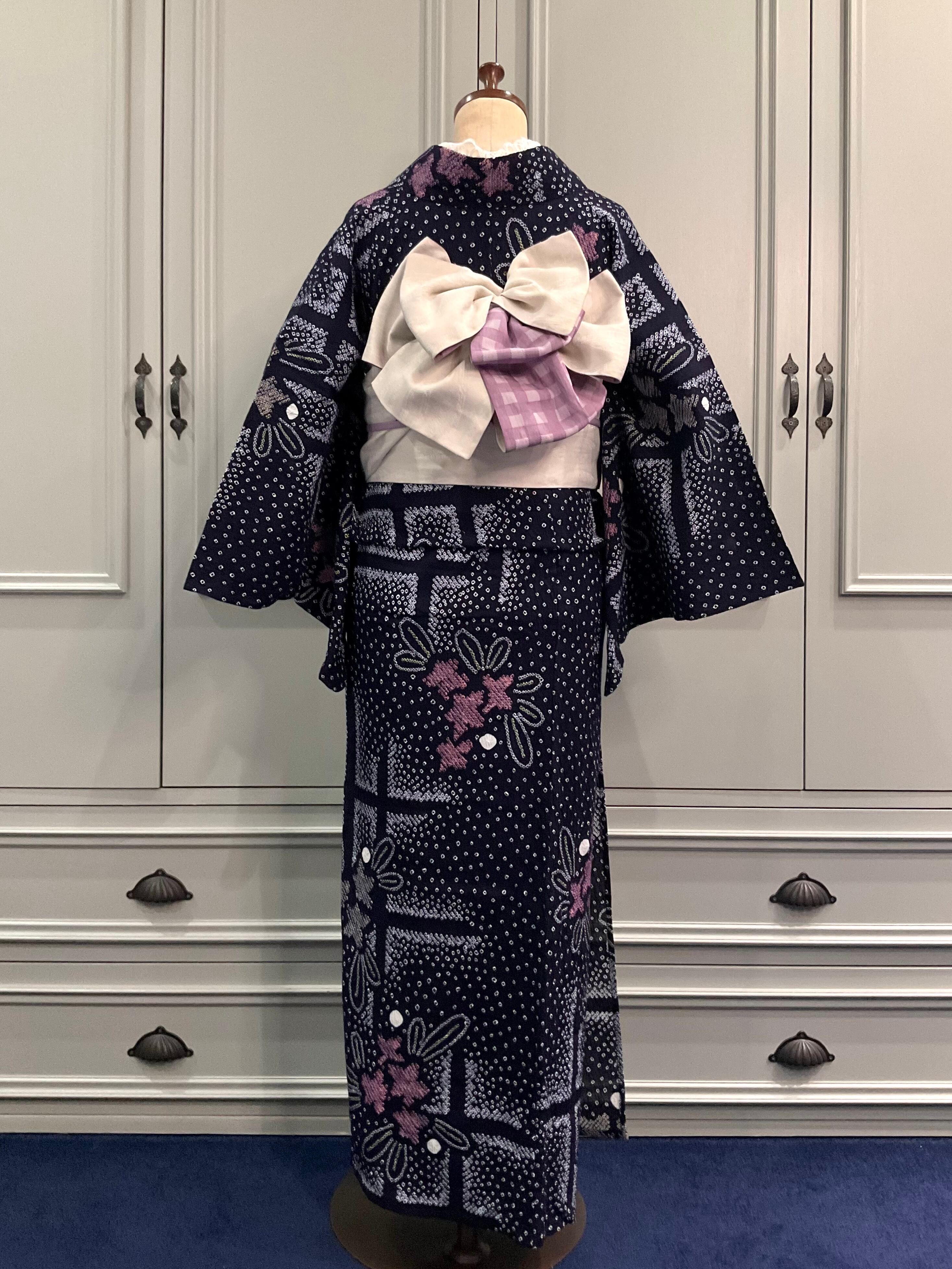 Indigo:Lattice & Flower*有松鳴海絞り浴衣 A305