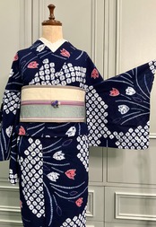 こちらの浴衣はデザイン上、絞りの立体感は少なめですが、サラッと着心地も良さそうです。