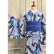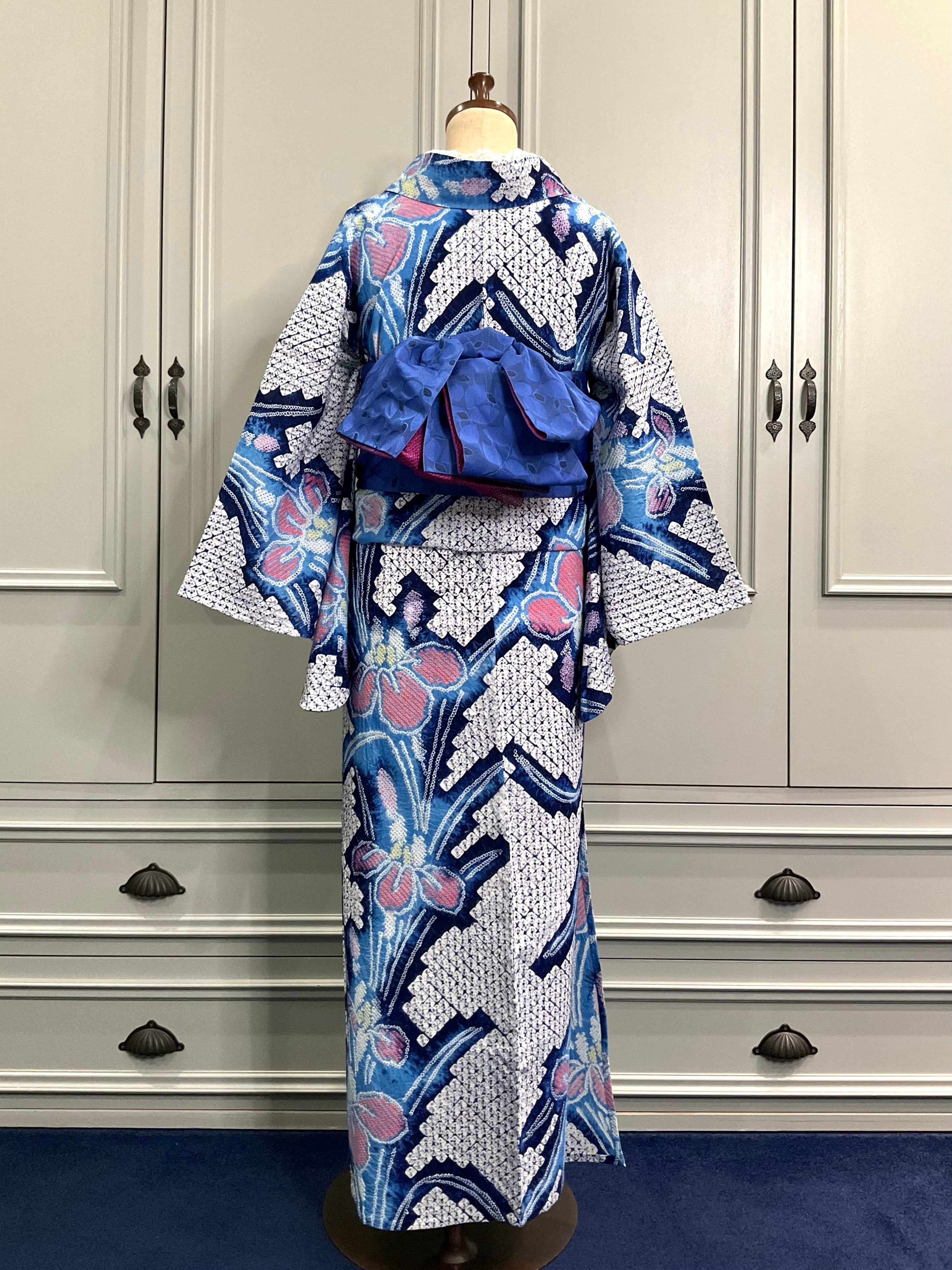 long*Sea&Sky Blue:Flower*有松鳴海絞り浴衣 A311