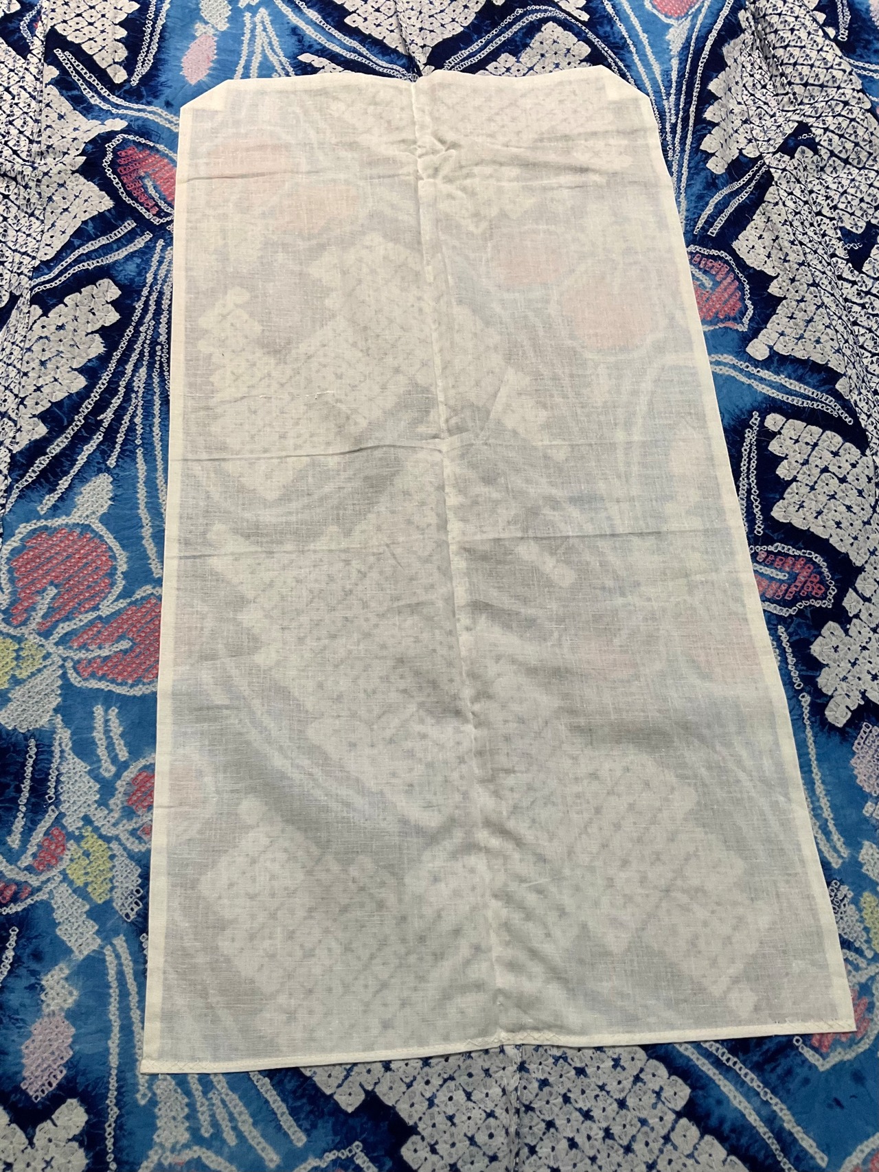 型彫り、絵刷り、糸を使った縫い絞りや括りの手作業、染色、糸抜き、などなどたくさんの技法がたくさんの人の手によって施され出来上がる、伝統工芸品です。