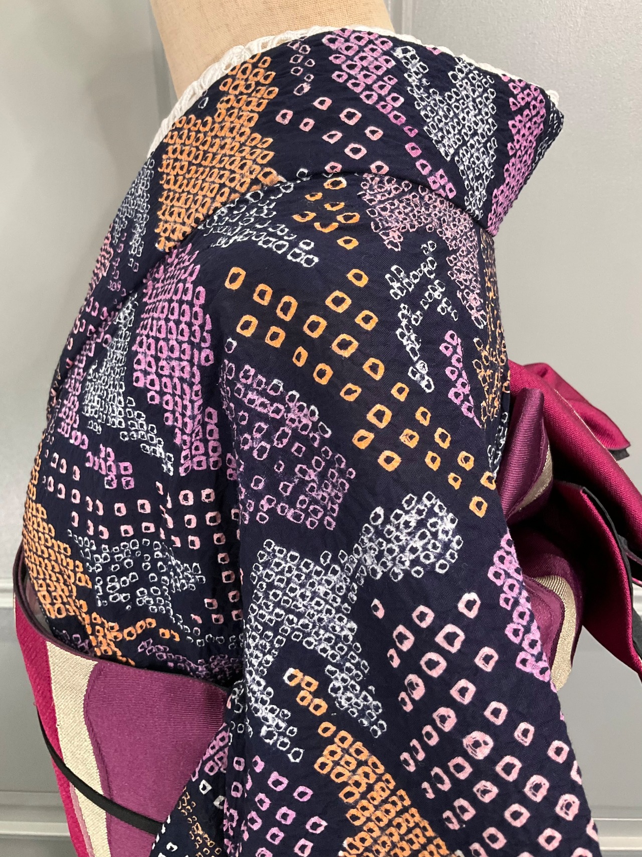 Deep indigo× warm color:camouflage*有松鳴海絞り浴衣 A315