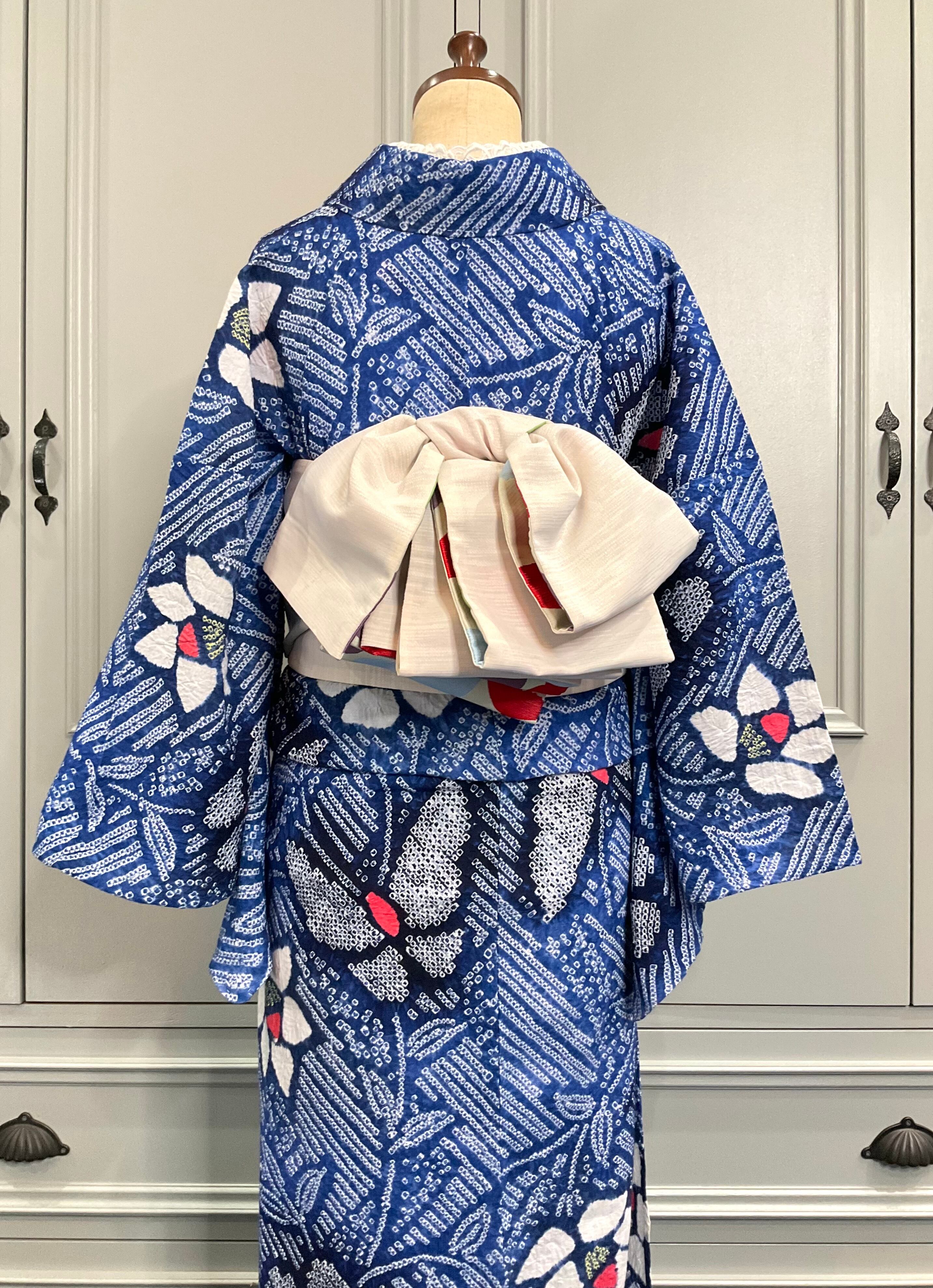 Blue:Flower & Butterfly*有松鳴海絞り浴衣 A323