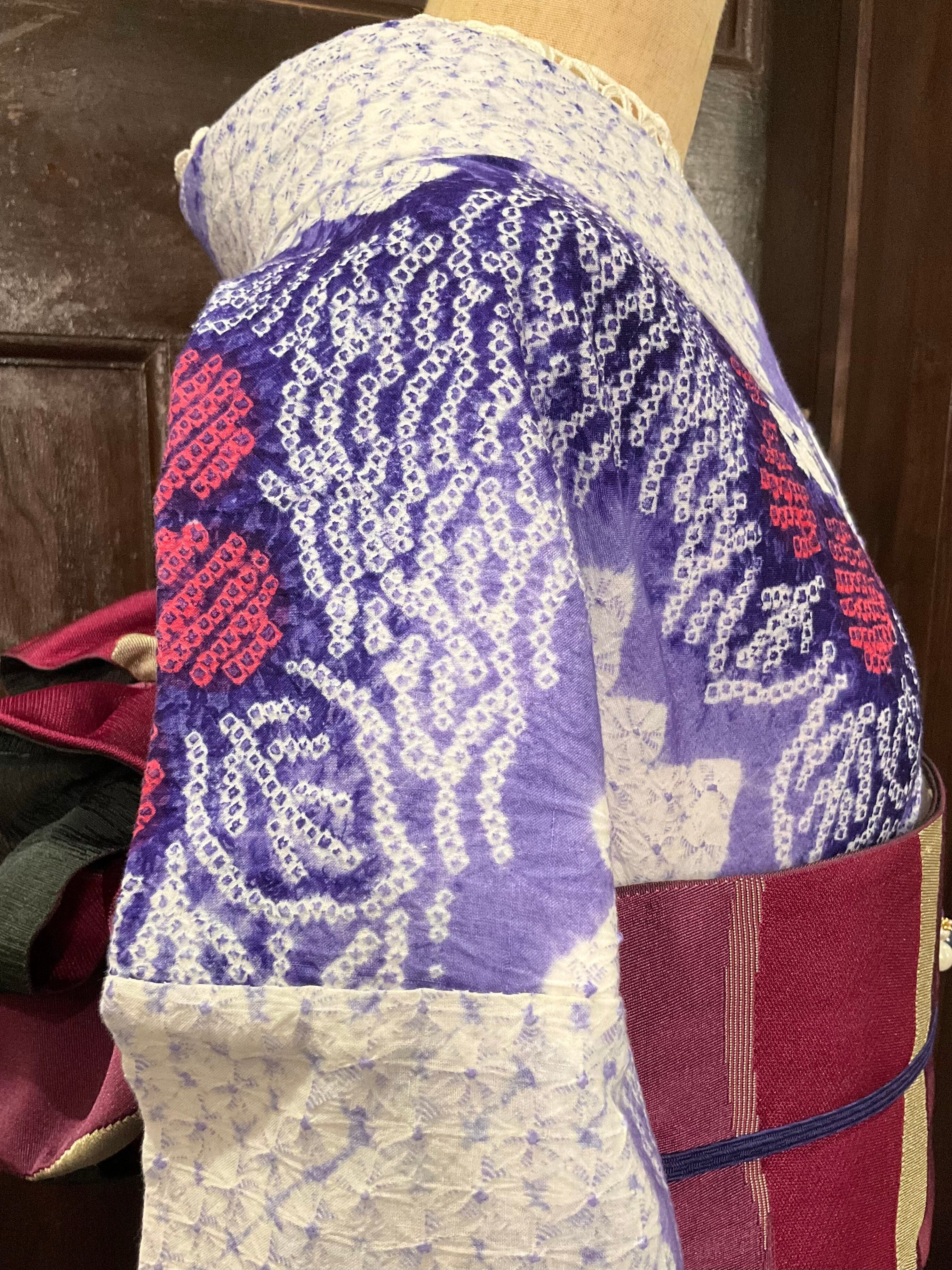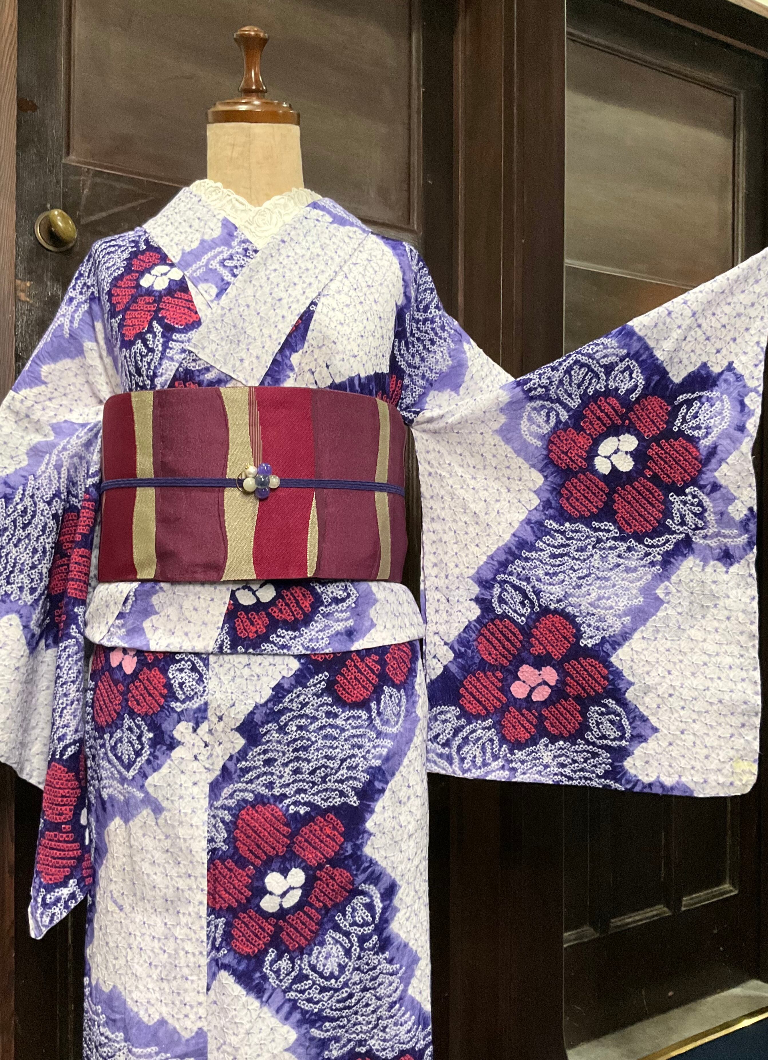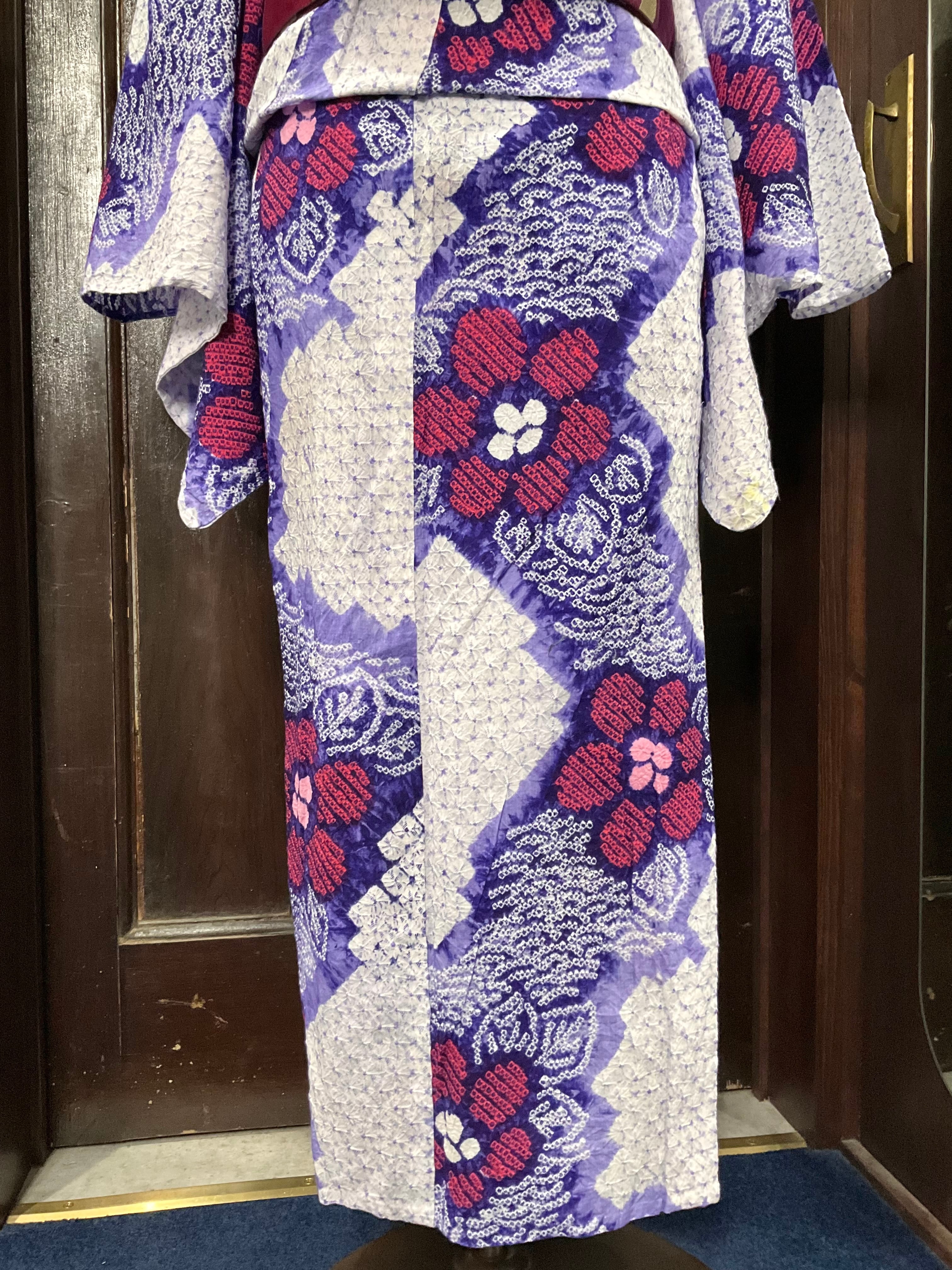White × Purple:Red Flower*有松鳴海絞り浴衣 A324
