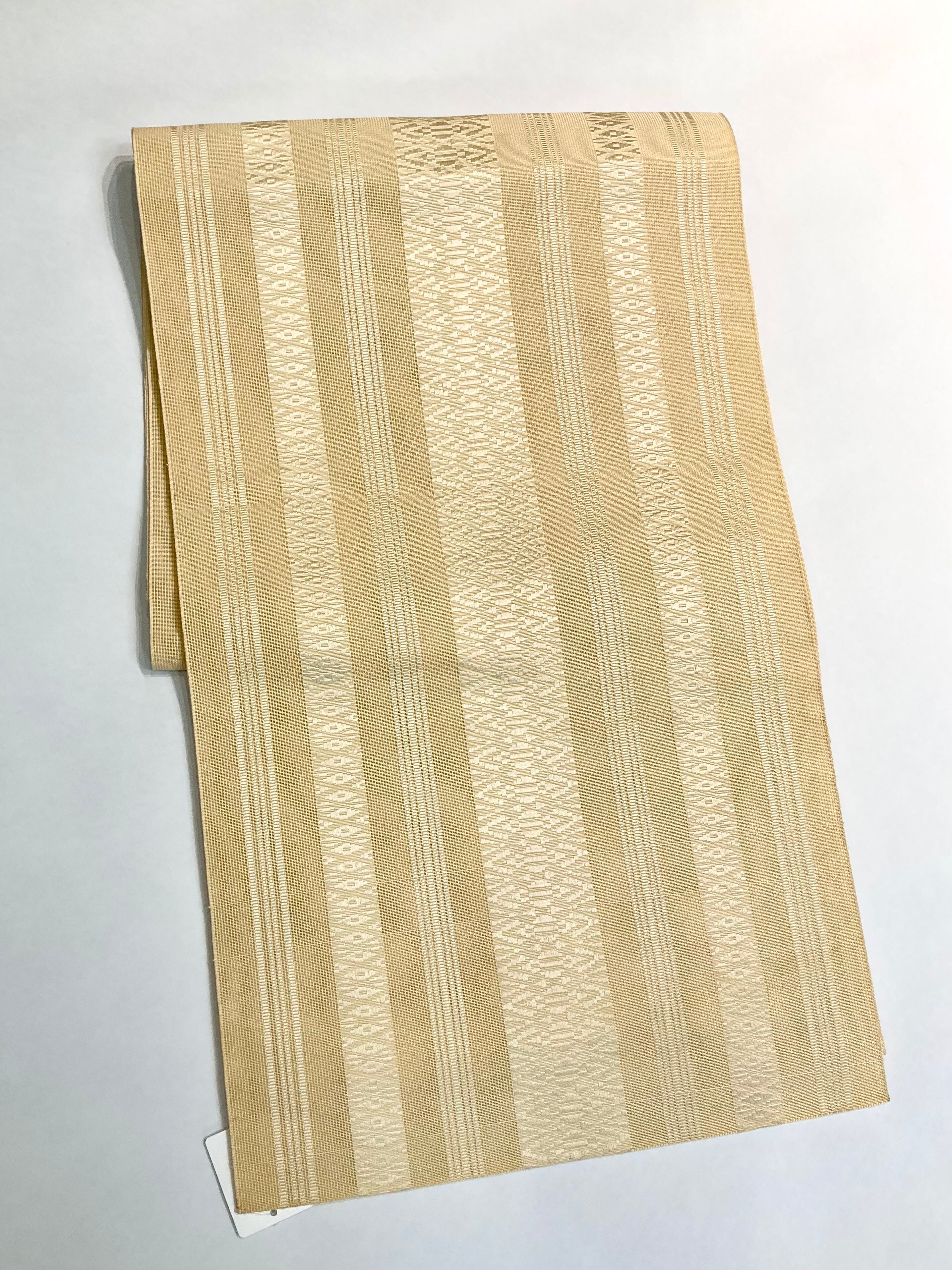 夏帯*Creamy custard*博多織 紗献上 リサイクル名古屋帯 A332