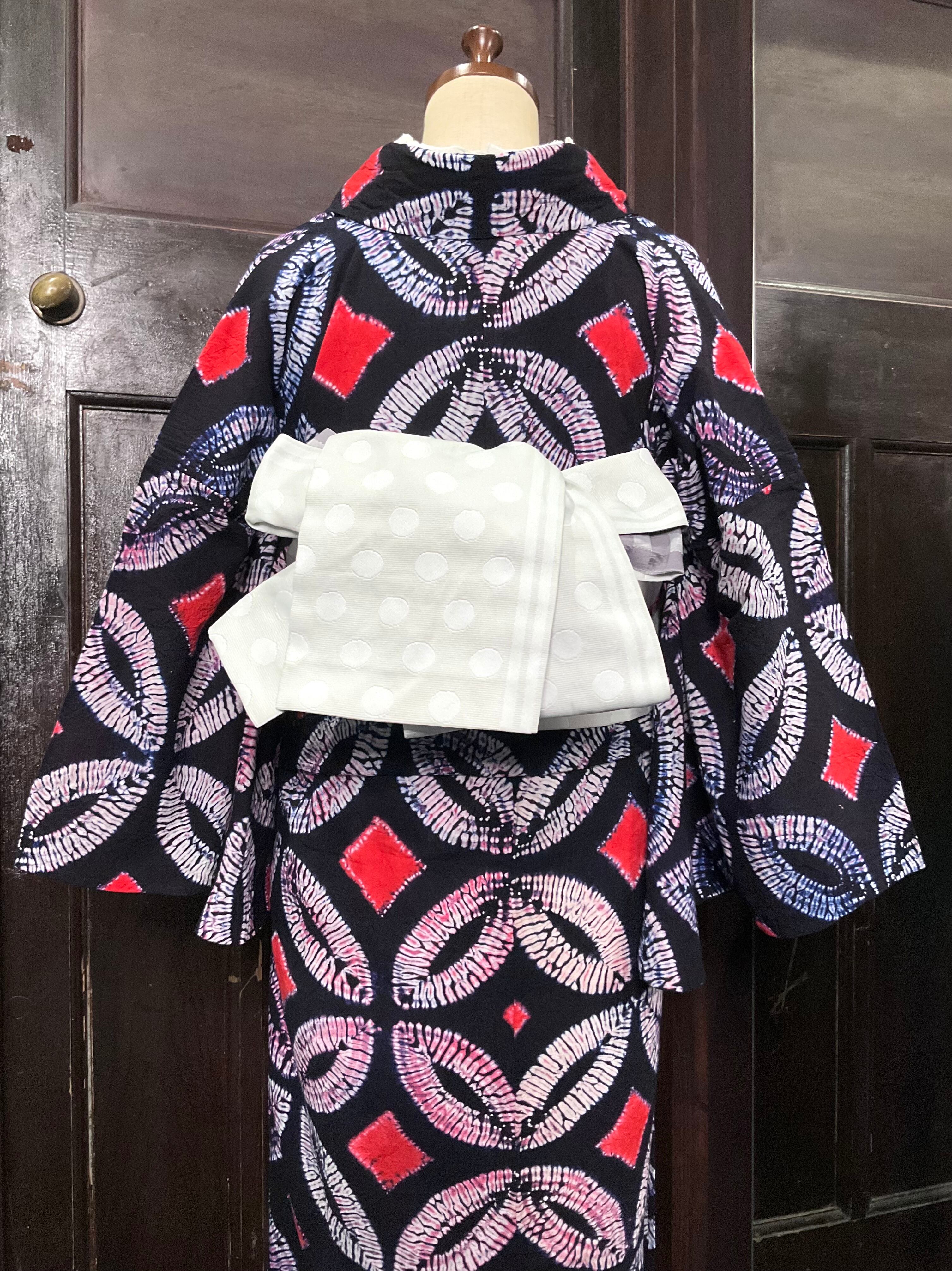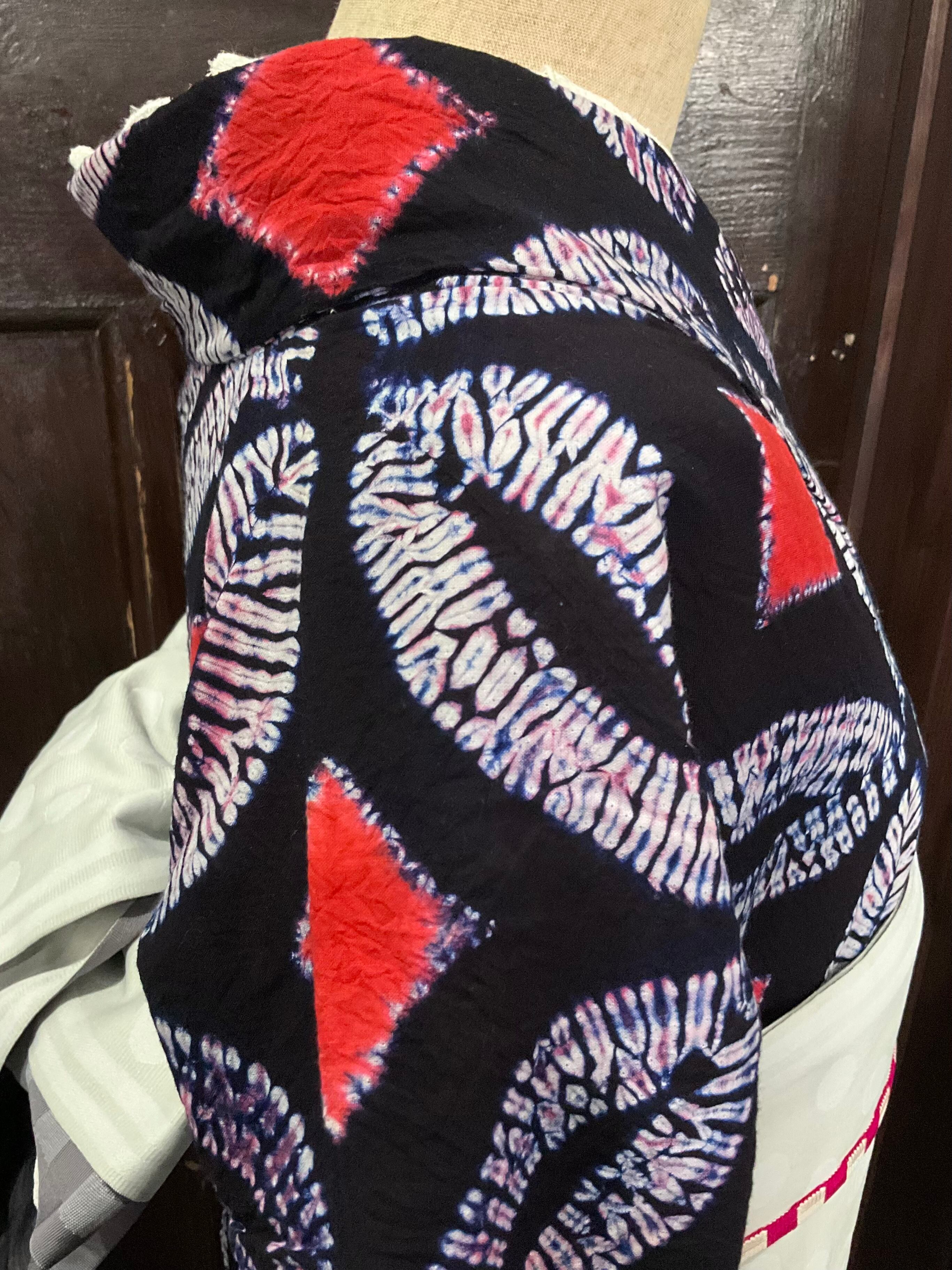 白い部分は伝統的な杢目絞りで、細かな杢目模様がオシャレですね!キリッとかっこよく着こなせそう✨