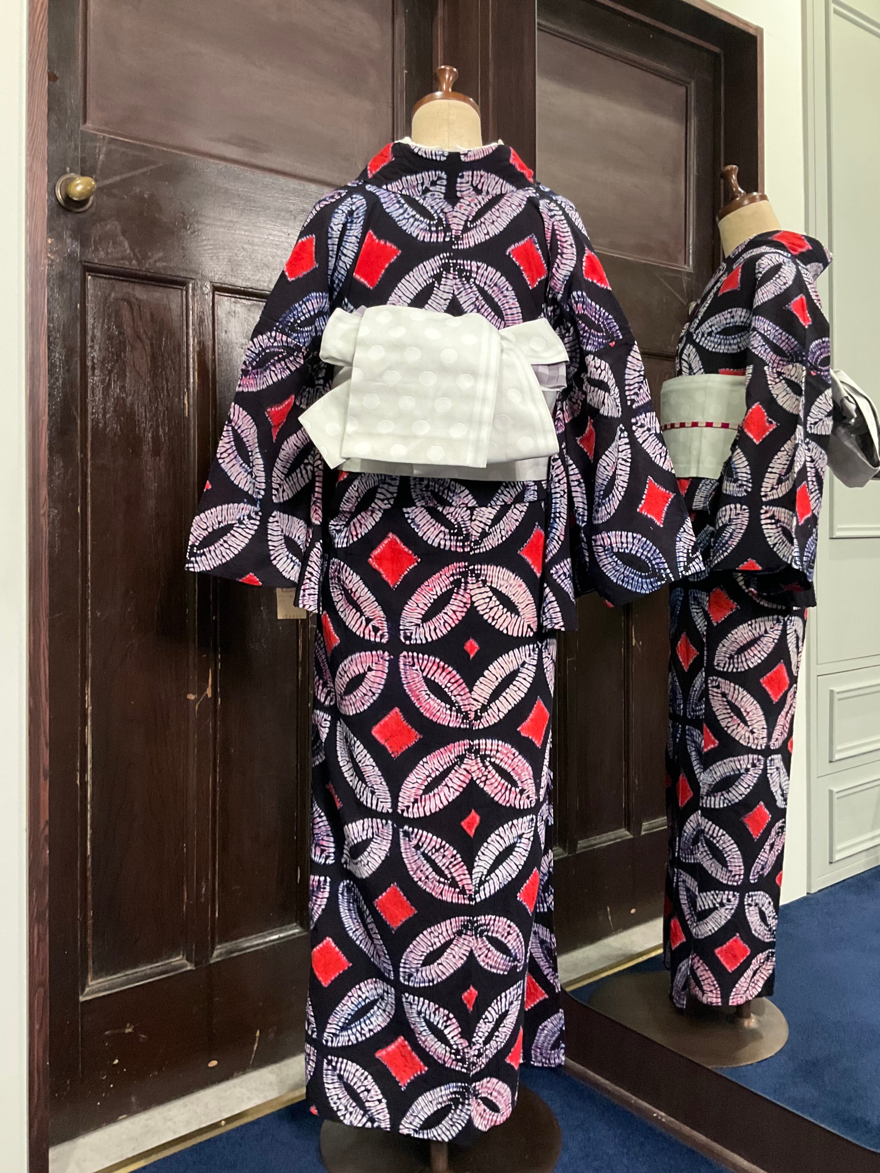 こちらの浴衣はデザイン上、絞りの立体感は少なめですが、サラッと着心地も良さそうです。