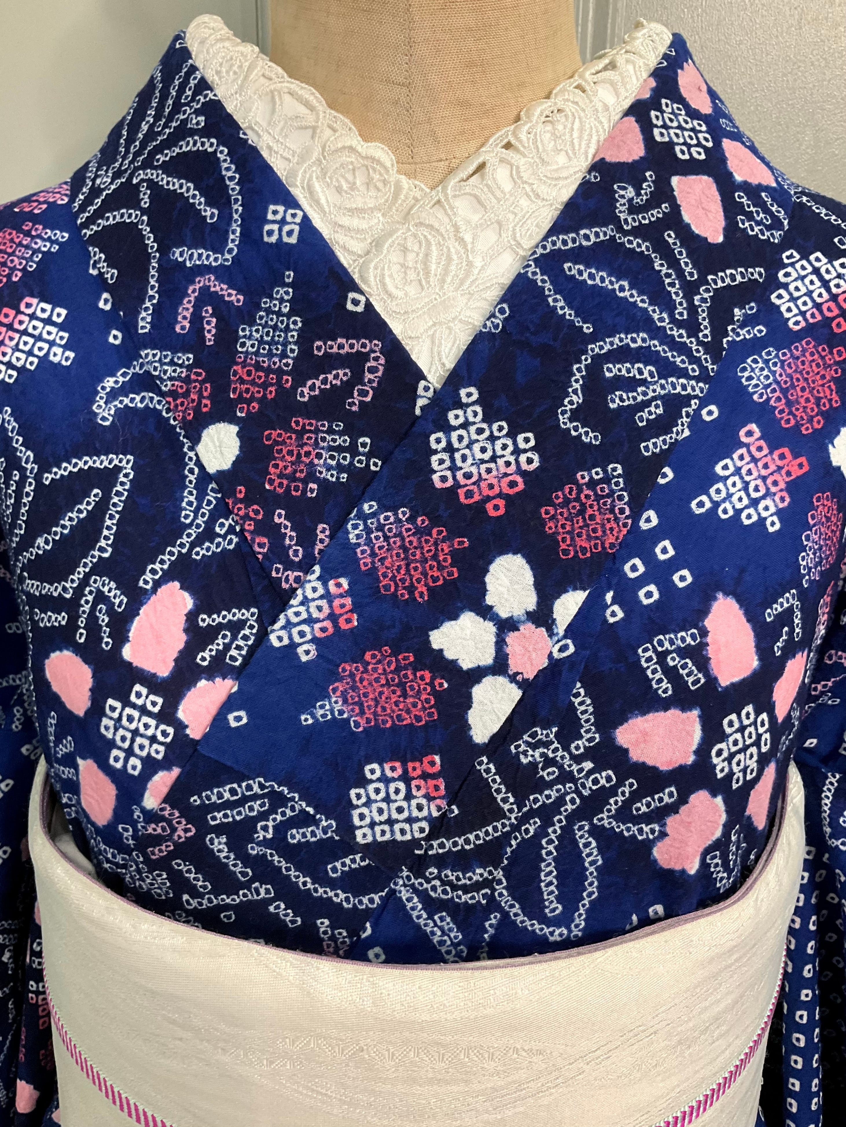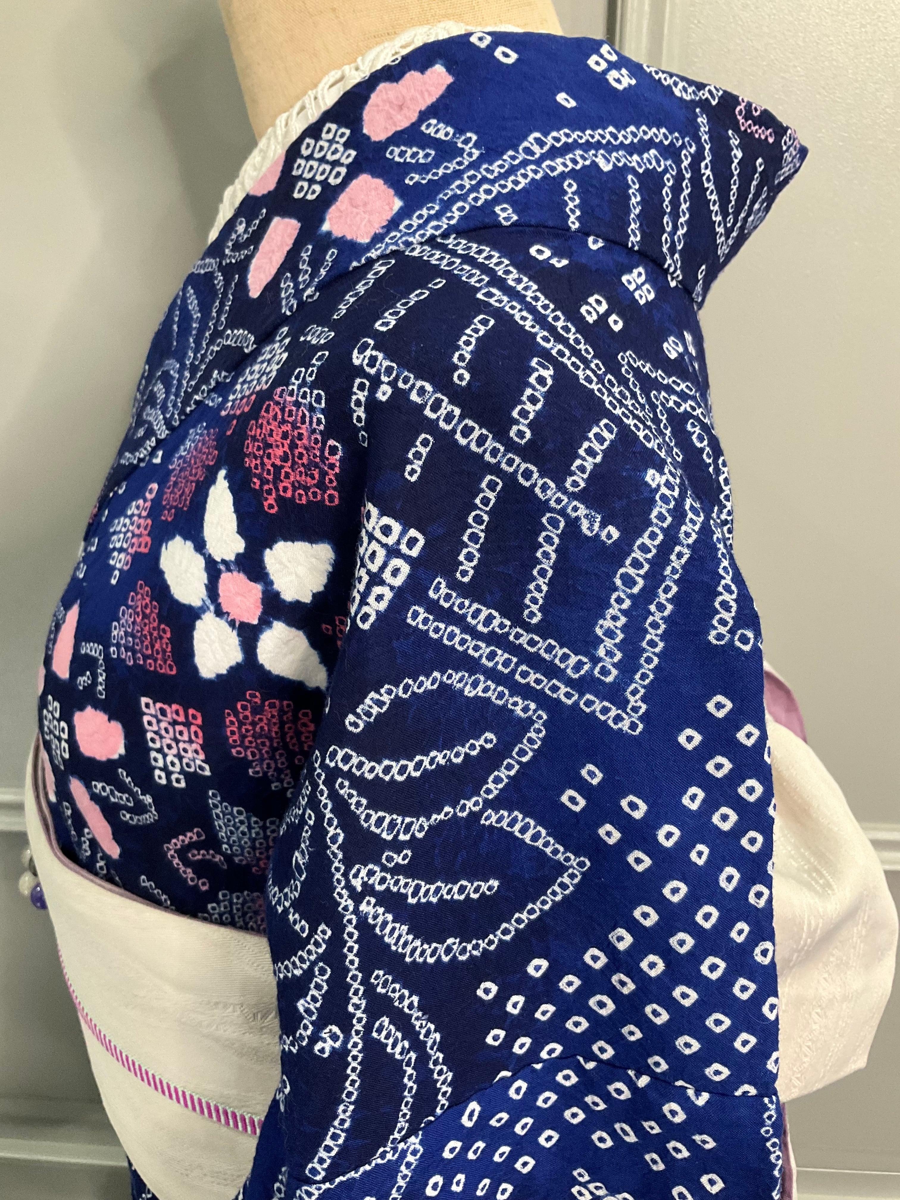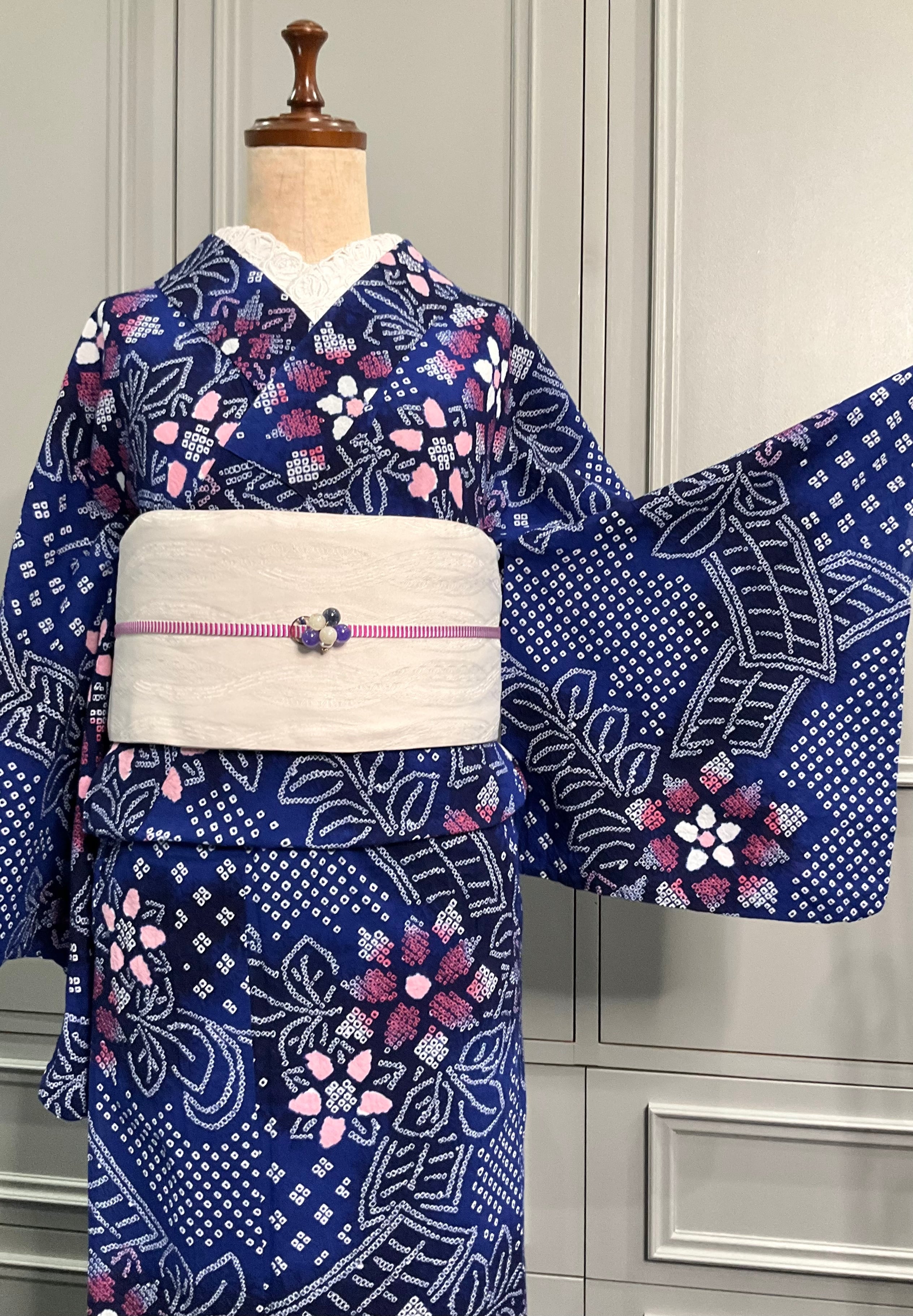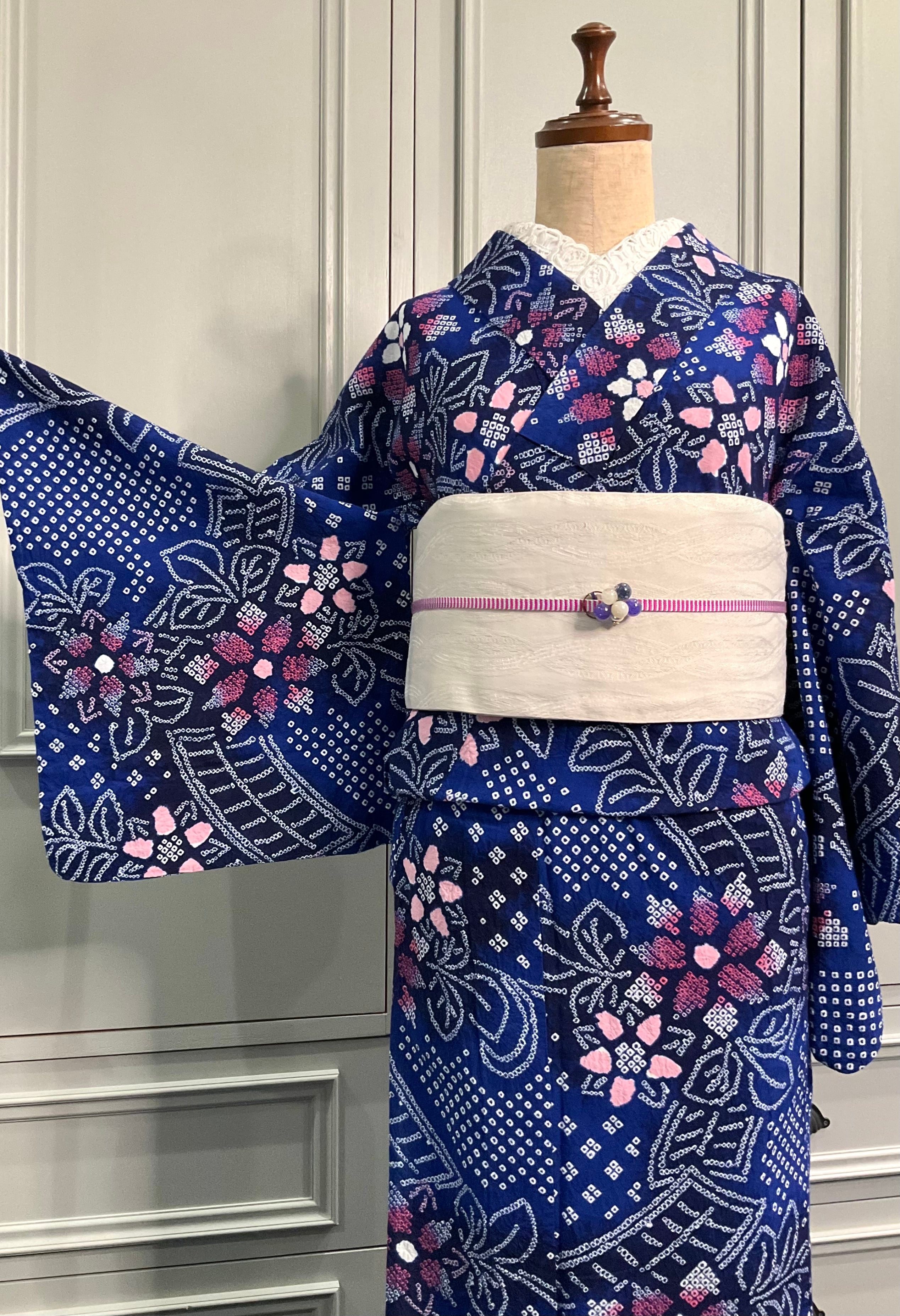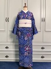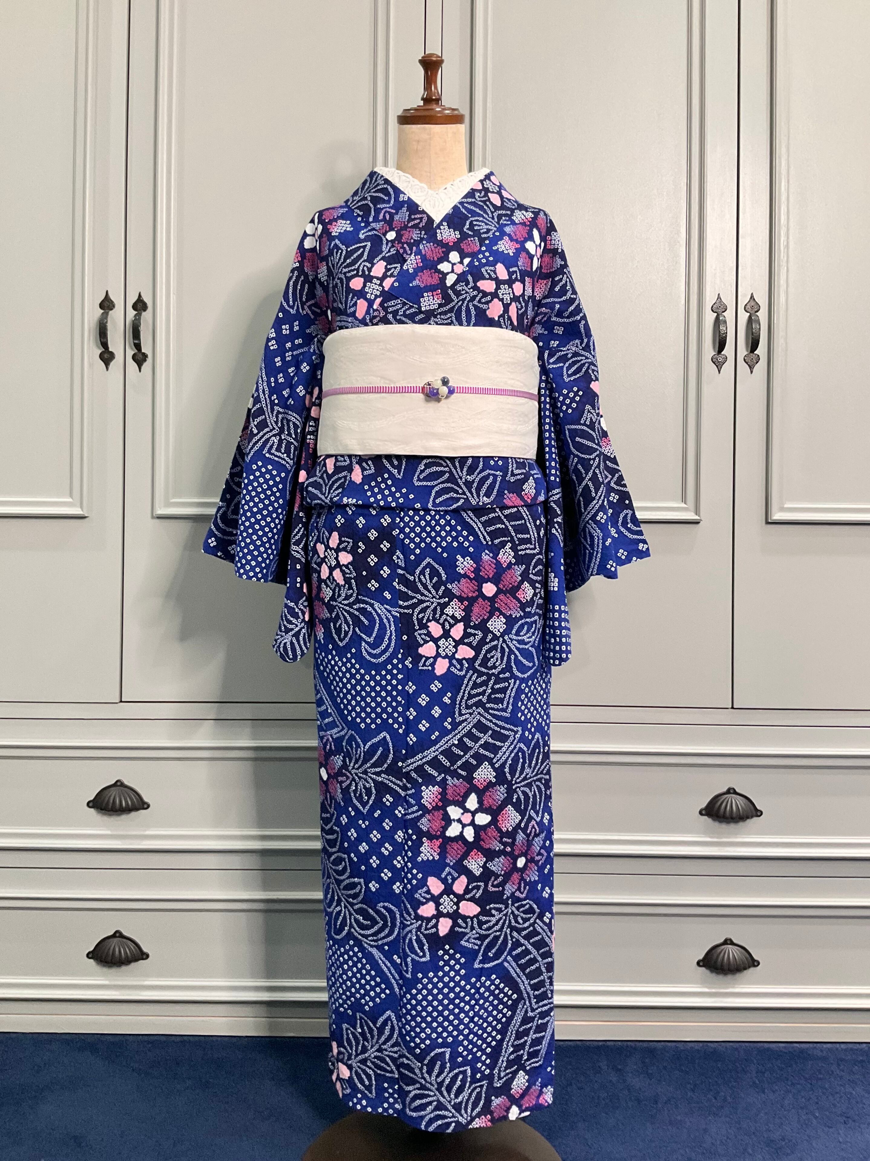 Blue:Rosy flowers*有松鳴海絞り浴衣 A347